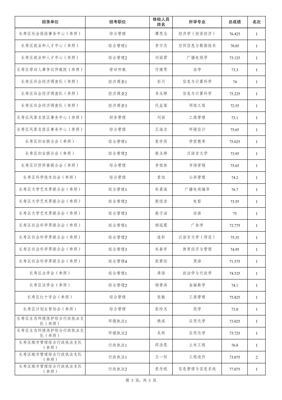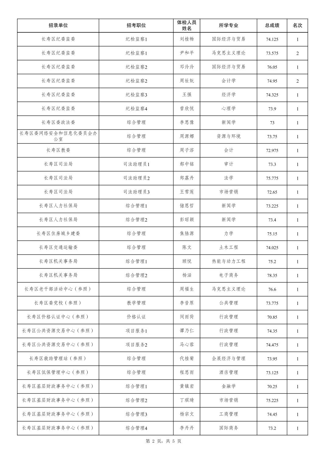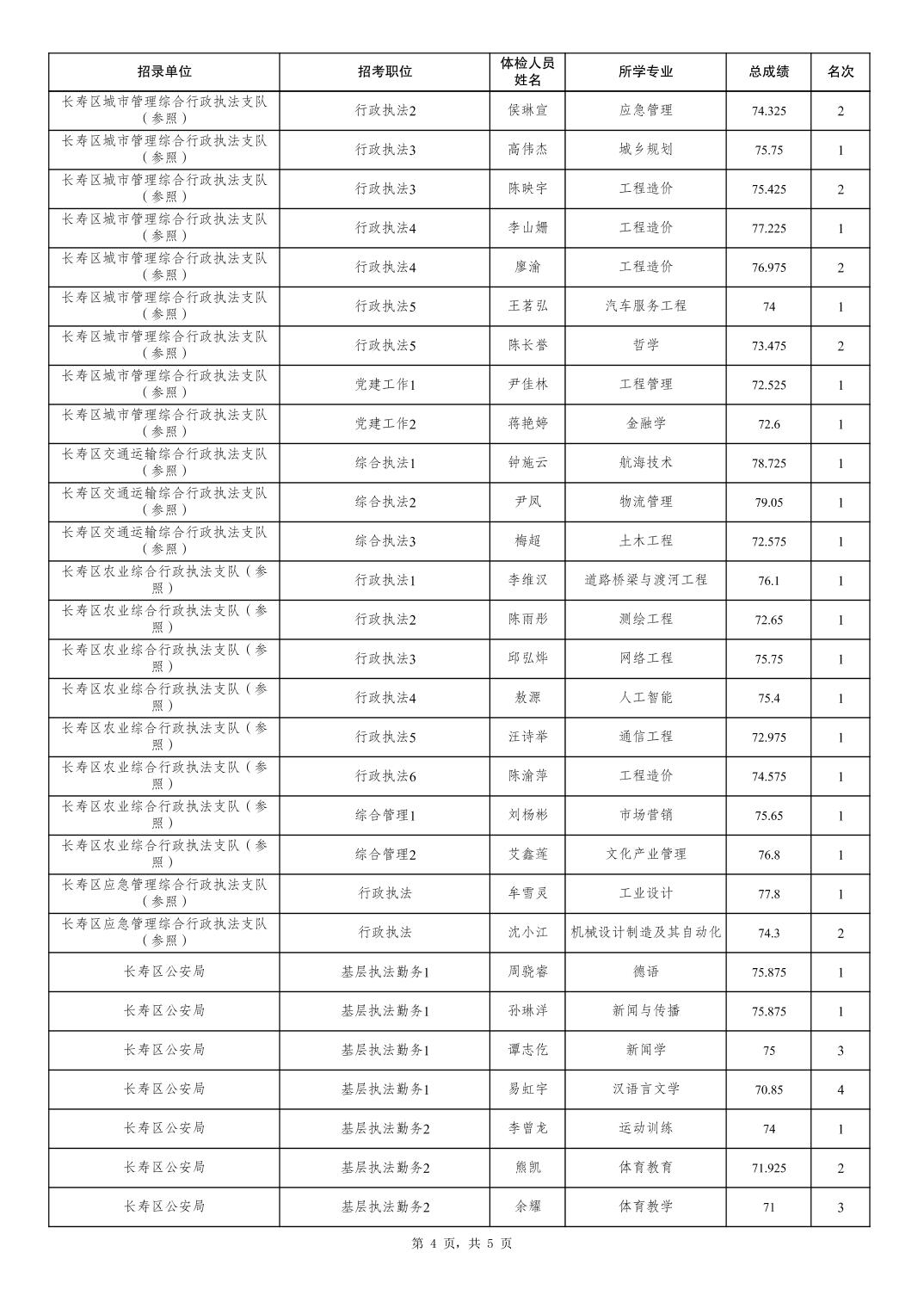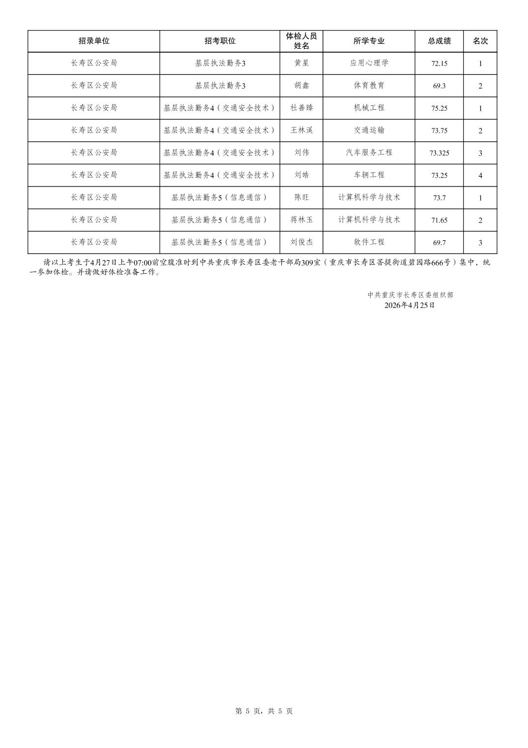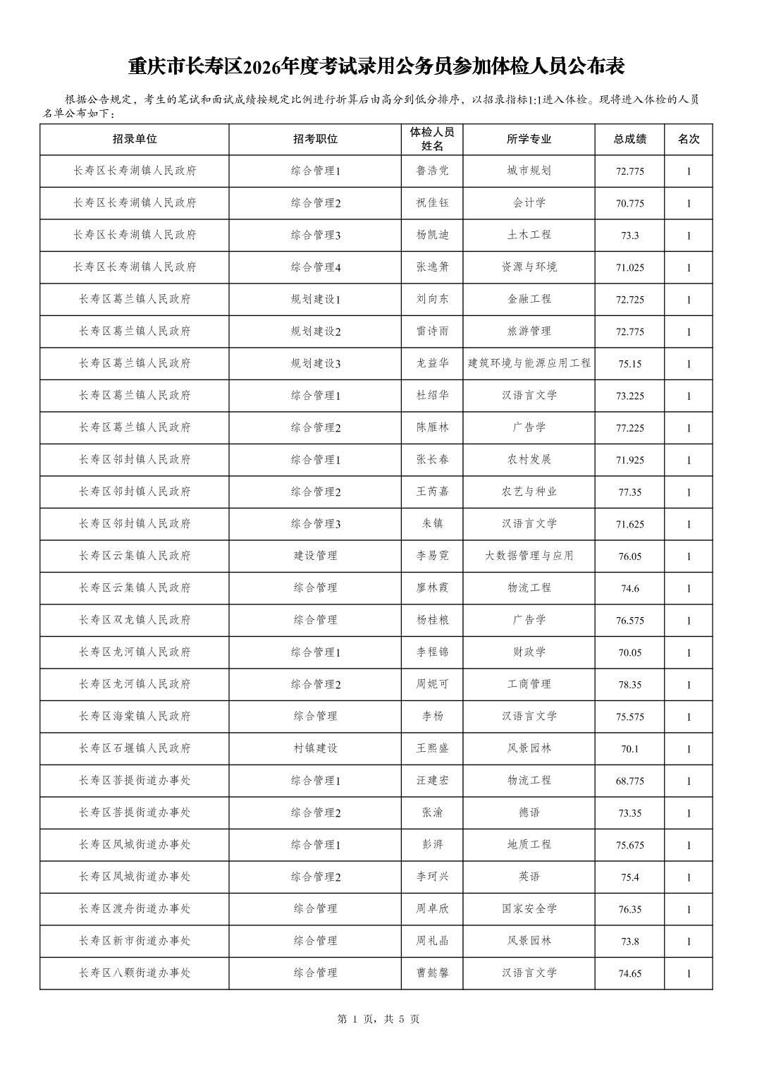 重庆市长寿区2026年度考试录用公务员参加体检人员公布表