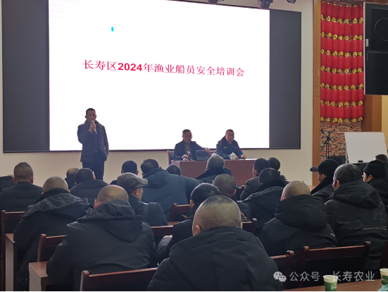 1月30日,长寿区2024年渔业船员安全培训会在长寿湖渔文化村召开。市农业综合行政执法总队副总队长魏耀东、区委农业农村工委委员、区农业综合行政执法支队支队长郑永红出席会议,区农业执法支队相关负责人,长寿湖浩湖渔业公司、必刚捕捞队、吴长生捕捞队全体船员及涉渔船片区负责人参会。