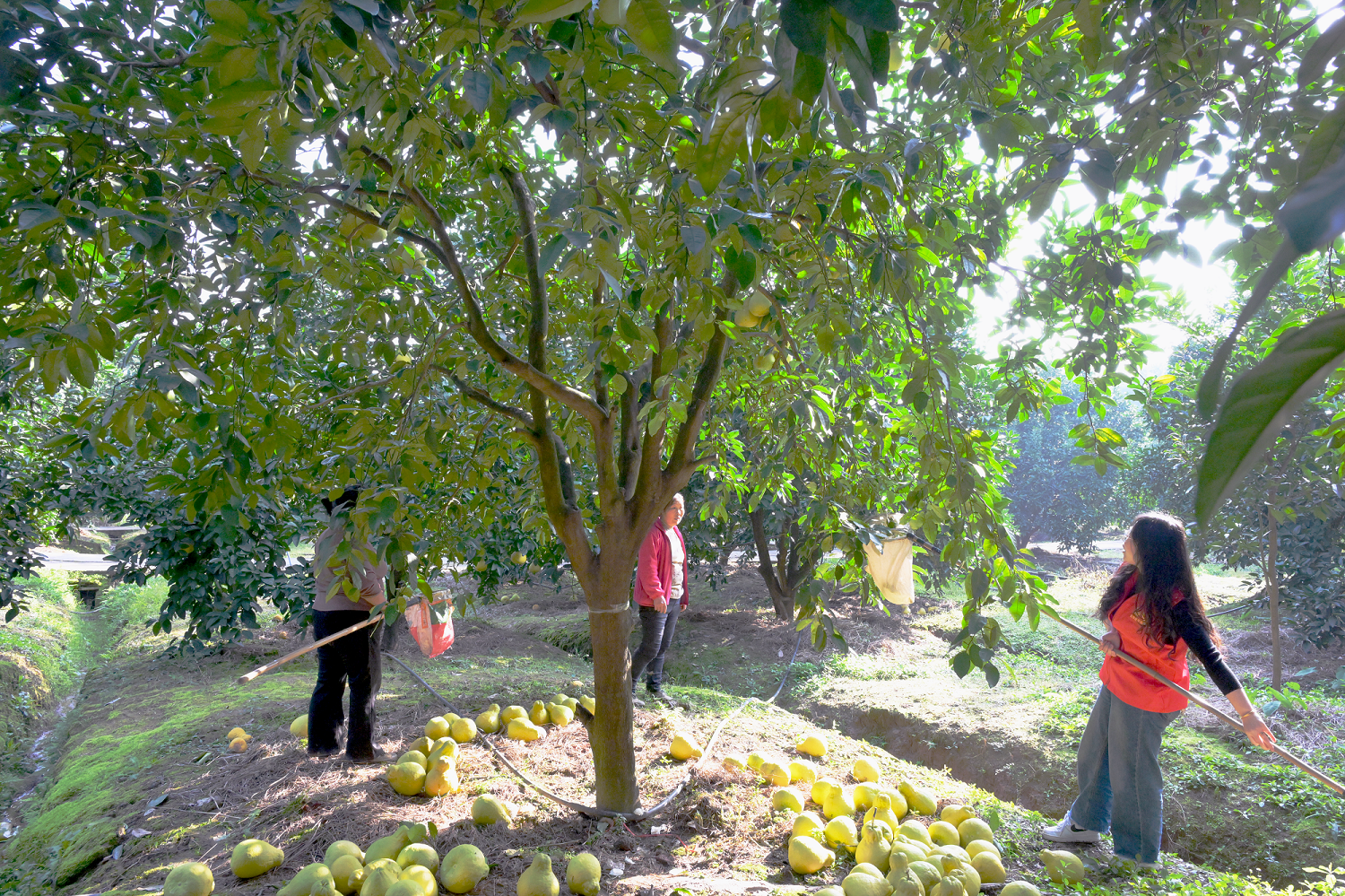 眼下正值重庆市长寿区长寿柚丰收采摘季,为缓解采收压力,近期,长寿区邻封镇组织党员志愿者到田间地头开展长寿柚采摘、包装志愿服务活动。