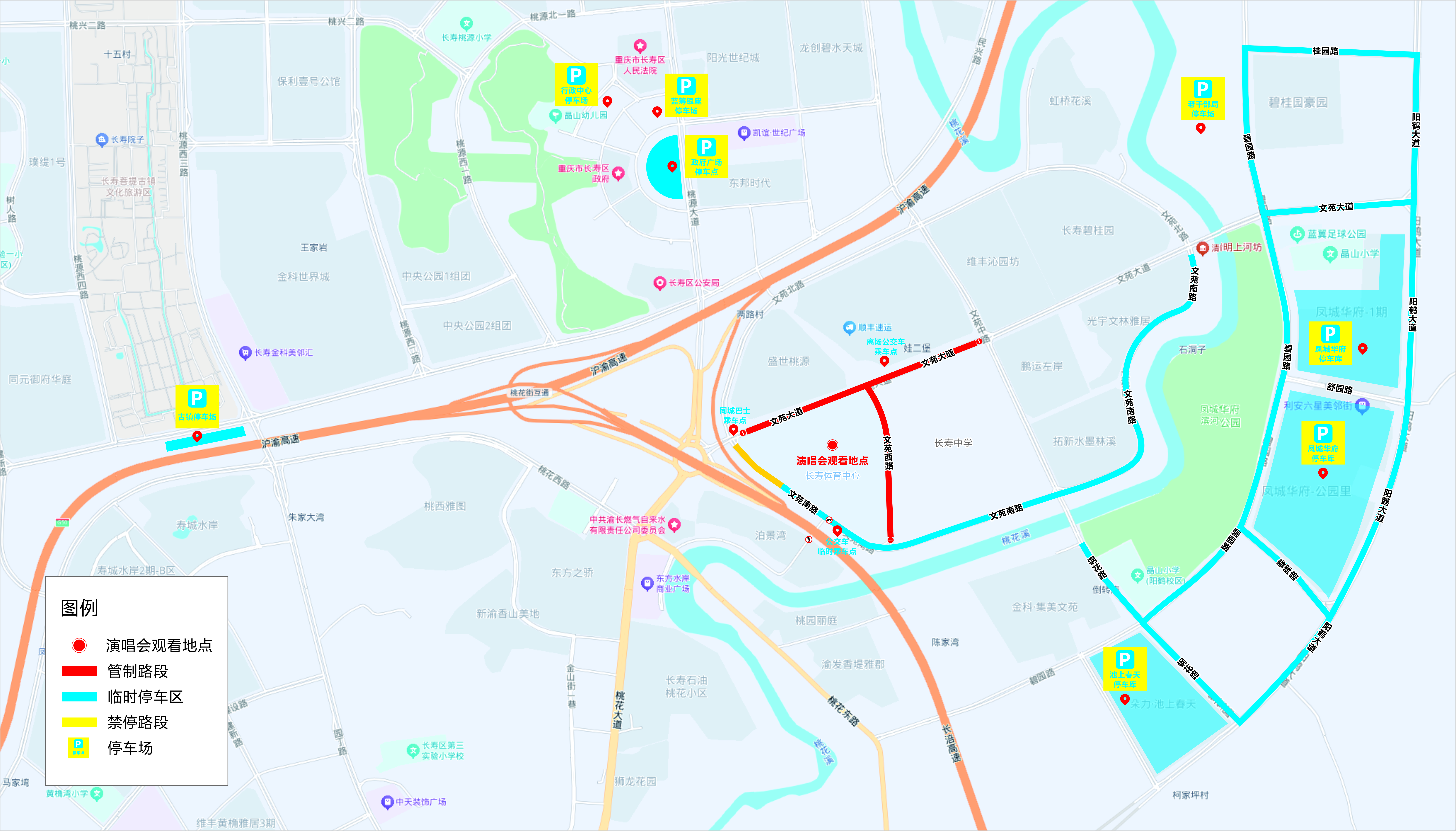 2026重庆市长寿区“常来长寿•长寿常来”超时空演唱会(长寿站)将于2026年3月21日在长寿体育中心举行,根据《中华人民共和国道路交通安全法》第三十九条规定,决定对体育中心周边部分道路实施交通管制,具体内容如下: