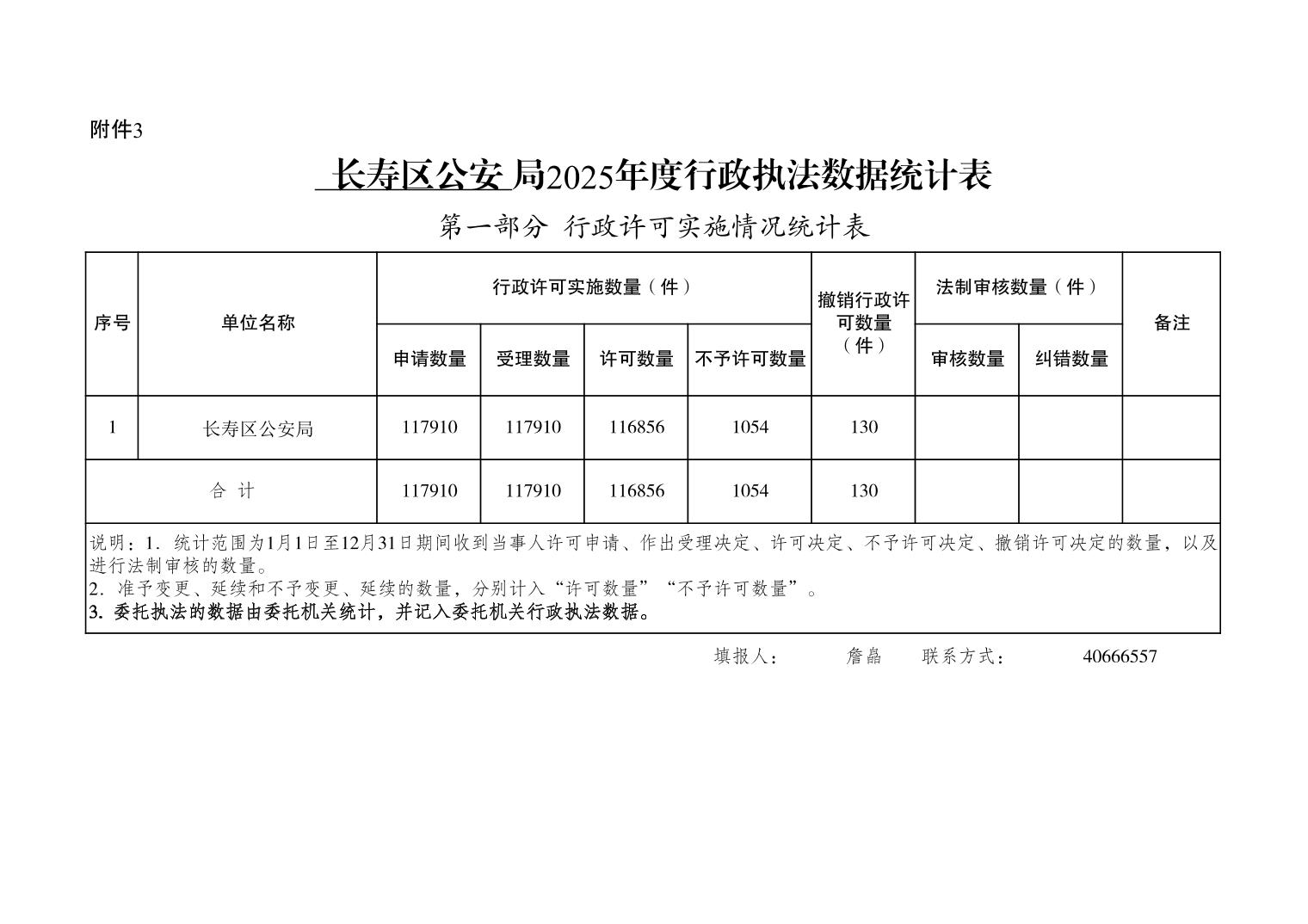 长寿区公安局 2025年行政执法数据统计公示