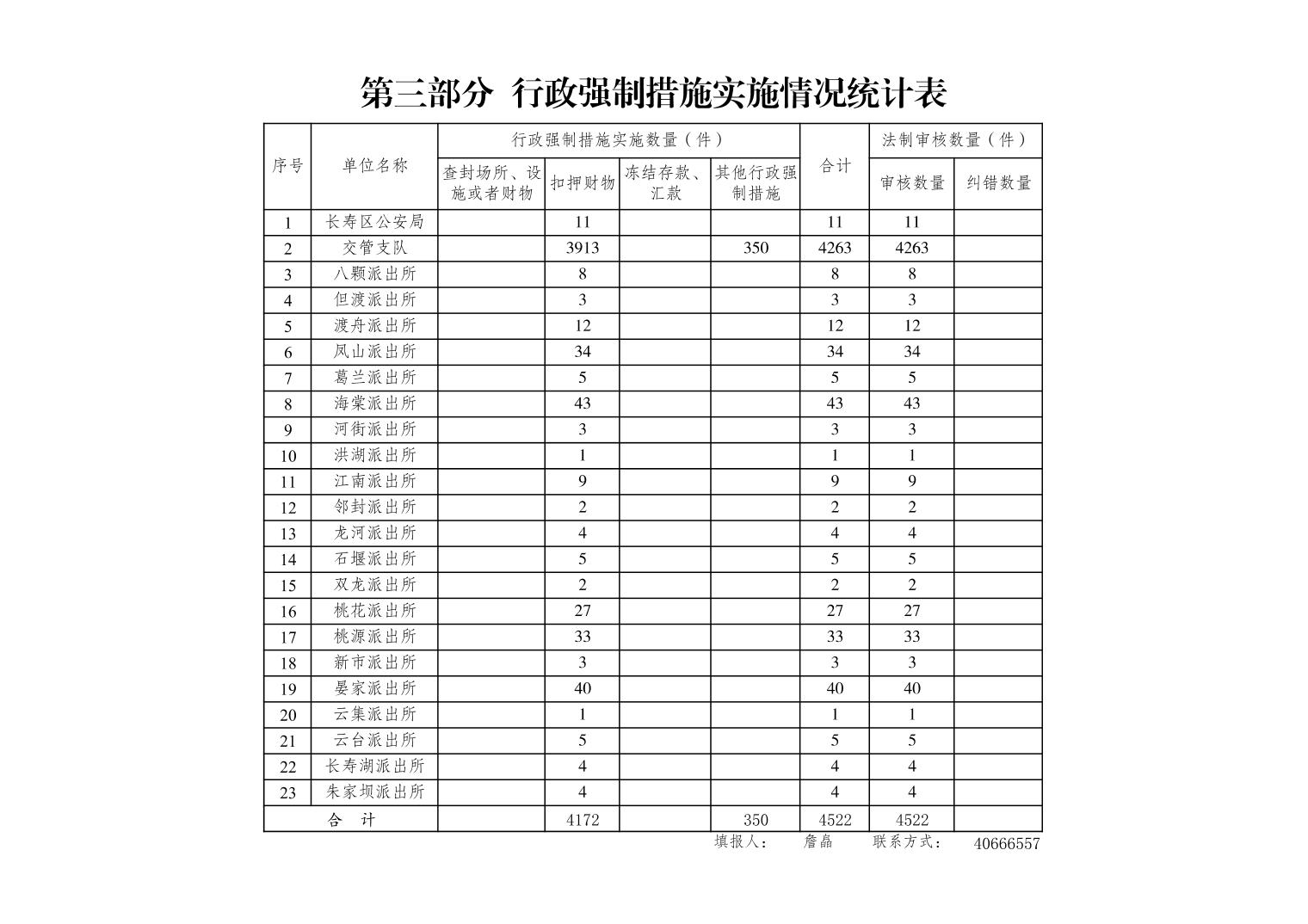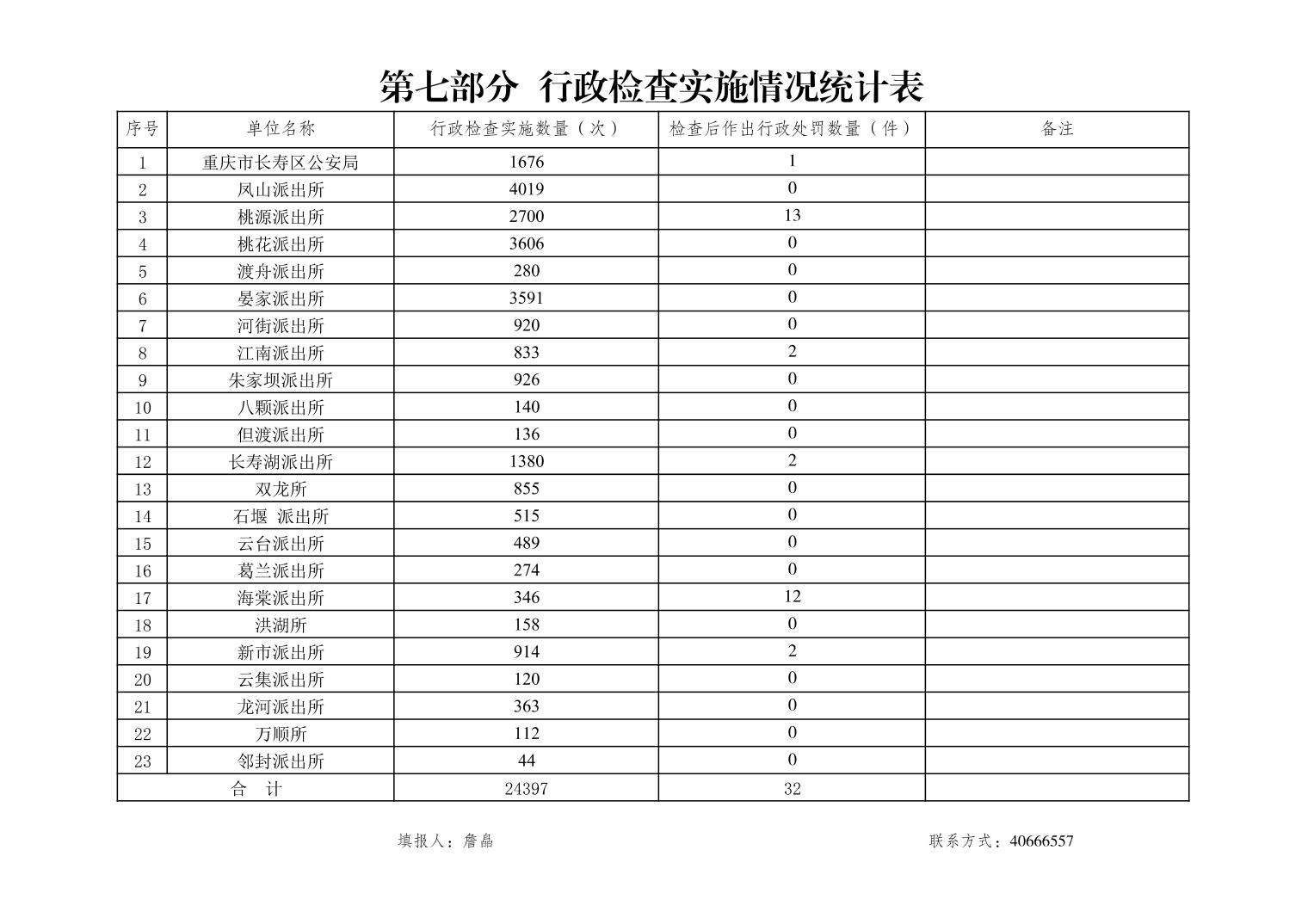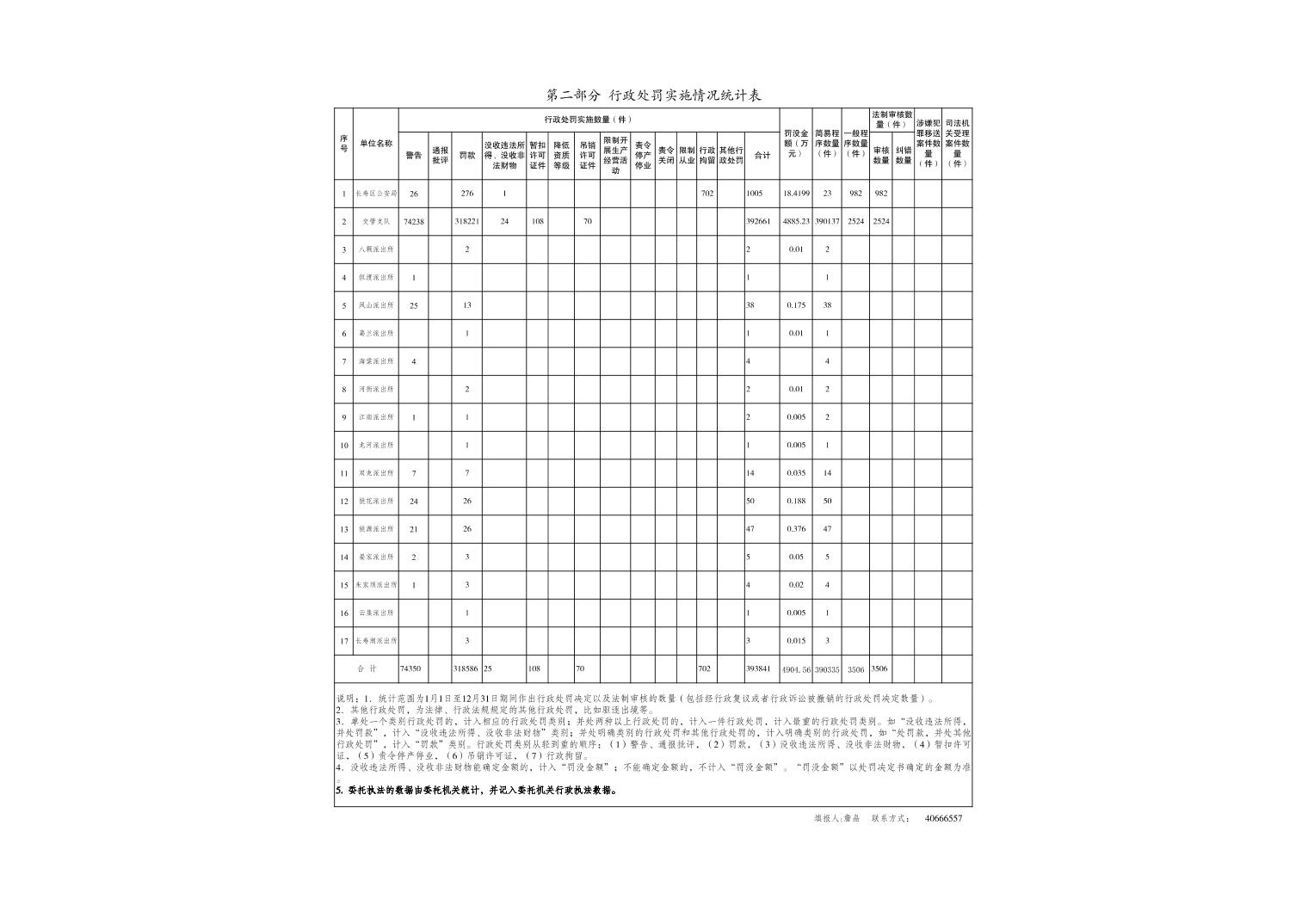 为贯彻落实《国务院办公厅关于全面推行行政执法公示制度执法全过程记录制度重大执法决定法制审核制度的指导意见》(国办发〔2018〕118号)、《重庆市人民政府办公厅关于印发重庆市全面推行行政执法公示制度执法全过程记录制度重大执法决定法制审核制度实施方案的通知》(渝府办发〔2019〕90号)和《重庆市长寿区人民政府办公室关于印发重庆市长寿区全面推行行政执法公示制度执法全过程记录制度重大执法决定法制审核制度实施方案的通知》(长寿府办发〔2019〕99号)要求,加强行政执法监督,促进严格规范公正文明执法,现将本单位2025年行政执法统计数据公示如下: