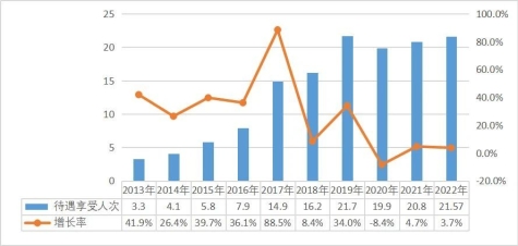 2013-2022年职工医保享受待遇人次