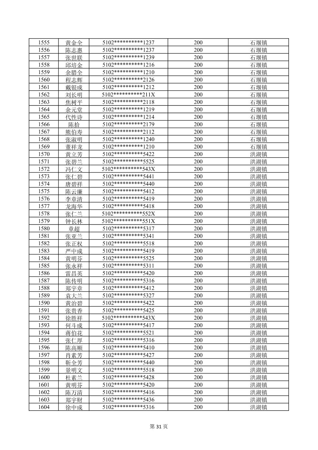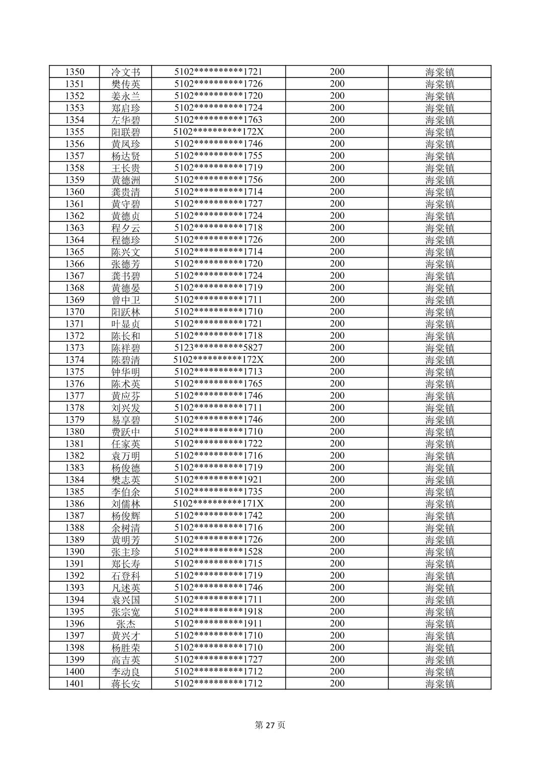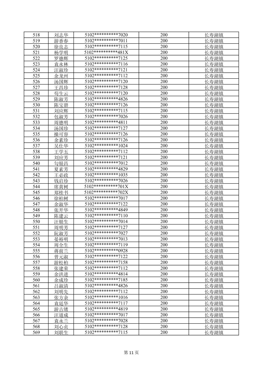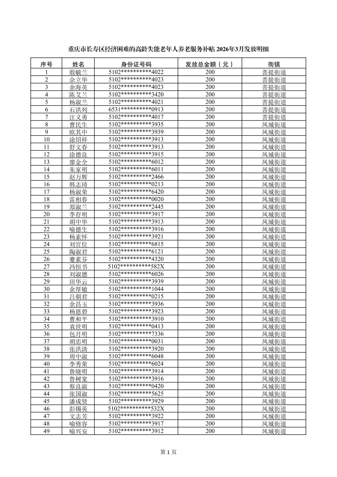 重庆市长寿区高龄津贴2026年3月发放明细