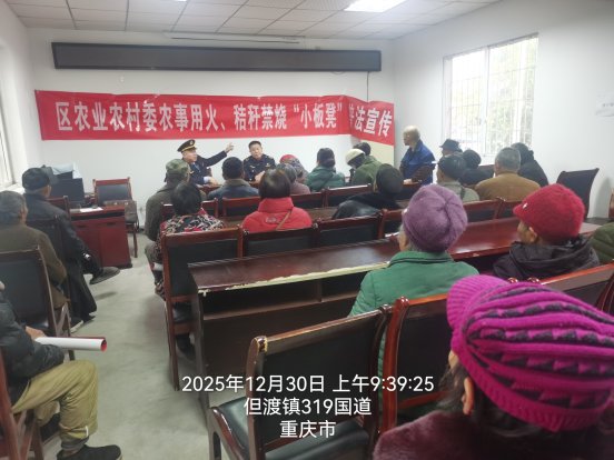 2025年12月30日上午,区农业农村委在但渡镇曾祠村召开村民大会,宣讲农事用火、露天秸秆禁烧相关规定,现场向村民发放宣传资料50余份。