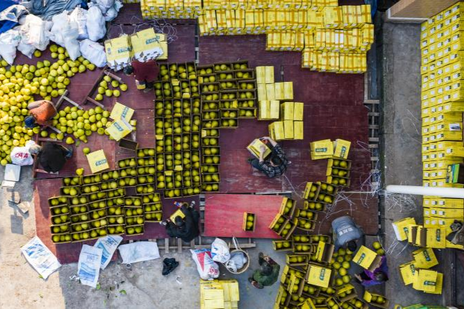 果农将采摘的柚子进行打包发货(长寿区委宣传部供图)