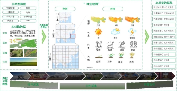 二是多模态时空数据融合引擎。突破传统图文采集范式,以农场为单元,融合图像、文本等多模态数据与结构化数据,以作物生长周期为时序轴,进行时空数据耦合与互补增强,实现多维度农业数据的融合与理解。