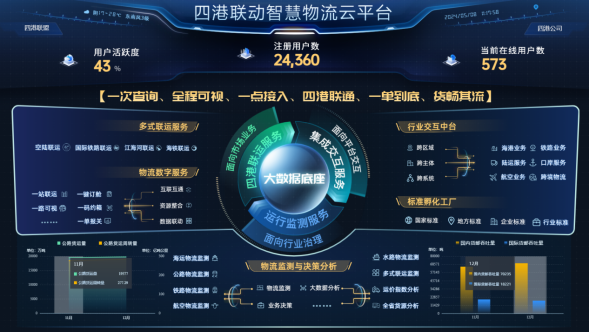 二是打造多样化数据产品服务。打造智慧物流云平台,通过集成货、箱、车、船、空、铁、驳、仓、关、港等10大数据域,重塑数据交互标准、重构系统操作流程、重造应用场景功能,打造跨运输方式、跨政企、跨省市县企的物流数据枢纽,实现多式联运物流全程跟踪、路径优选等功能,提供从订舱到港口出运“一站式”全流程数据服务,实现“海陆空”多种联运方式融合的数字化物流运输体系。