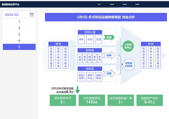 三是构建运输装备数据资产交易平台。基于重载铁路机车车辆、港口装卸装备、船舶装备等运输装备及其关键零部件等近600类高质量数据集,探索形成数据资产定价模型,以“(当日多式联运业务节约总成本*20%)/降本环节装备数据供给总条数”计算价格,进而自动派生数据资产交易(如图2所示)。当前已吸引275个运输装备制造企业开展数据资产交易,有效推进了近100家运输装备产品设计和功能优化。