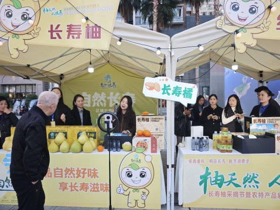 2025年11月21日,长寿柚采摘节暨农特产品展销会——“爱尚重庆·购在长寿2025 秋冬消费季在长寿时代广场正式开启,19个街镇携当地特色农特产品参展。