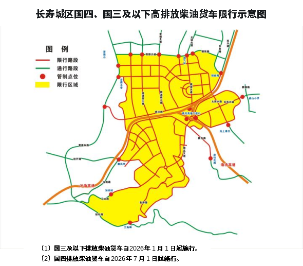 (1)国三及以下排放柴油货车自2026年1月1日起施行。