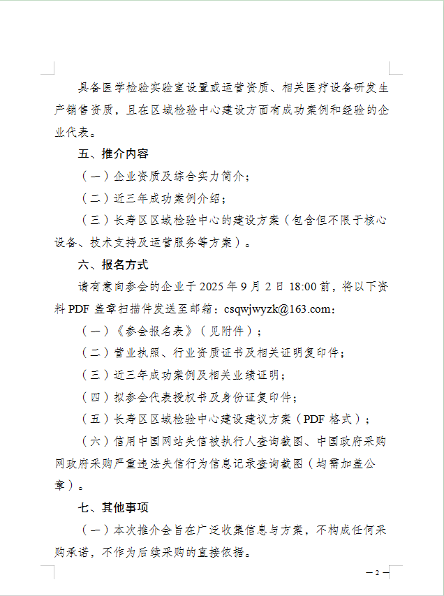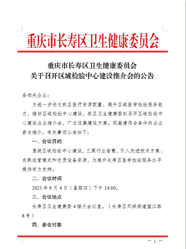 重庆市长寿区卫生健康委员会关于召开区域检验中心建设推介会的公告