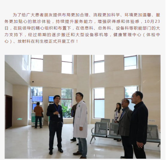 区中医院健康管理中心(体检中心)、放射科10月23日正式在利生楼开展工作,望周知!