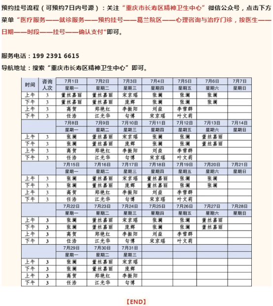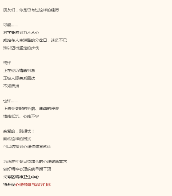 全区首个!长寿区精神卫生中心心理咨询与治疗门诊开诊!(附7月排班)