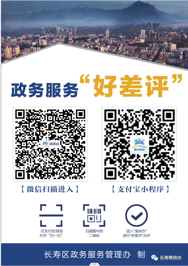 4.电话评价。可通过“12345” 热线进入“好差评”语音提示和短信评价提示功能。长寿区政务服务管理办始终坚持“把好评作为亮点、把差评化为动力”的原则,紧紧抓牢“服务好不好,群众来评判”的标准,不断将“好差评”工作走深走实,用心用情用力提升政务服务质量。