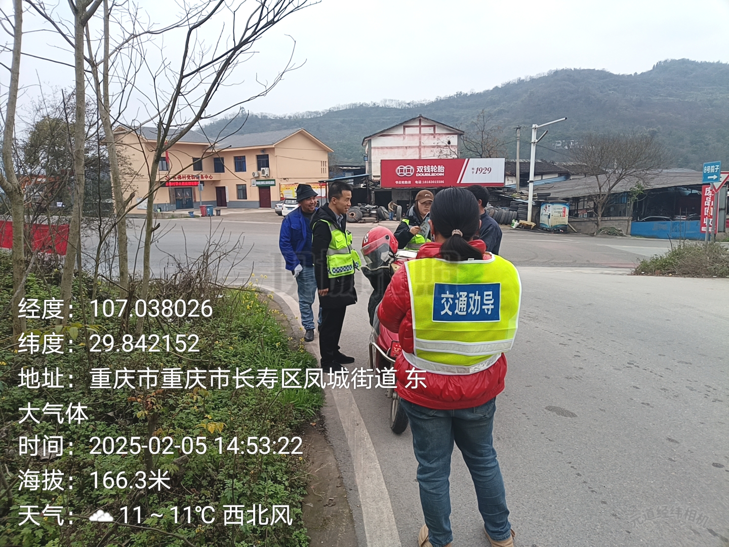 2025年2月5日,重庆市长寿区凤城街道办事处消防应急安全岗在辖区农村道路开展交安行动及劝导站履职尽责上岗巡查。