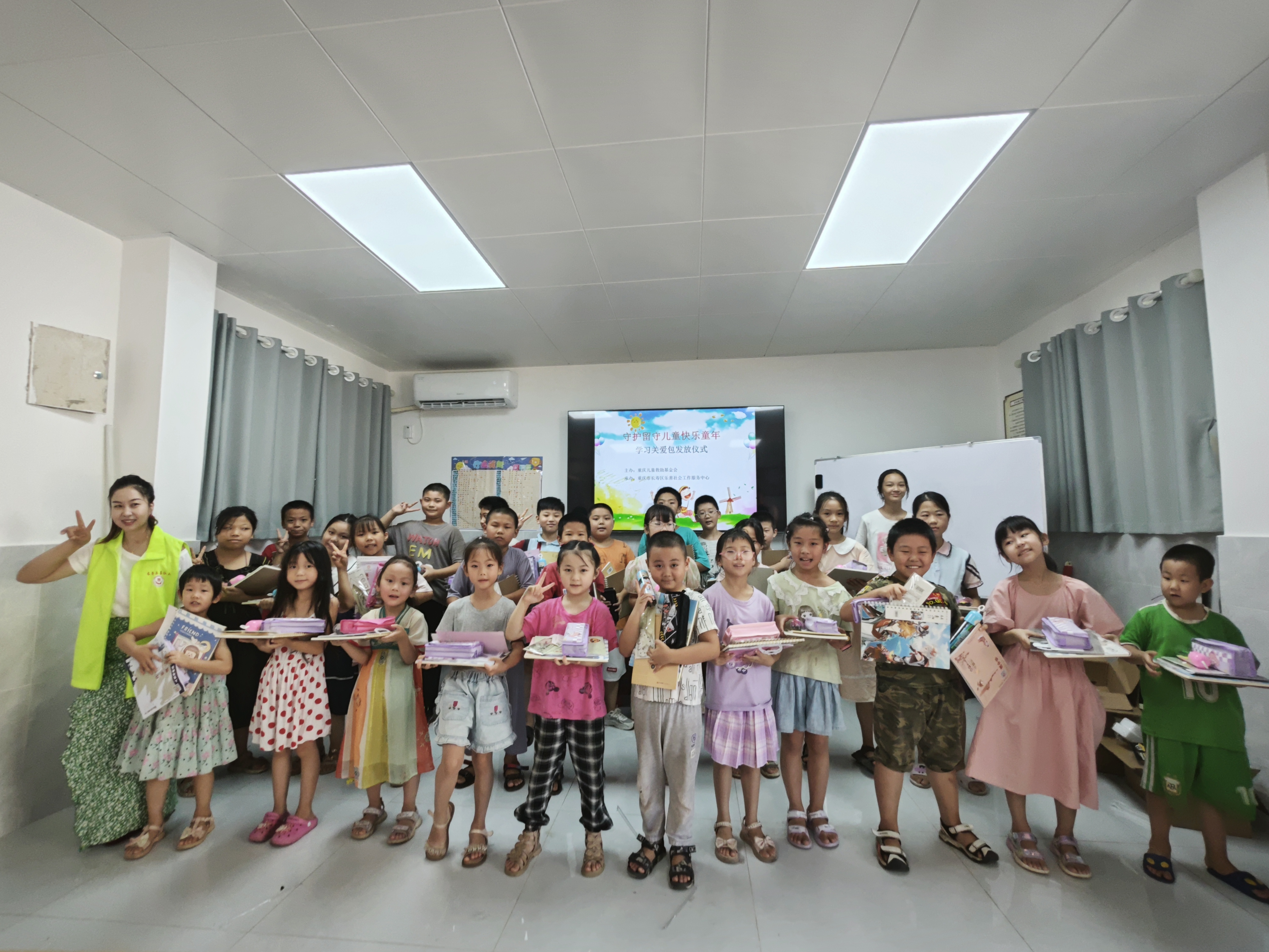 9月4日,石堰镇“小石头”课堂热闹非凡,重庆儿童救助基金会和长寿乐善社会工作服务中心为该镇29名留守儿童发放铅笔、彩笔、文具袋、练字贴等爱心“大礼包”,让他们感到社会的关爱与温暖。