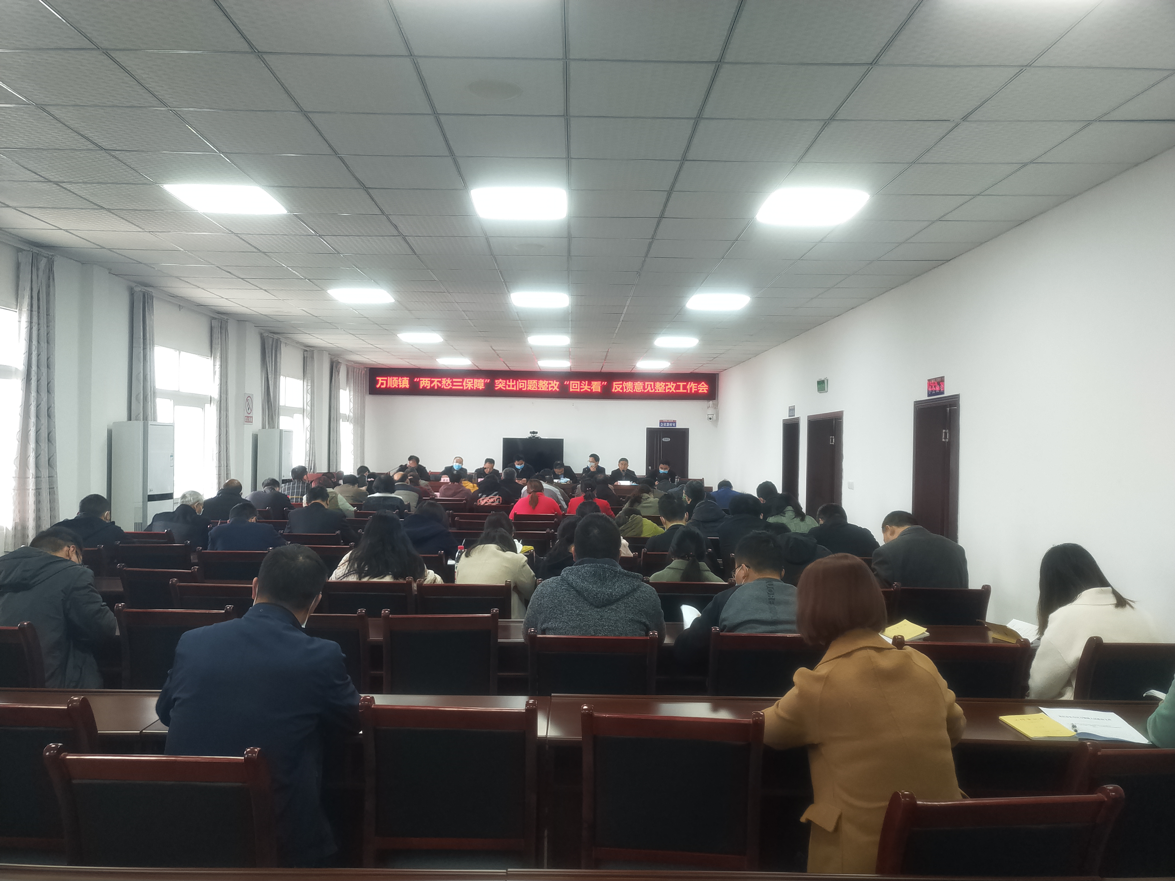 3月23日下午,万顺镇镇村干部在政府5楼会议室召开“两不愁三保障”突出问题整改“回头看”反馈意见整改工作会。会议由镇党委副书记、镇长苏勇主持。