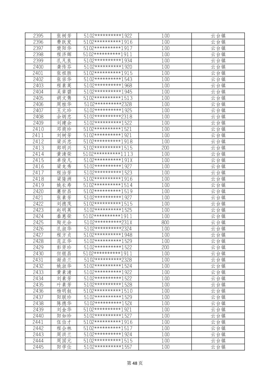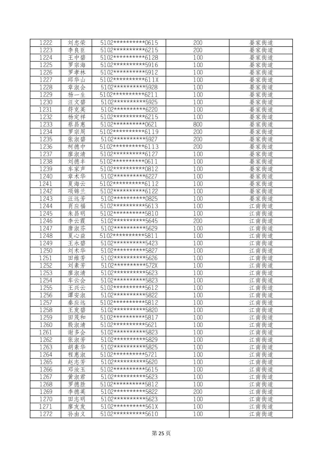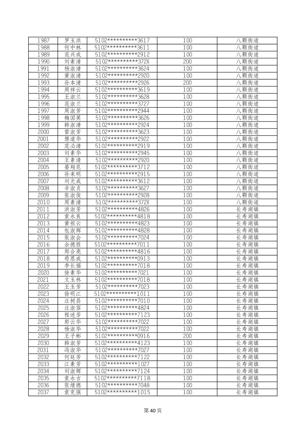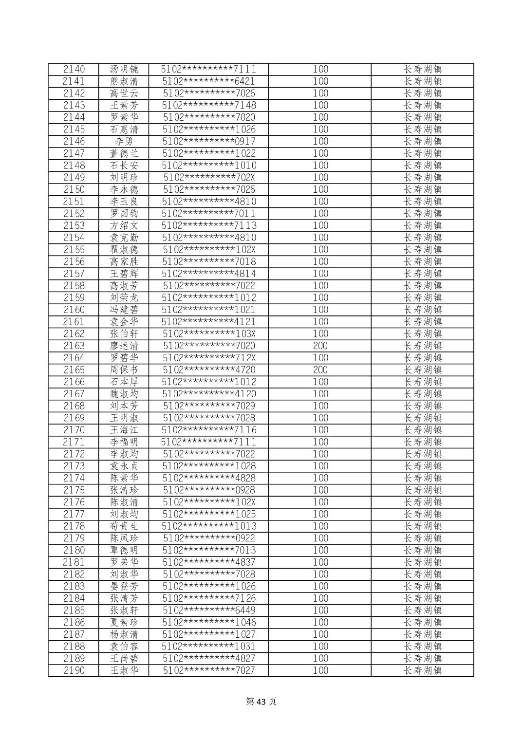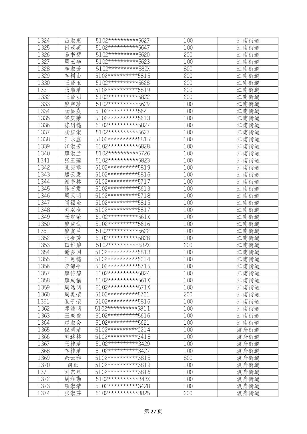 重庆市长寿区高龄老人营养补贴2024年6月发放明细