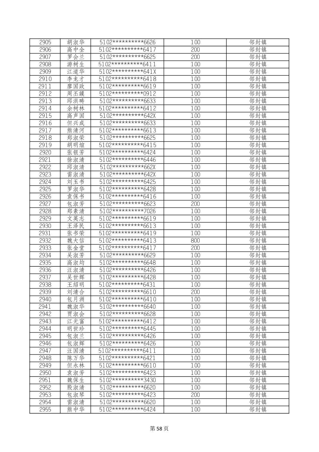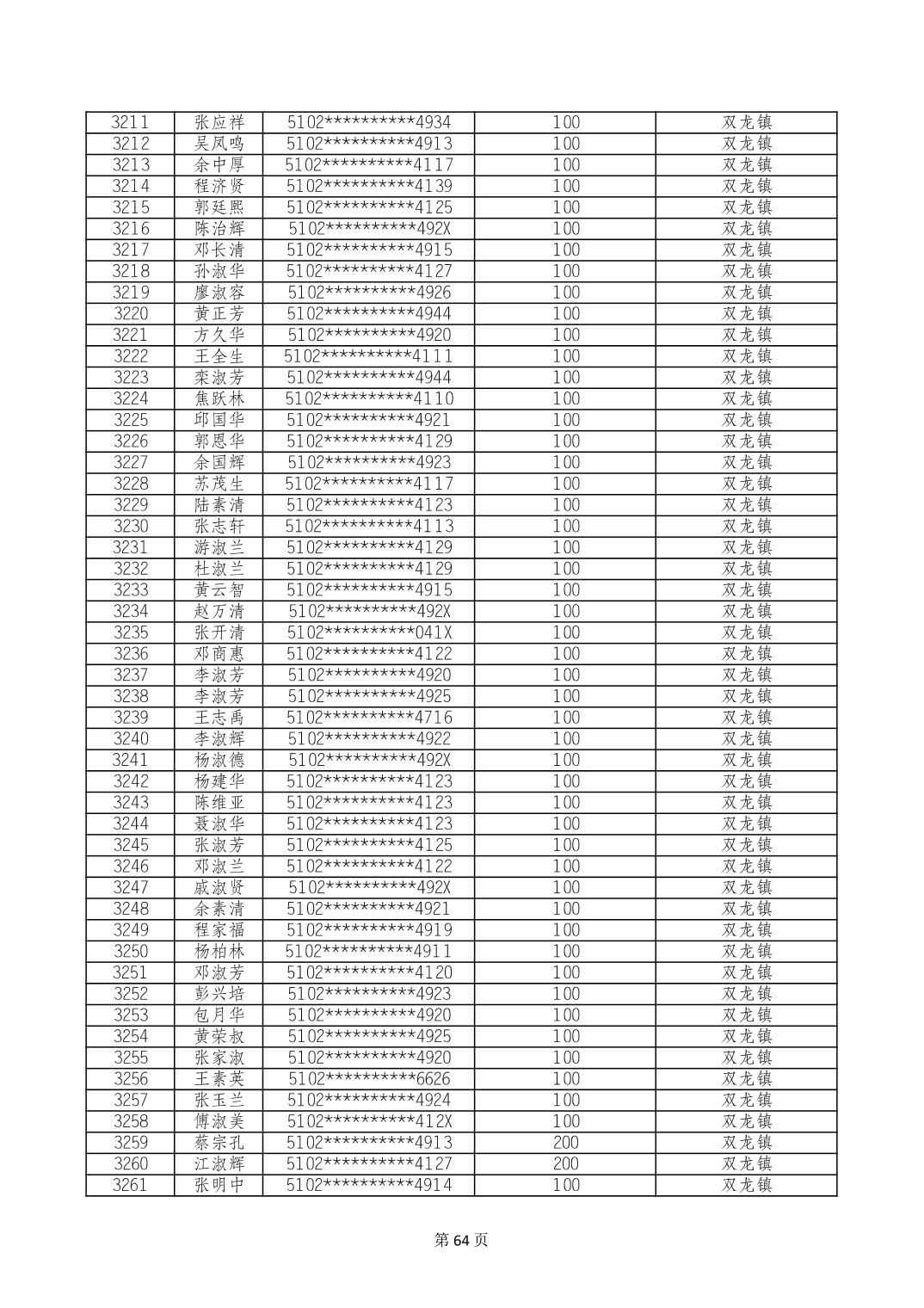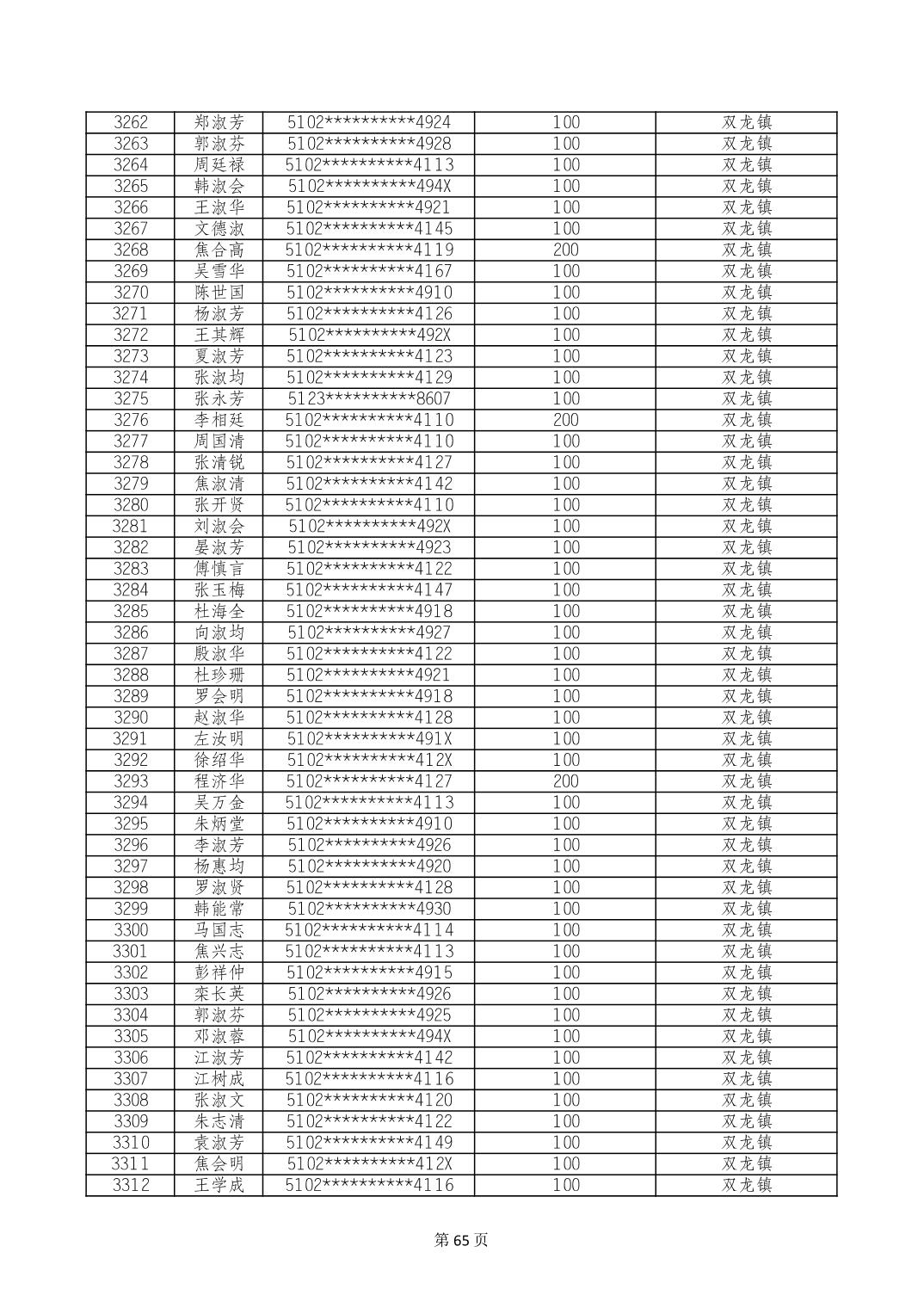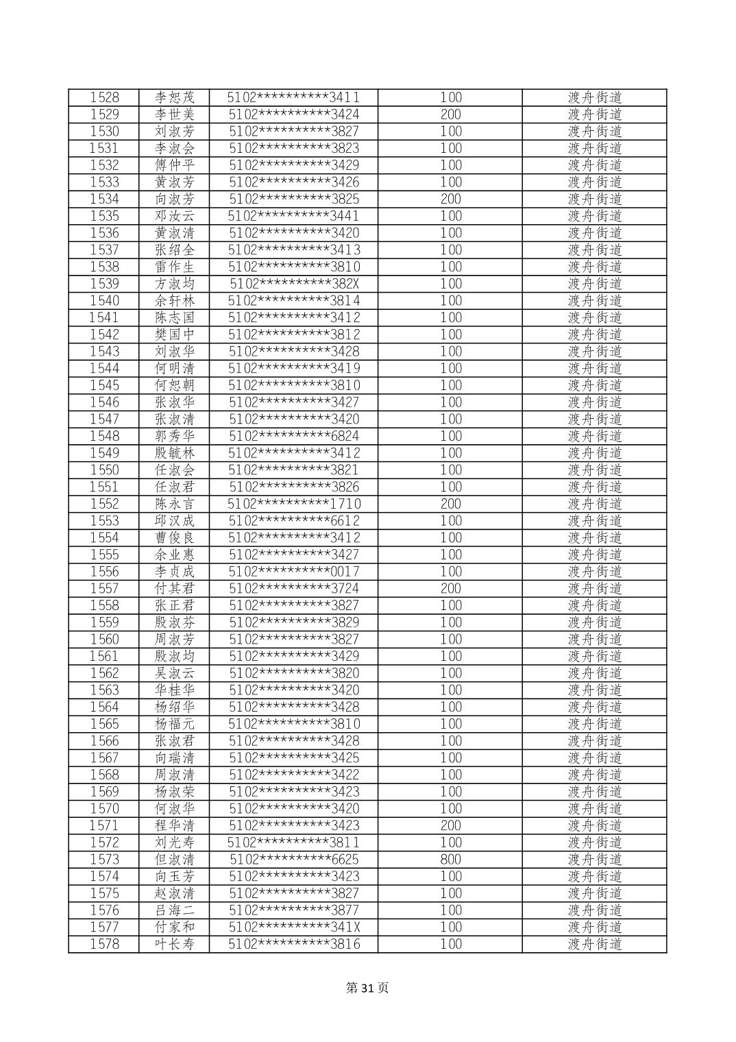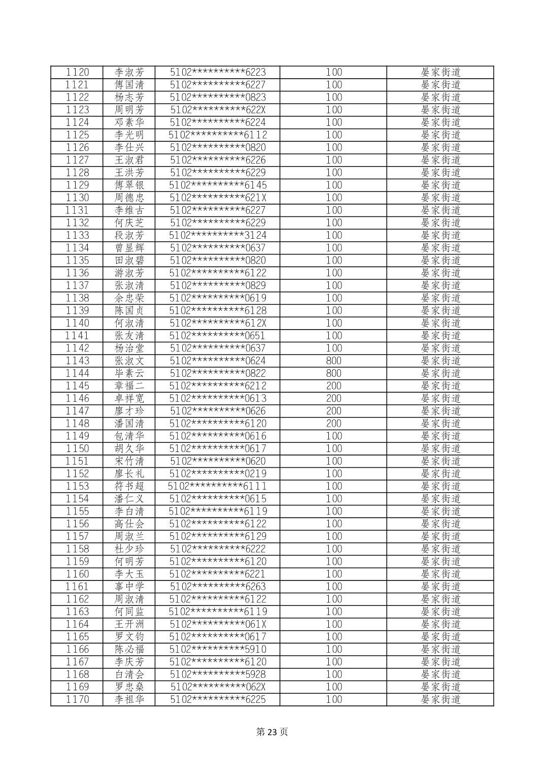 重庆市长寿区高龄老人营养补贴2024年6月发放明细