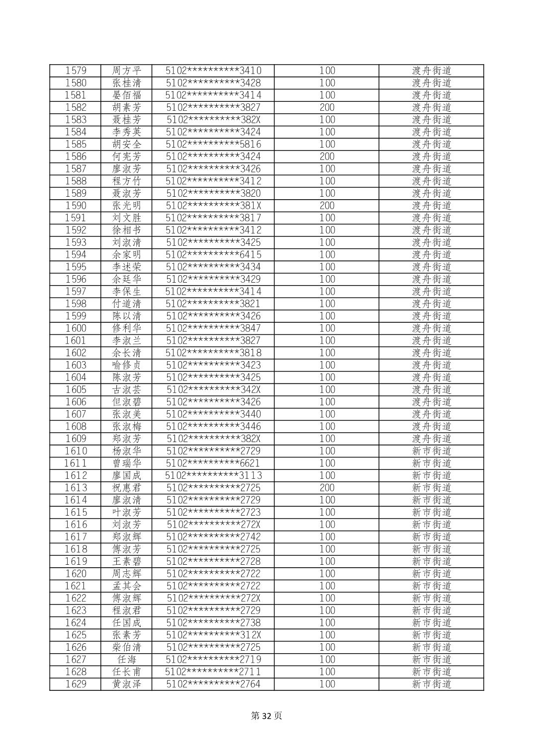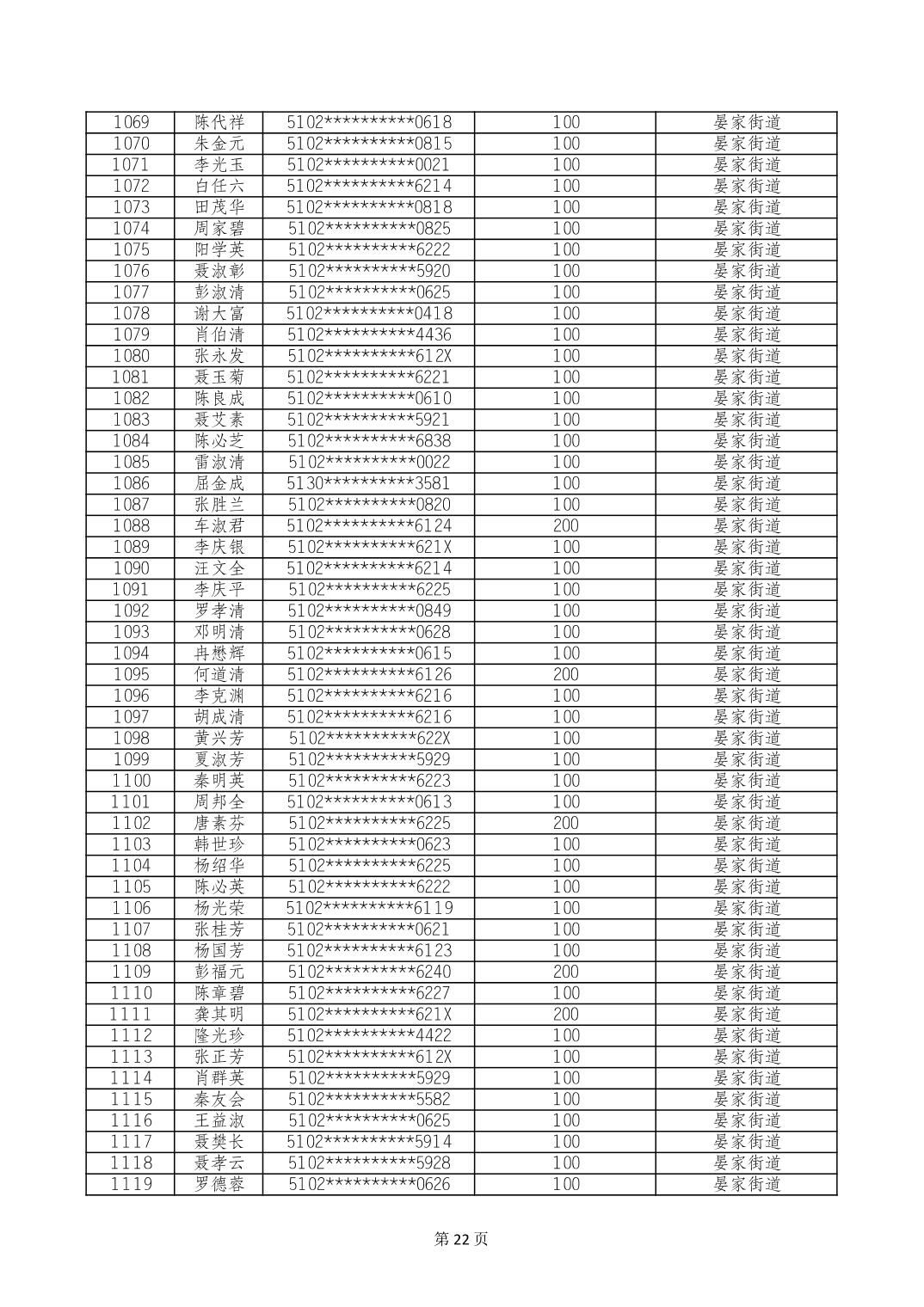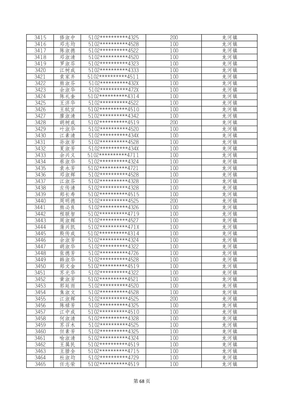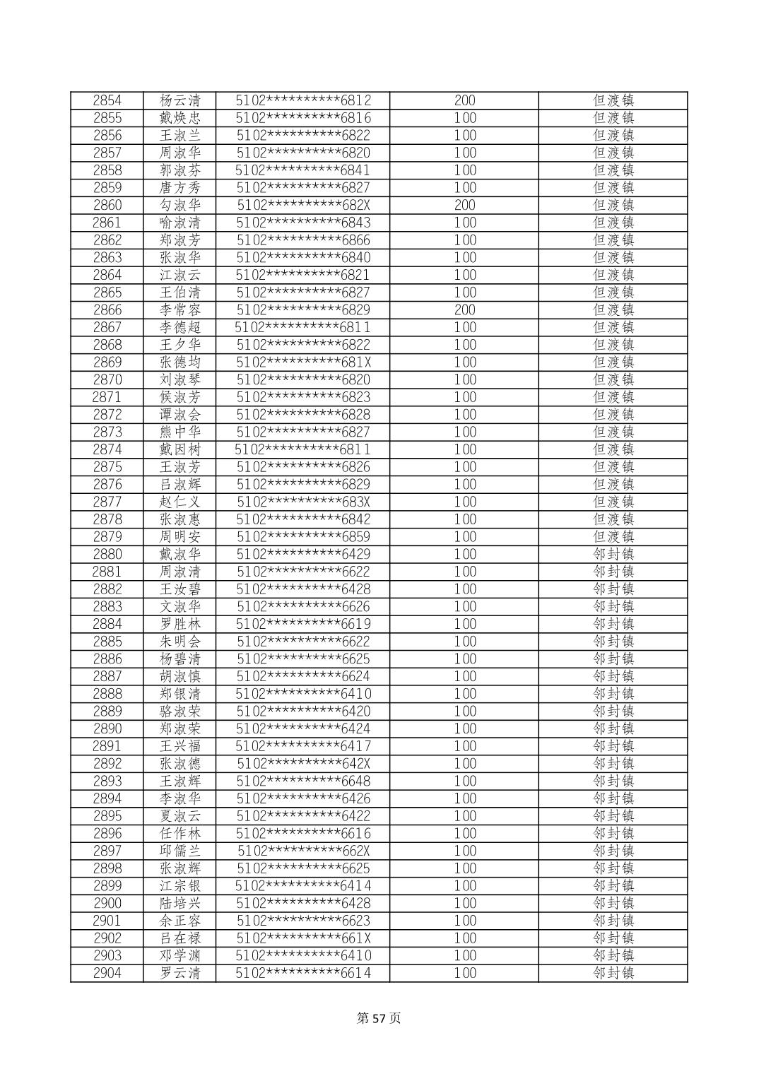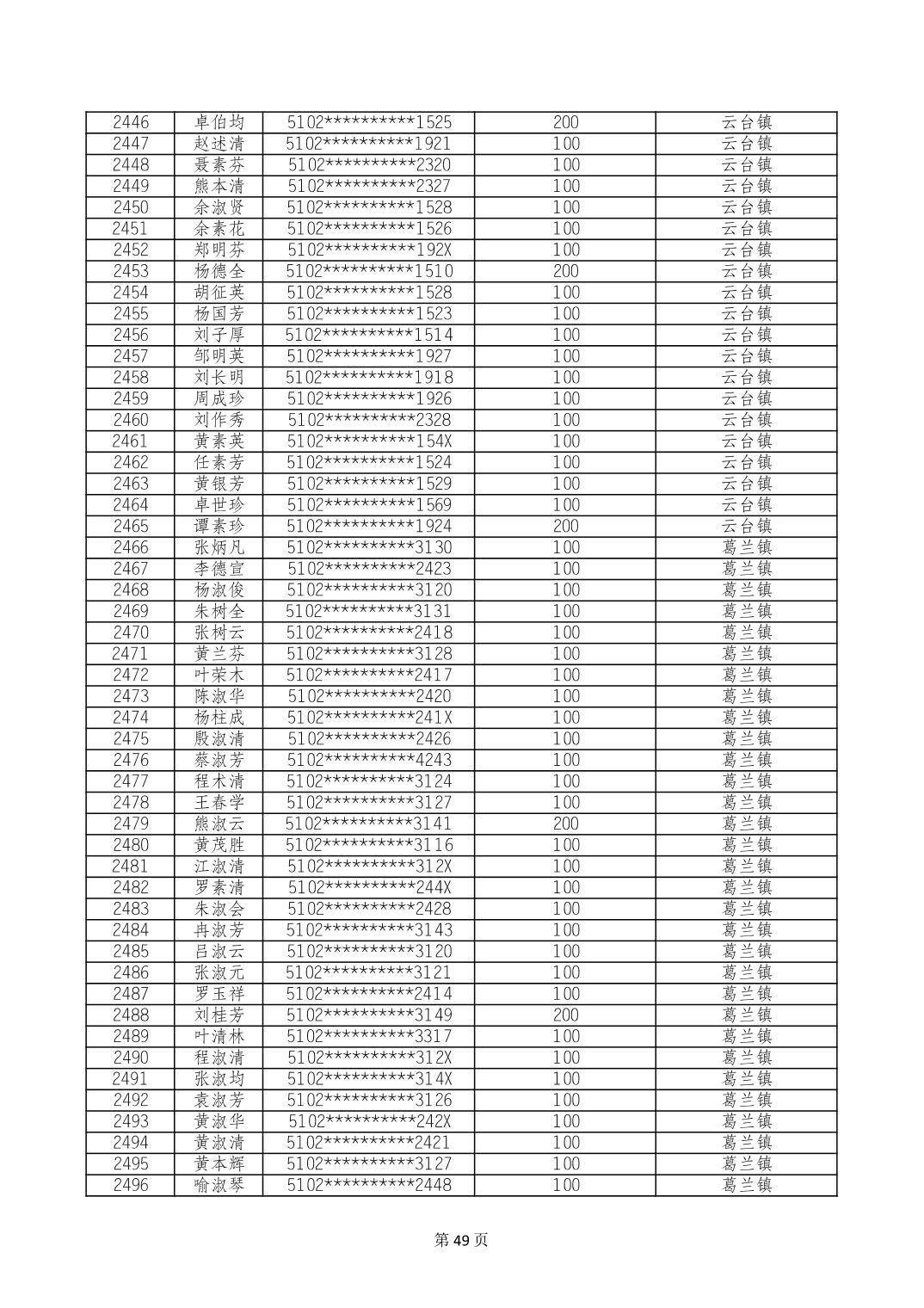 重庆市长寿区高龄老人营养补贴2024年6月发放明细