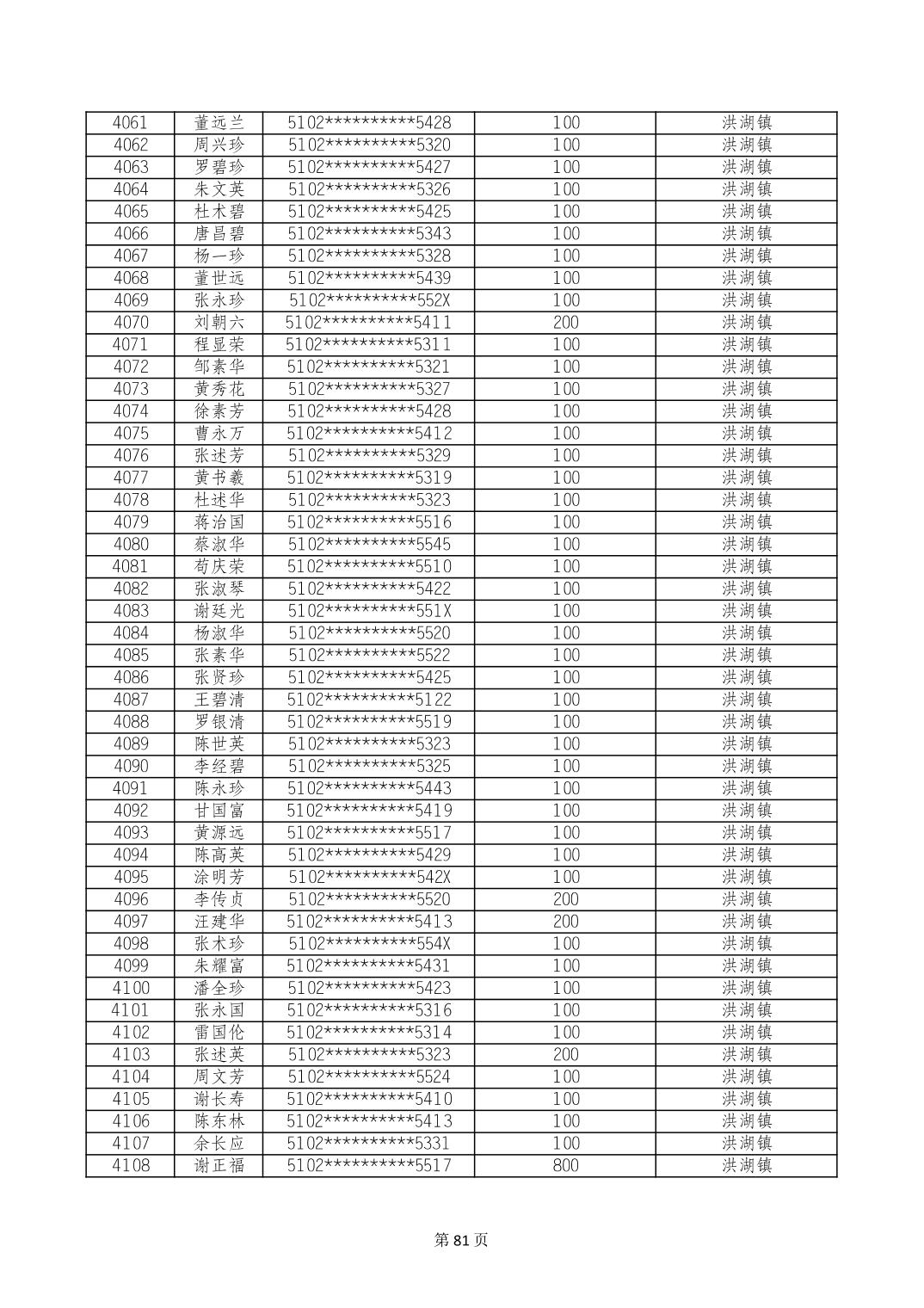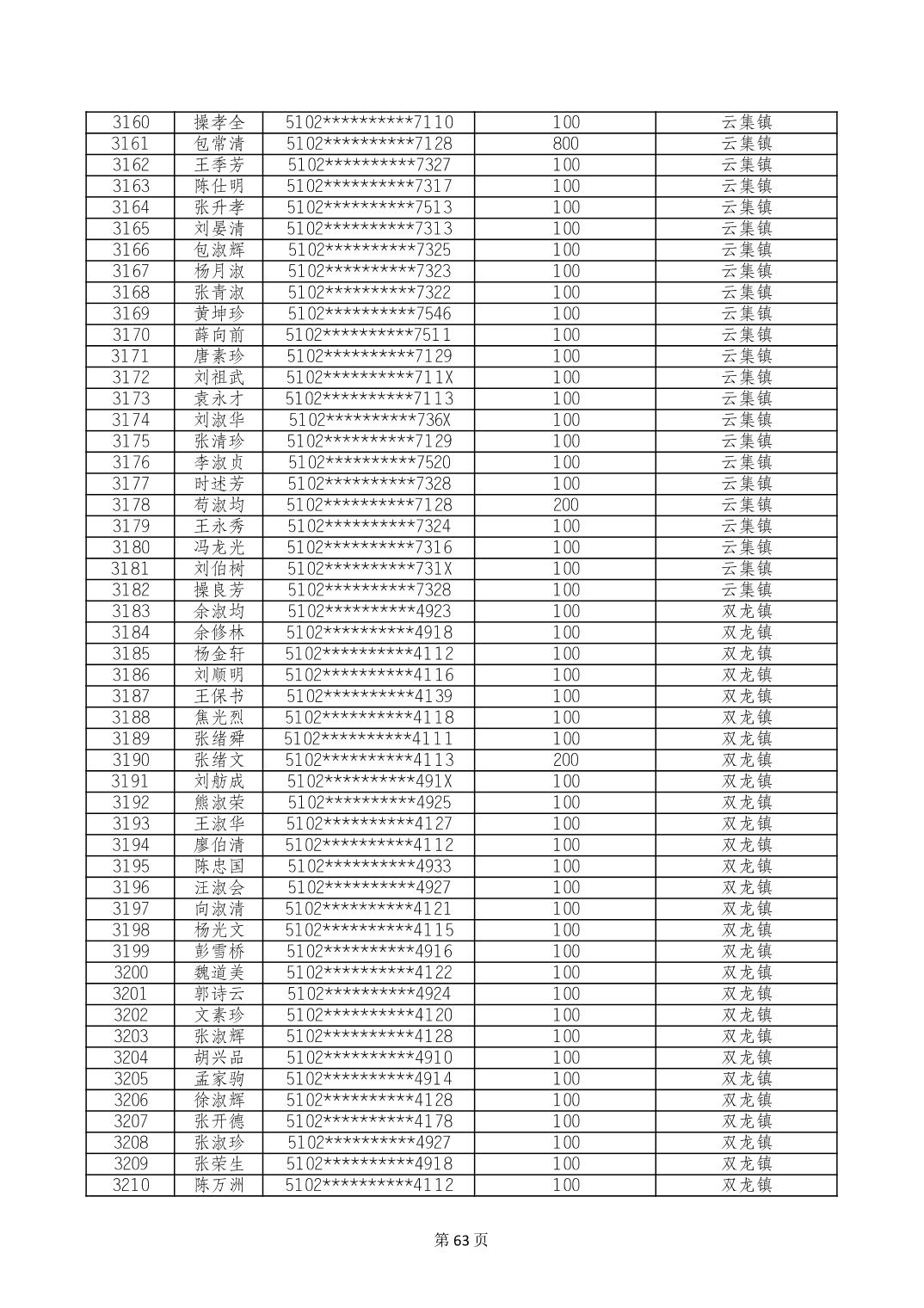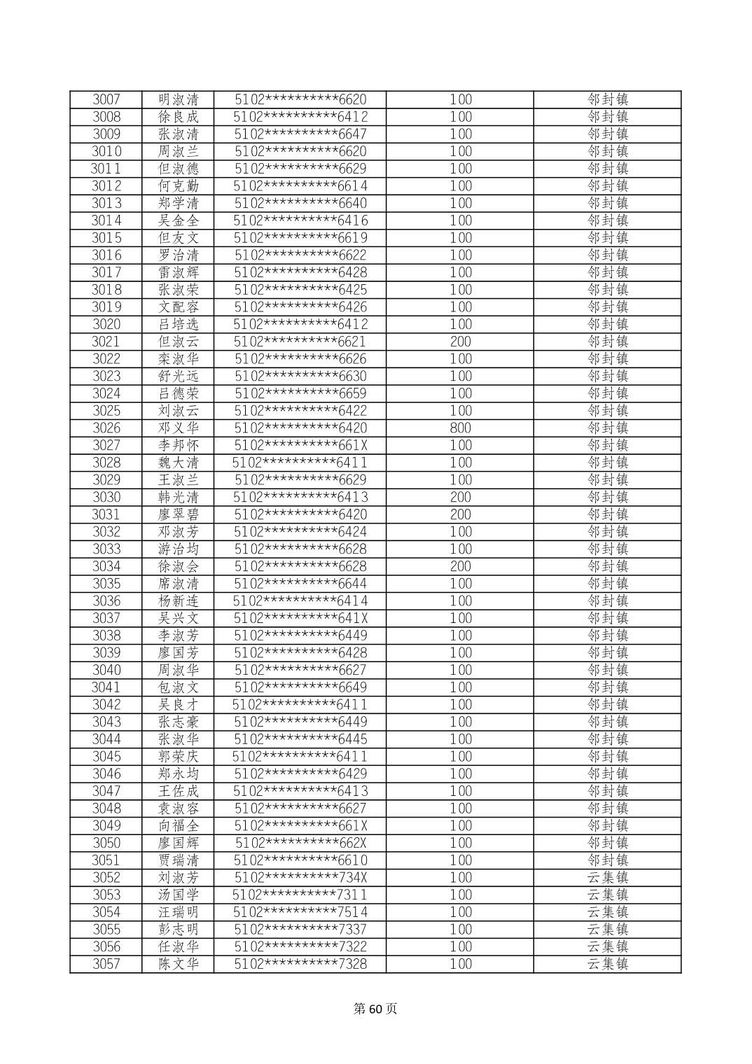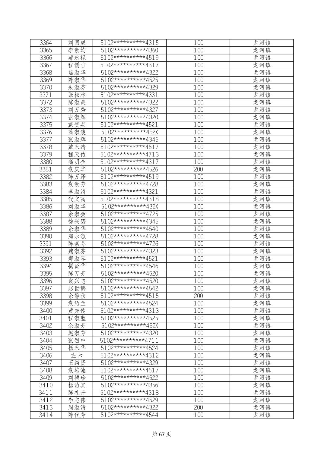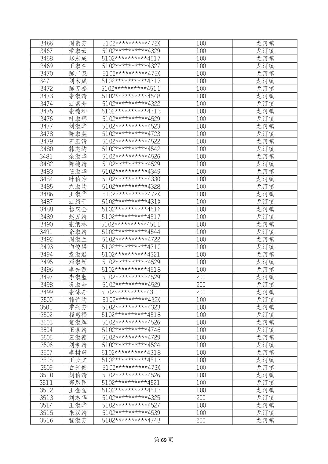 重庆市长寿区高龄老人营养补贴2024年6月发放明细