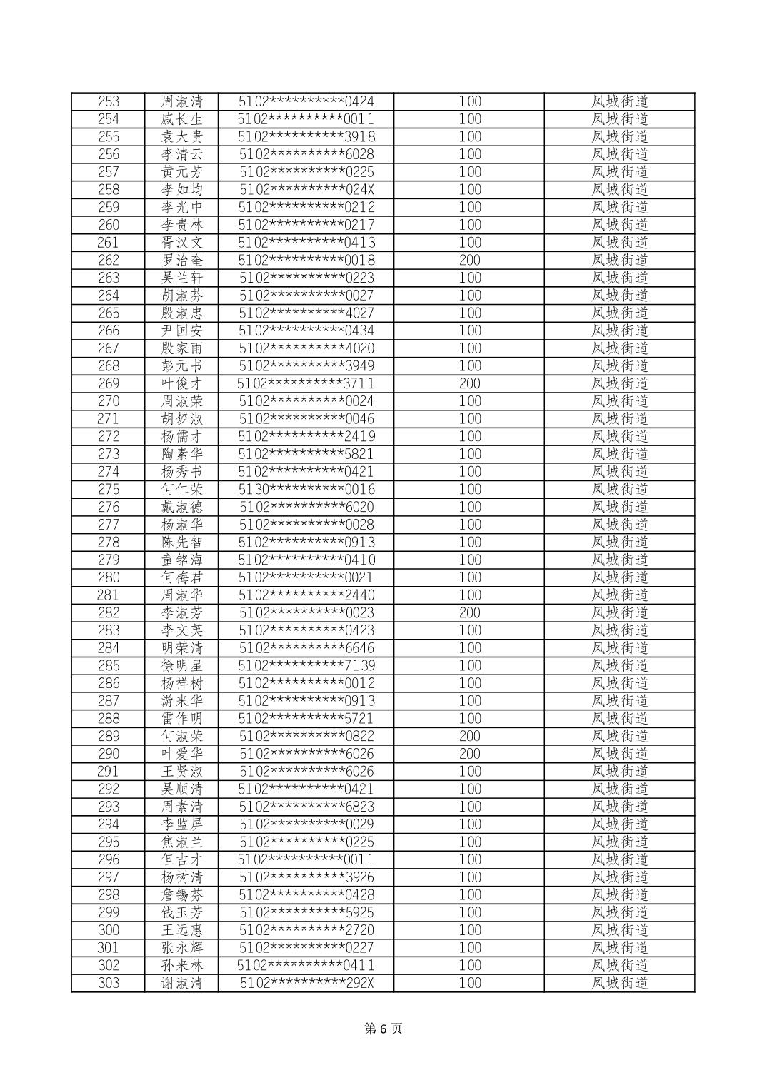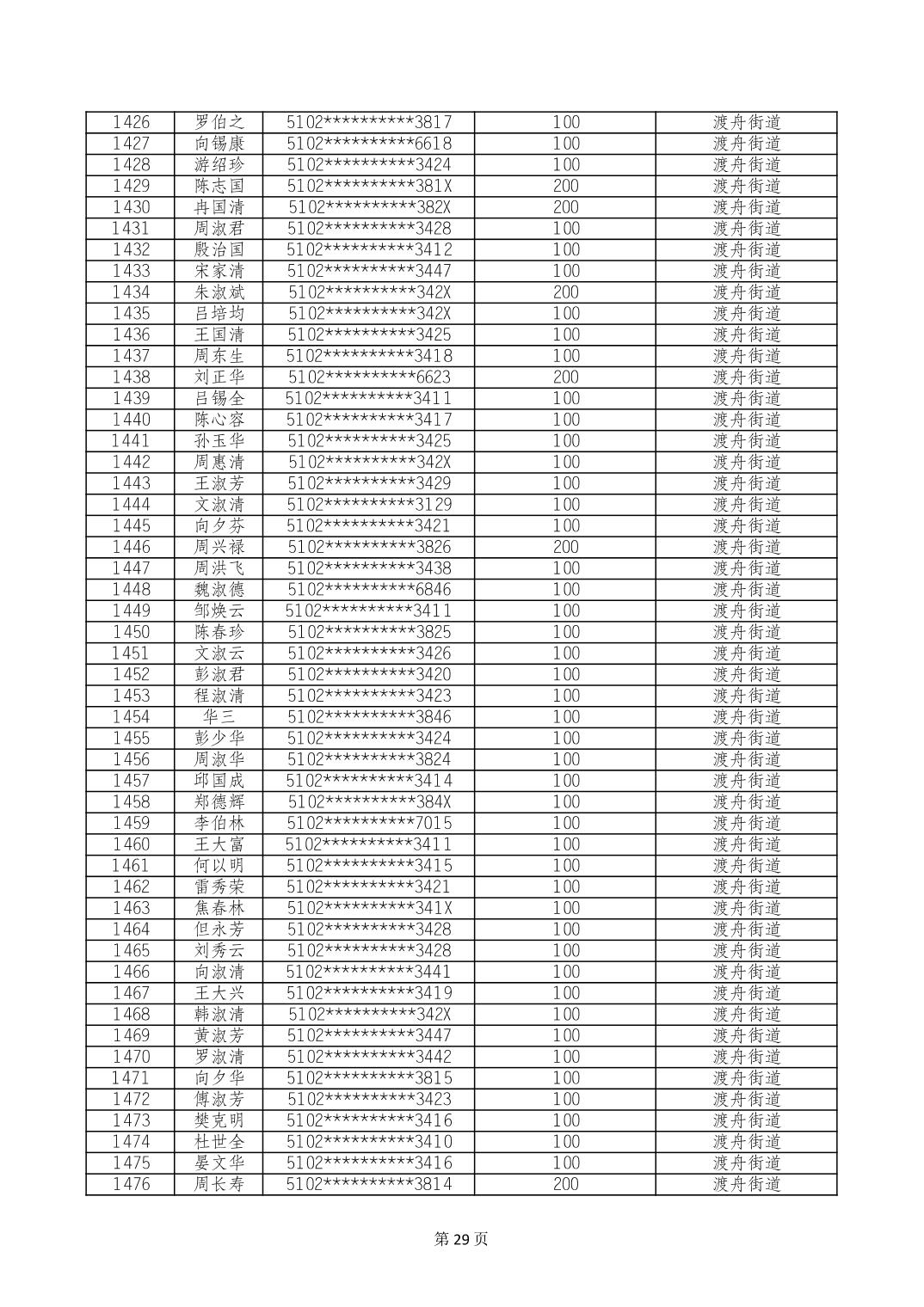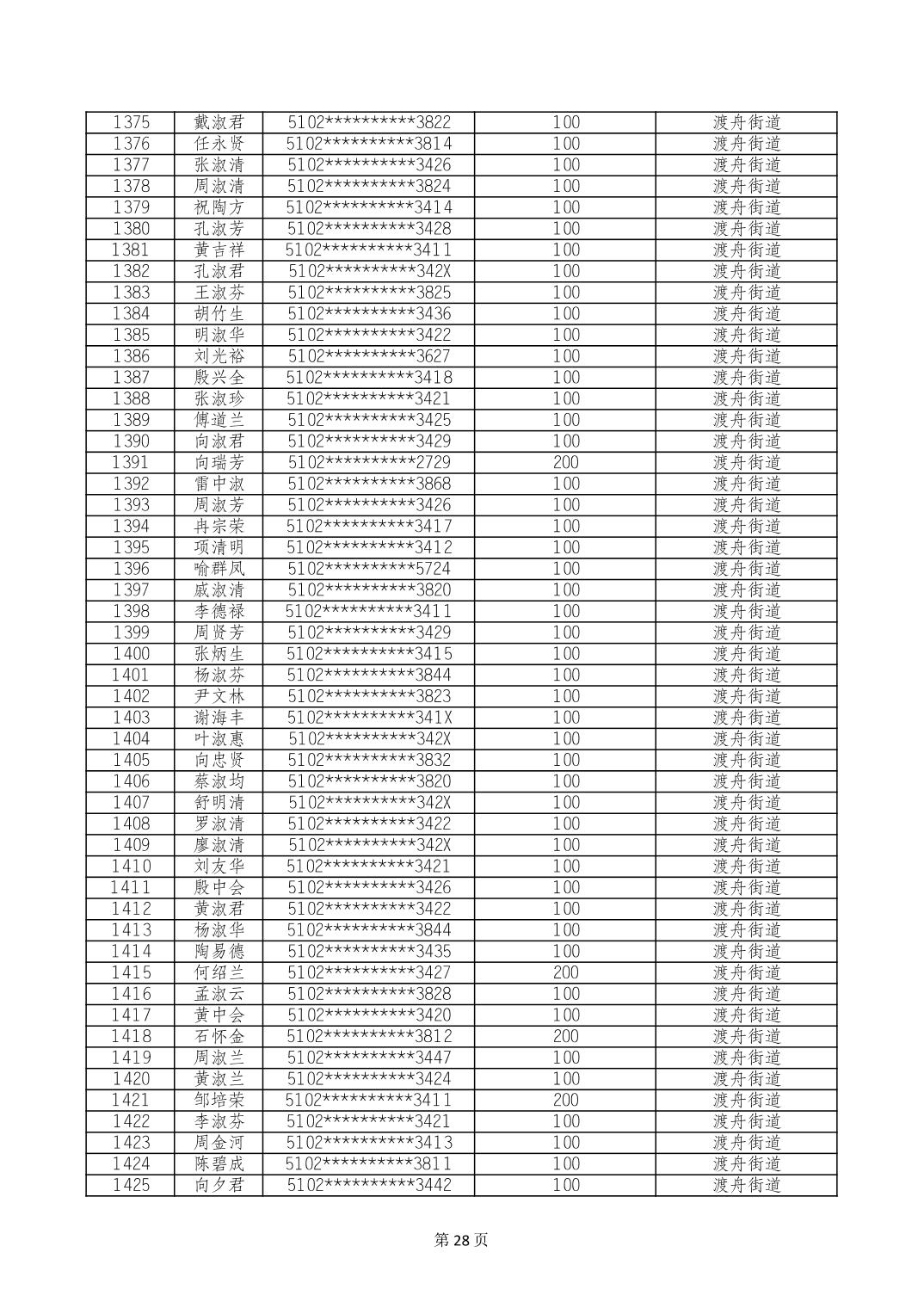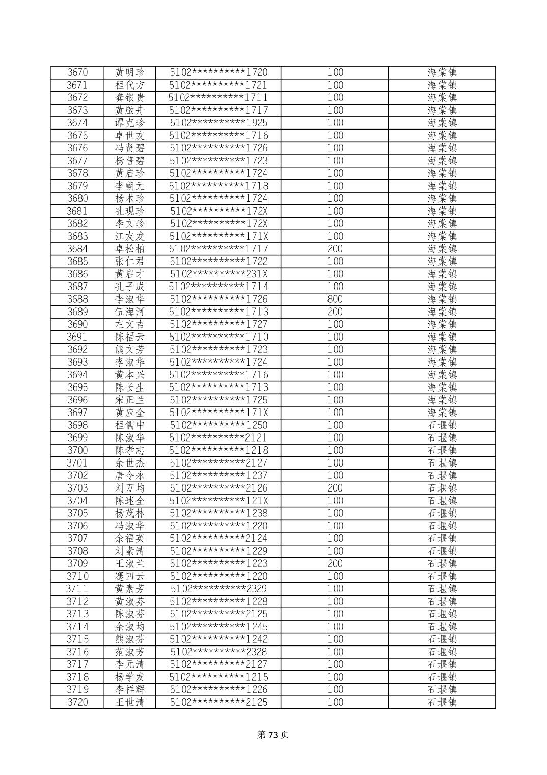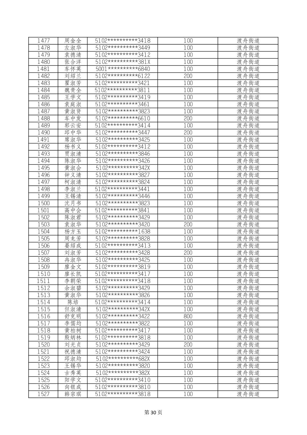 重庆市长寿区高龄老人营养补贴2024年6月发放明细