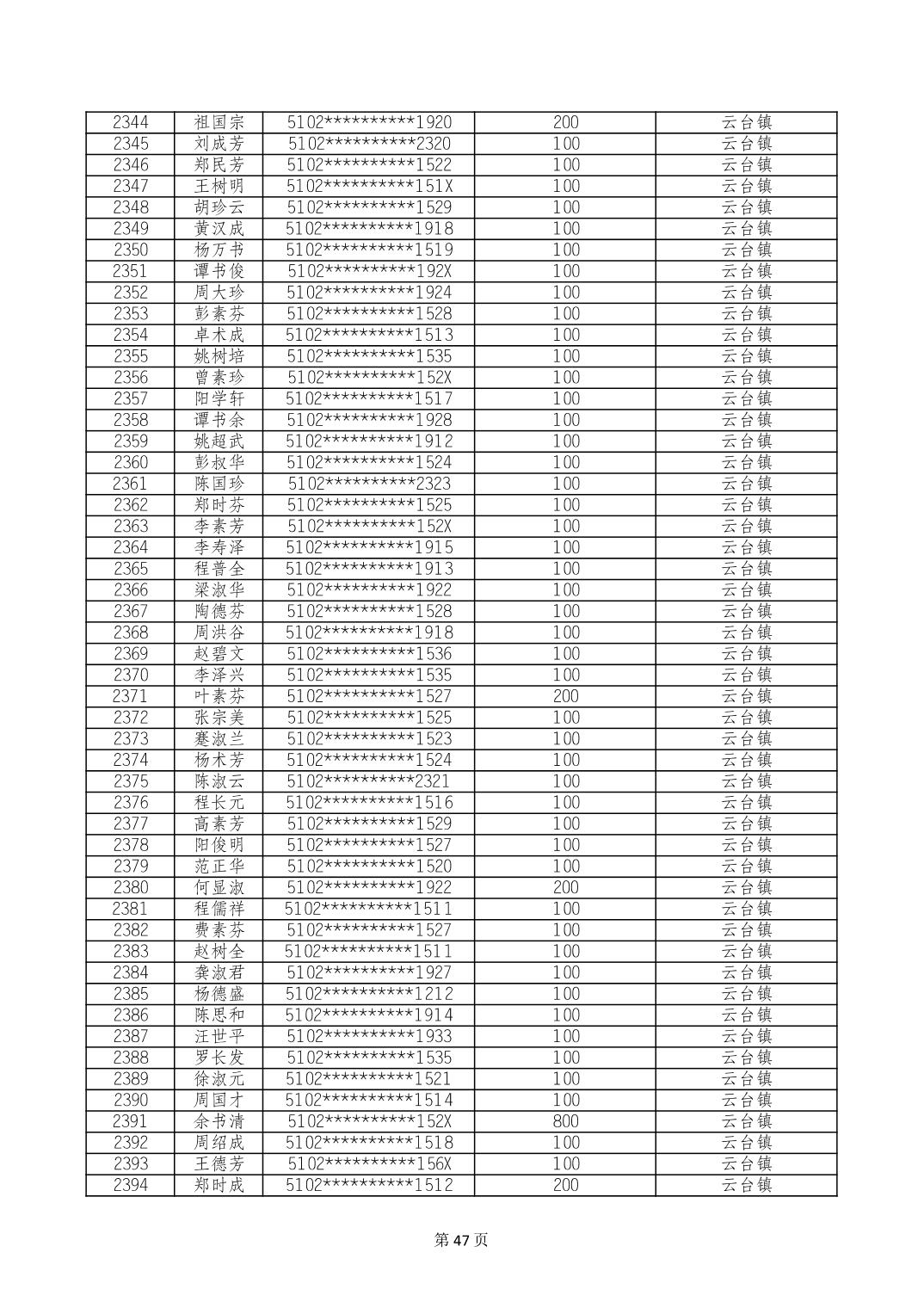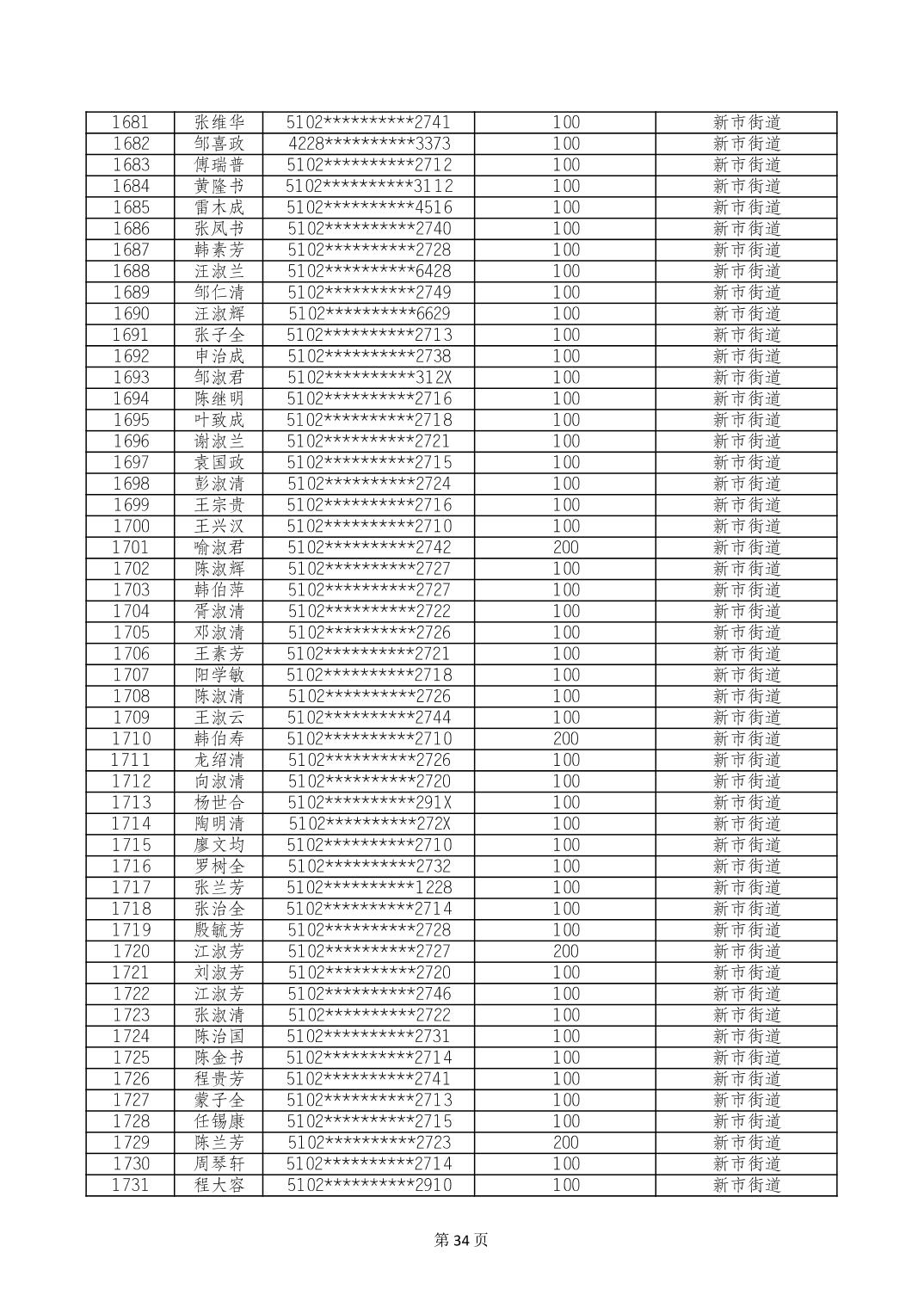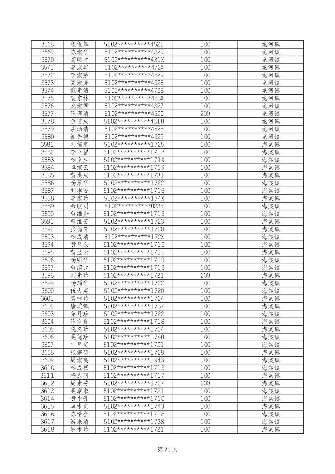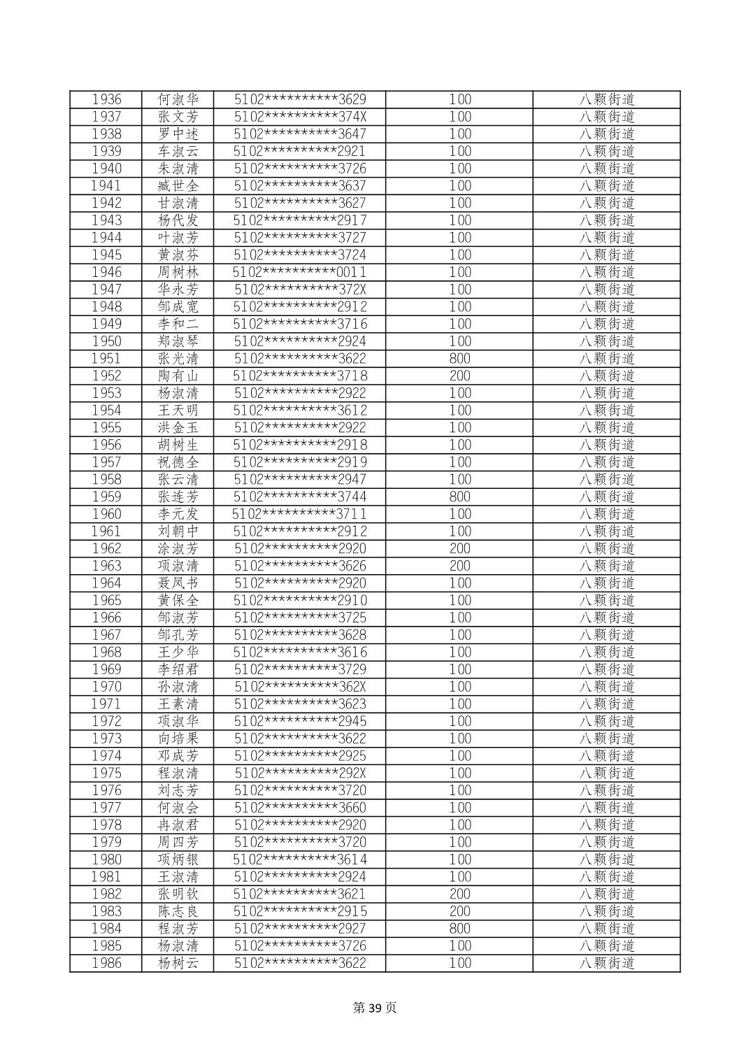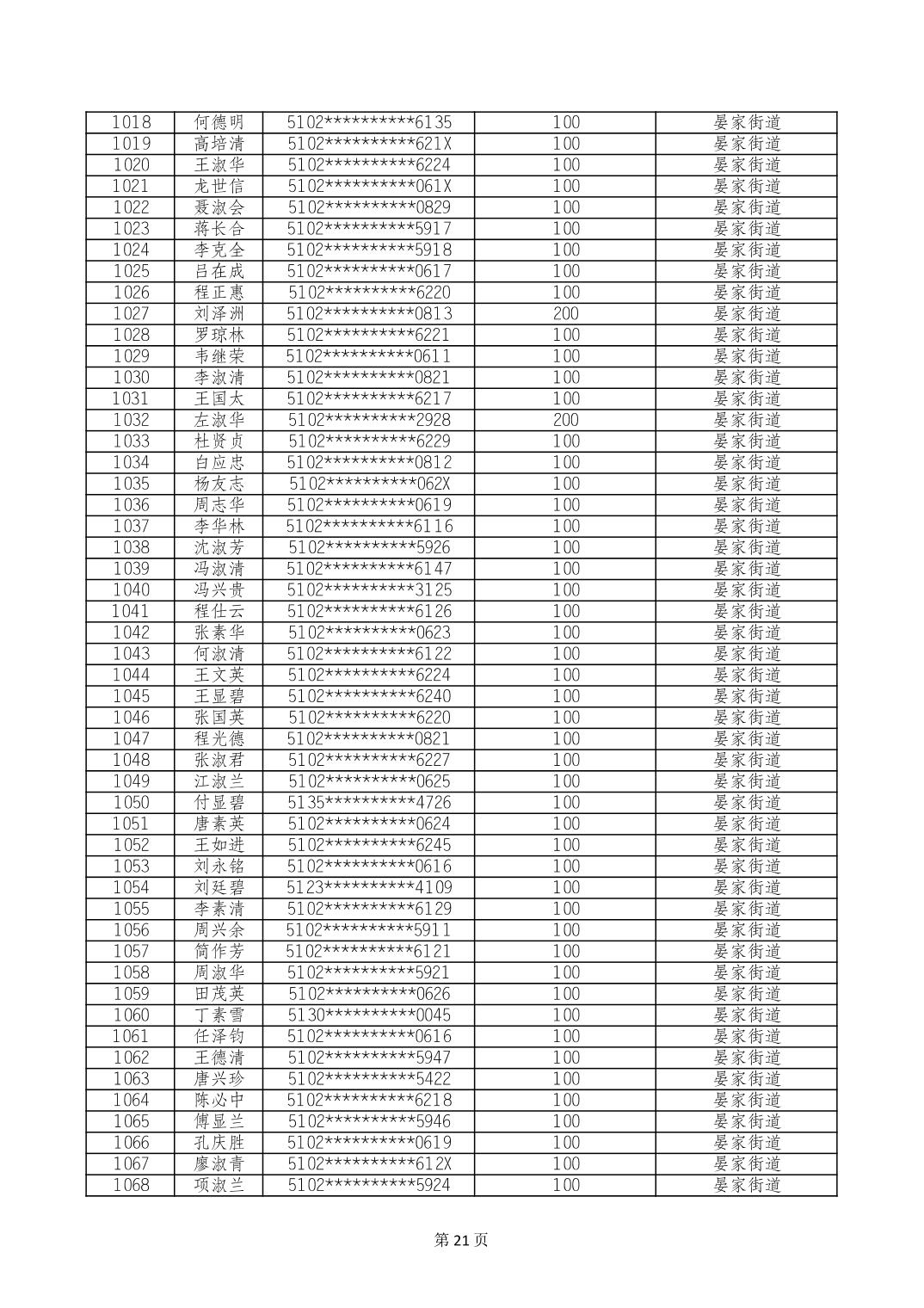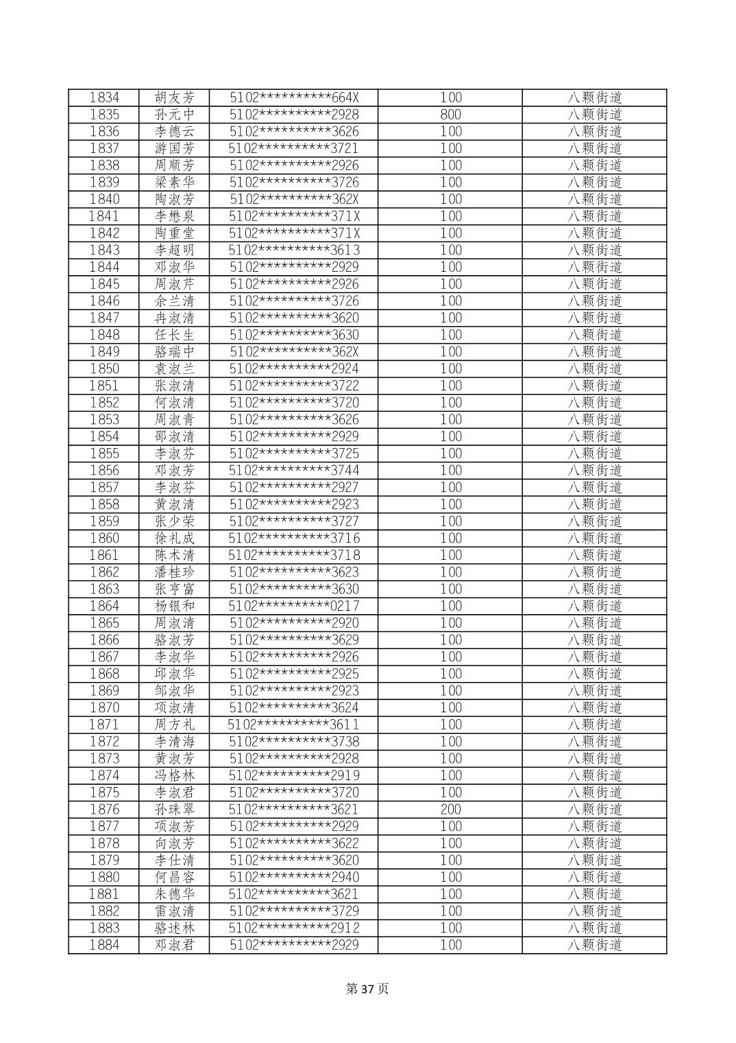 重庆市长寿区高龄老人营养补贴2024年6月发放明细
