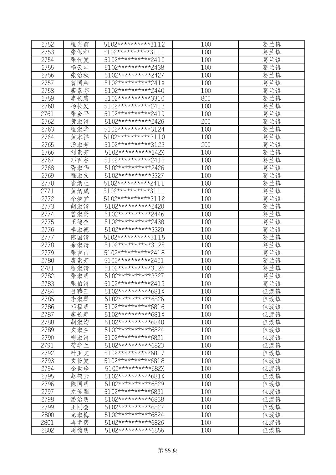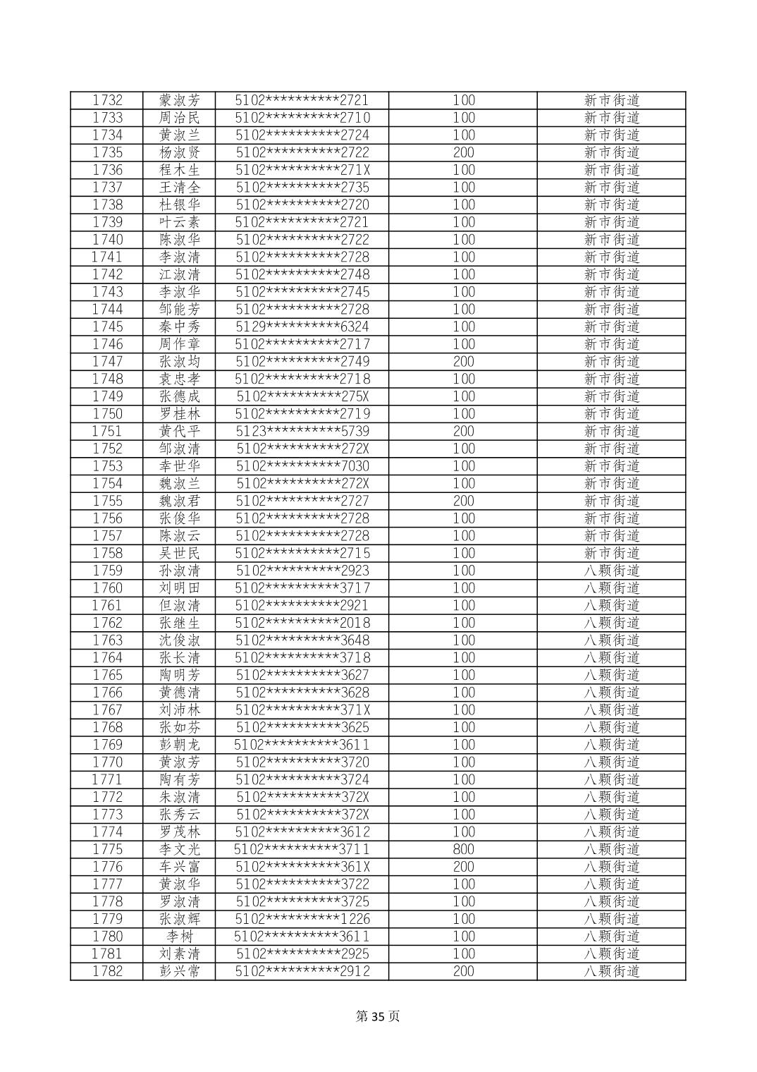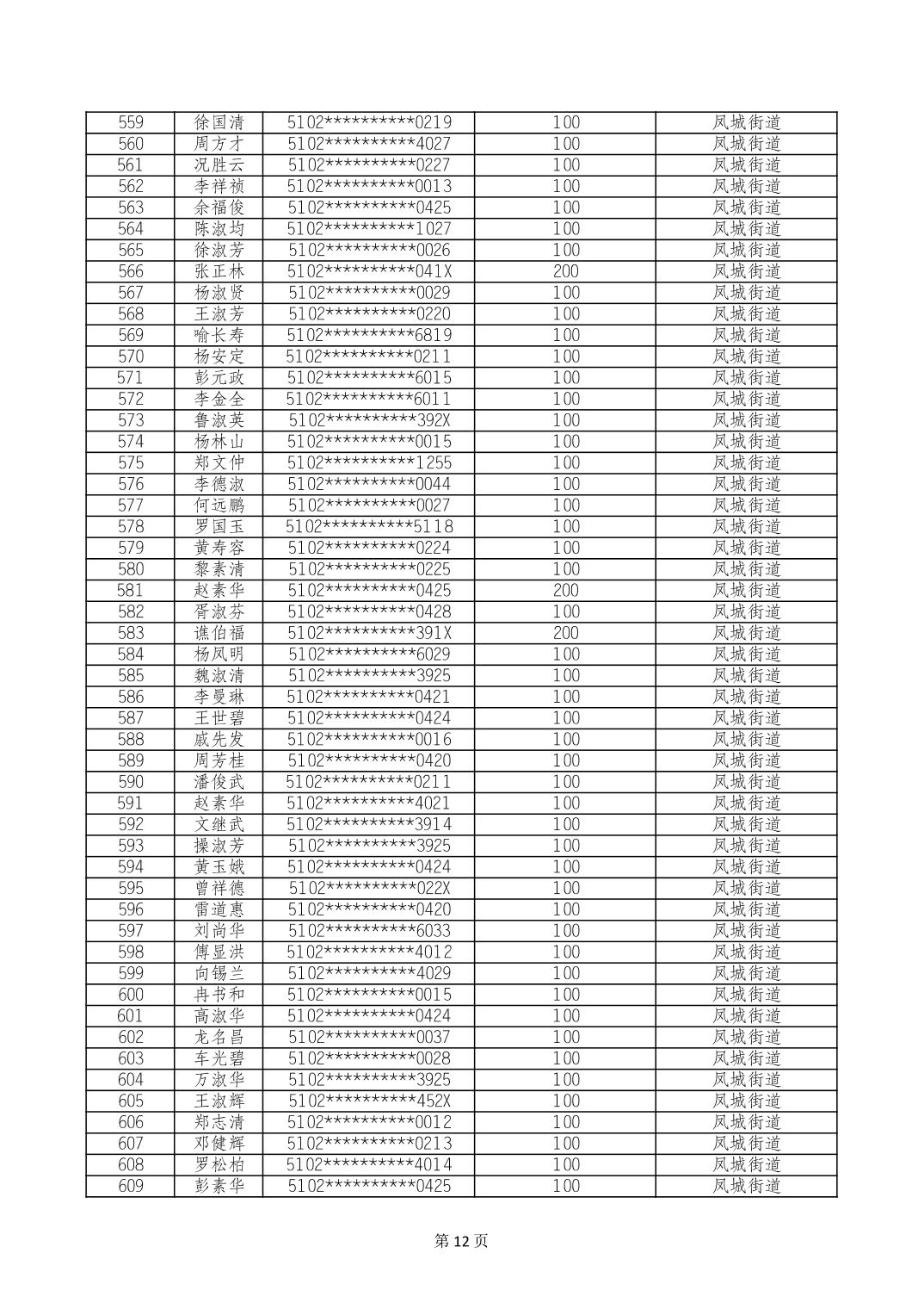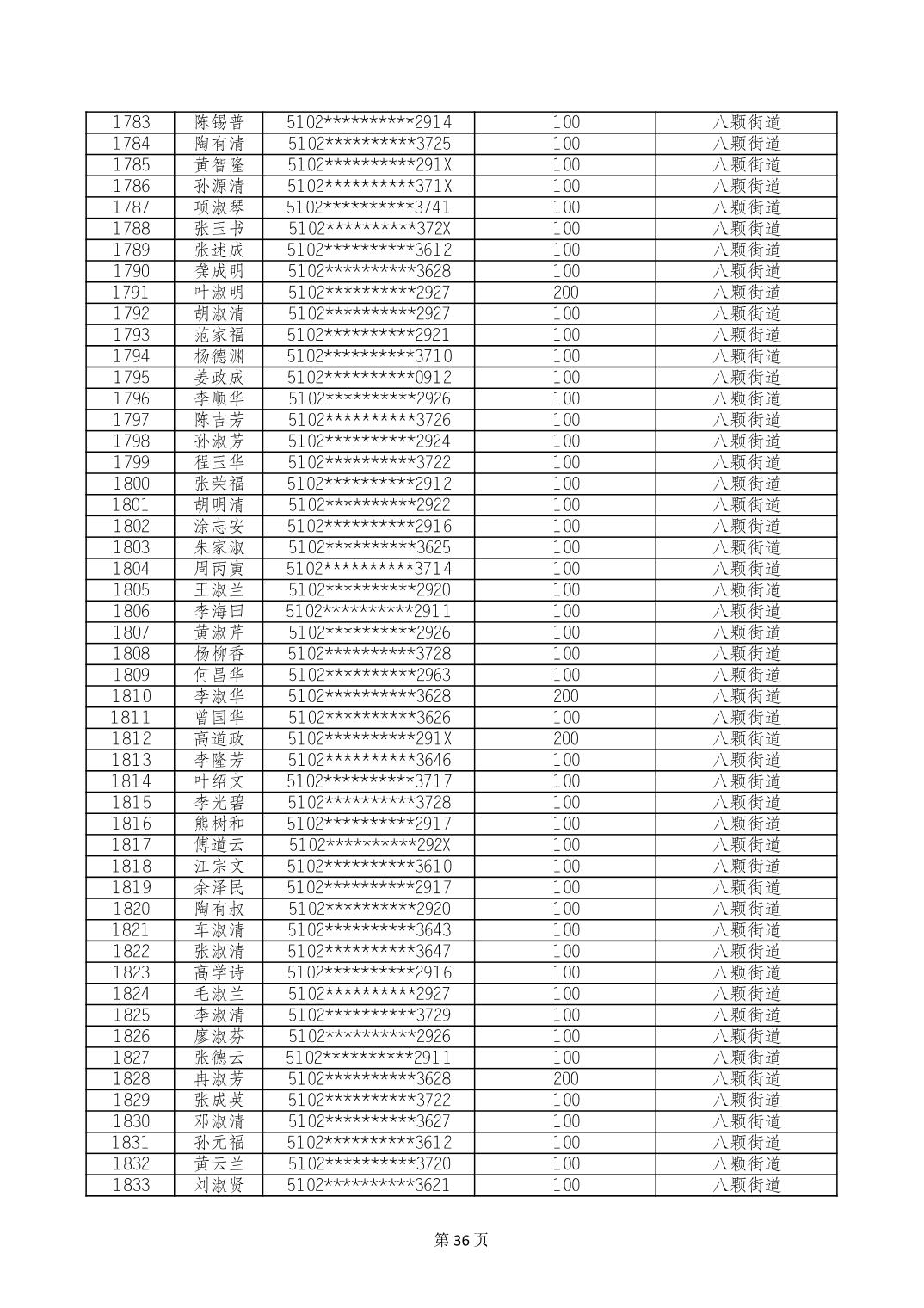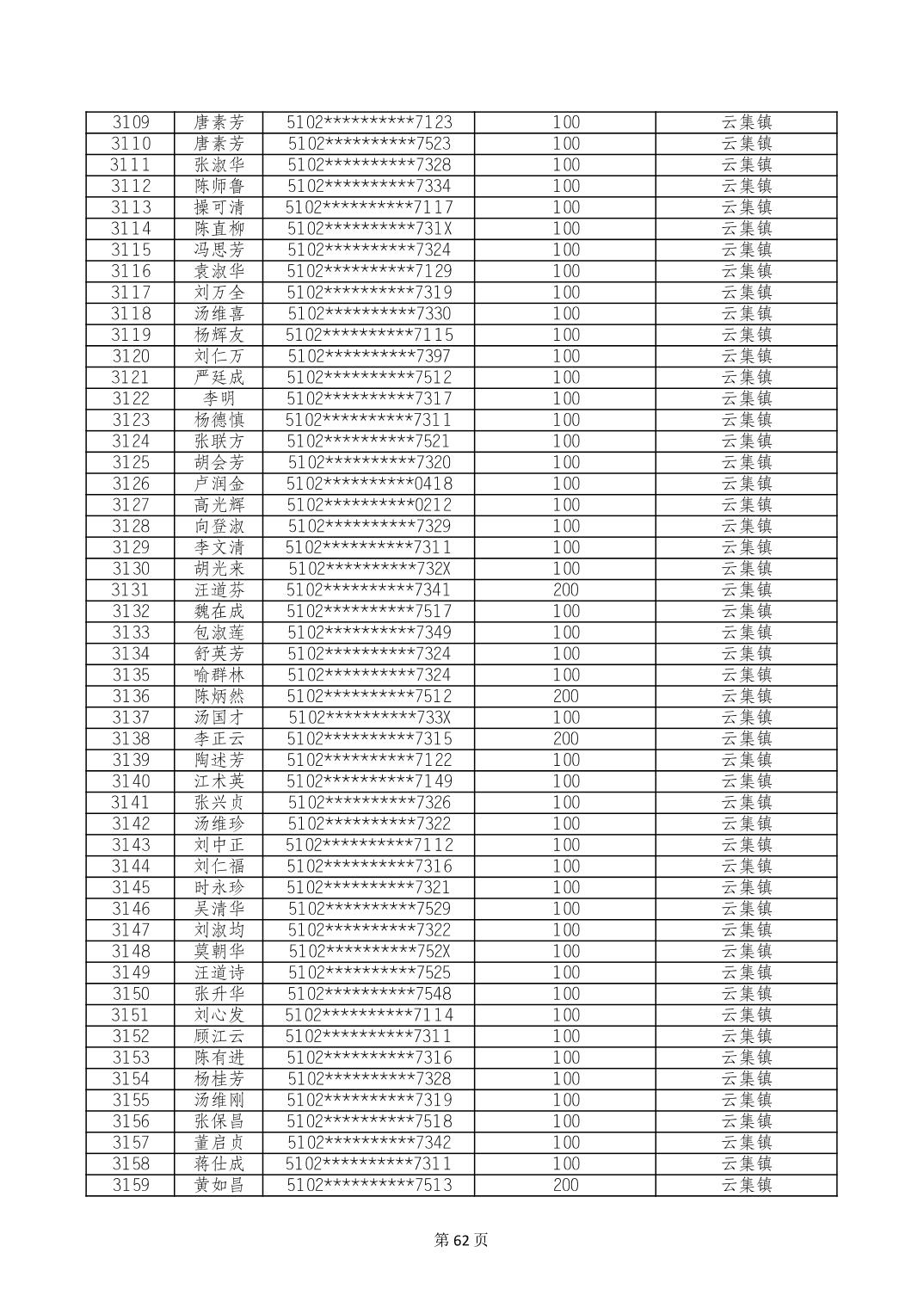 重庆市长寿区高龄老人营养补贴2024年6月发放明细