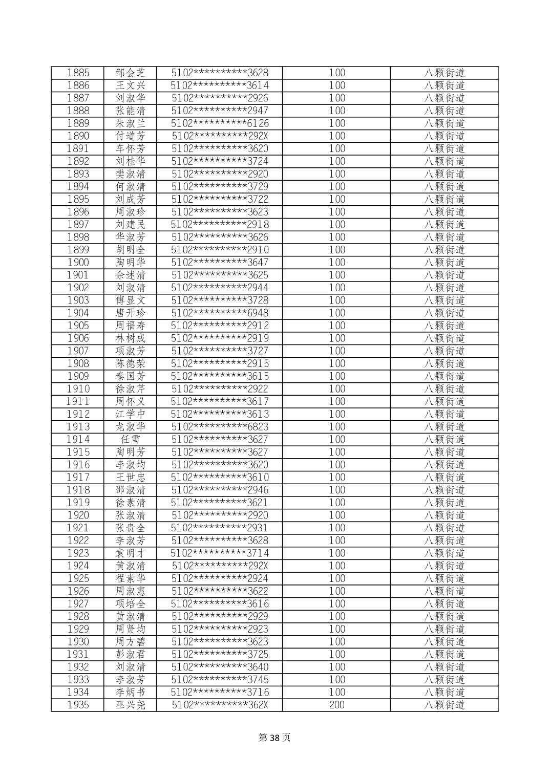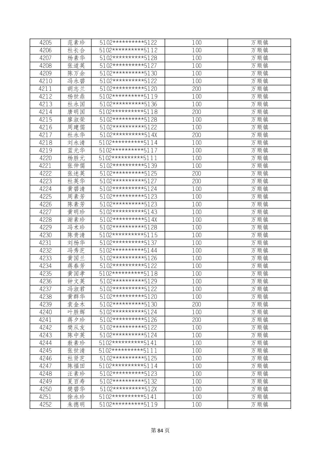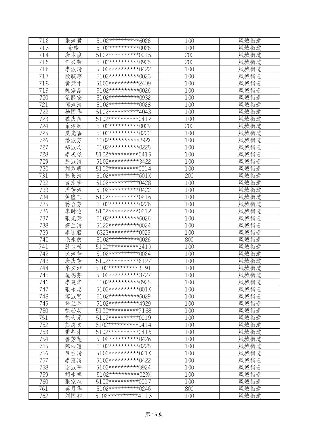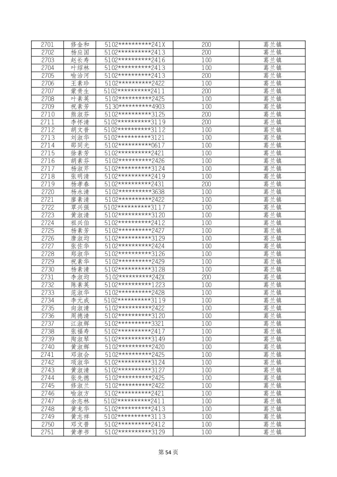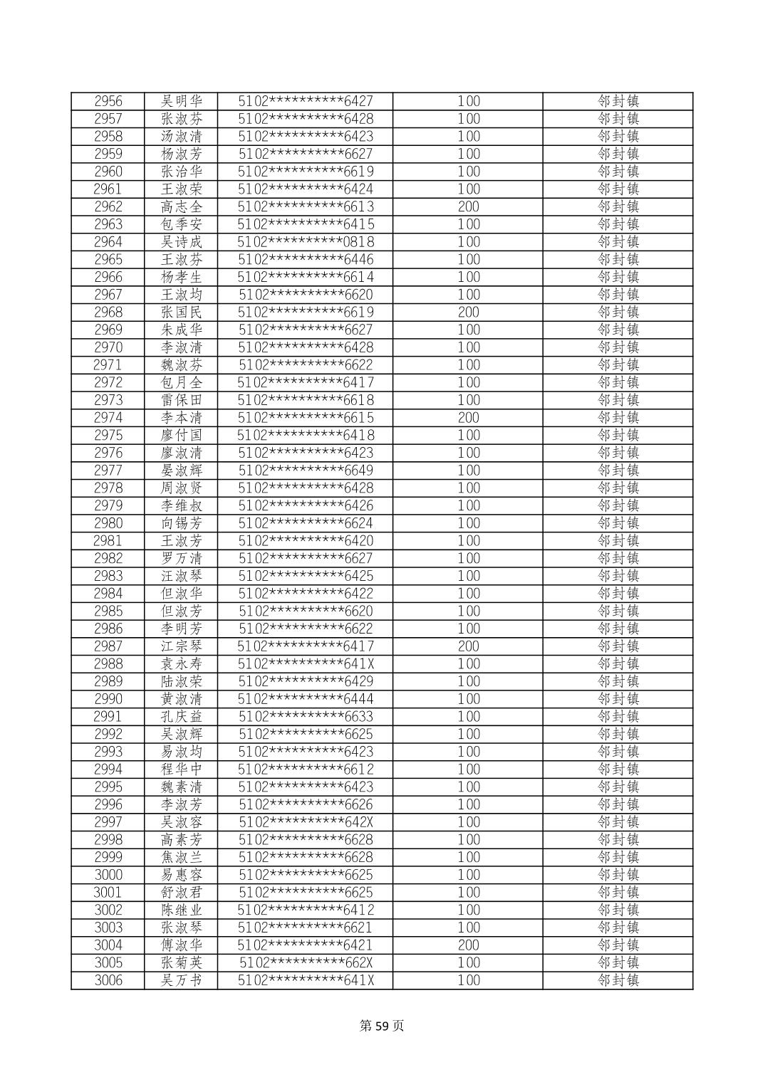 重庆市长寿区高龄老人营养补贴2024年6月发放明细