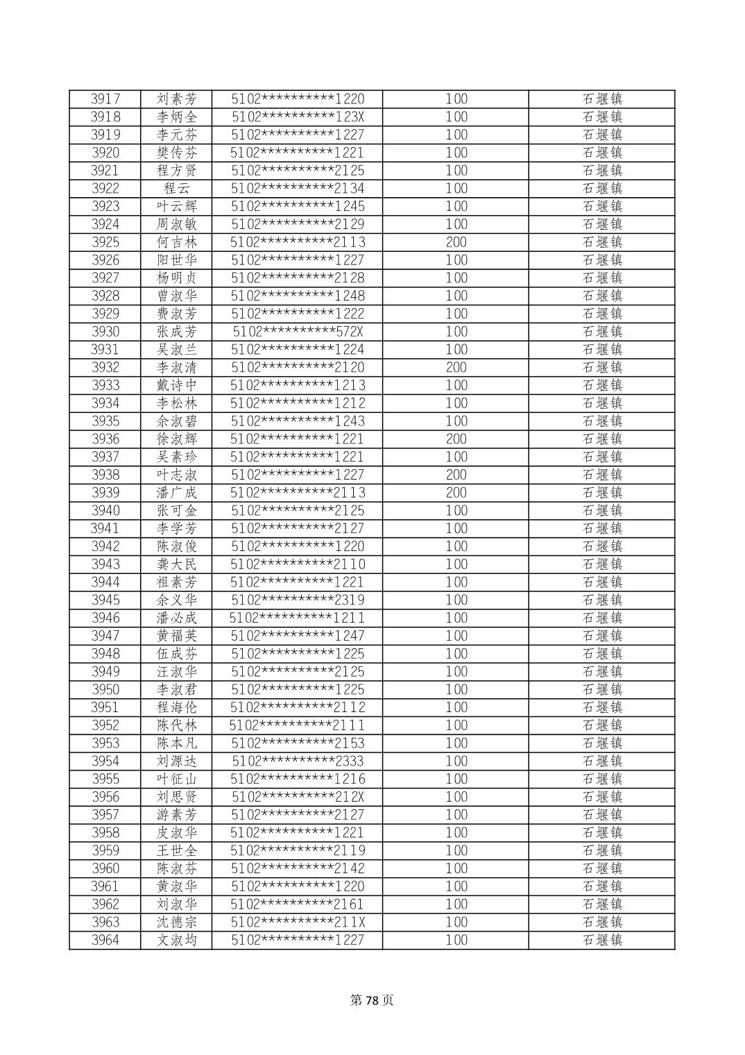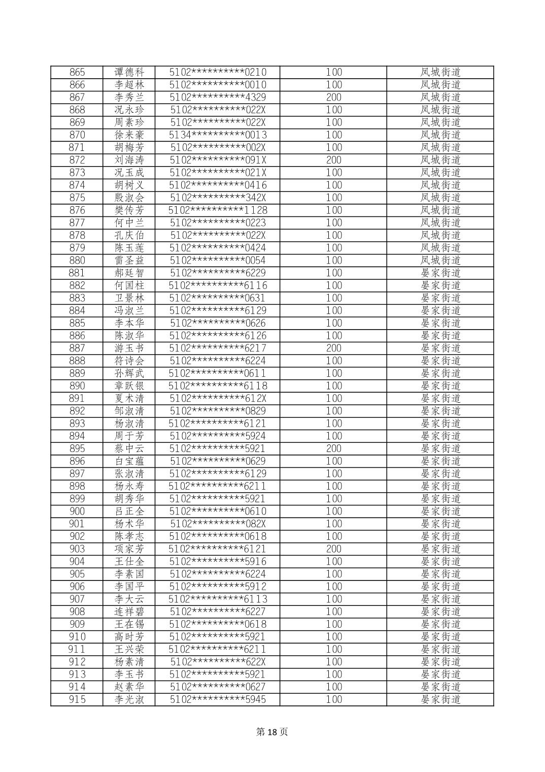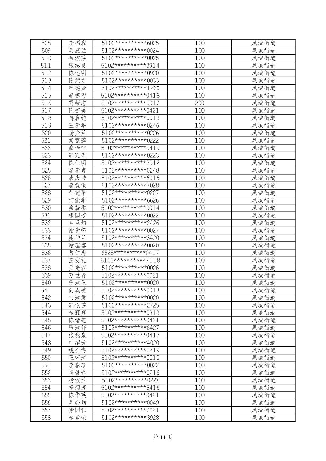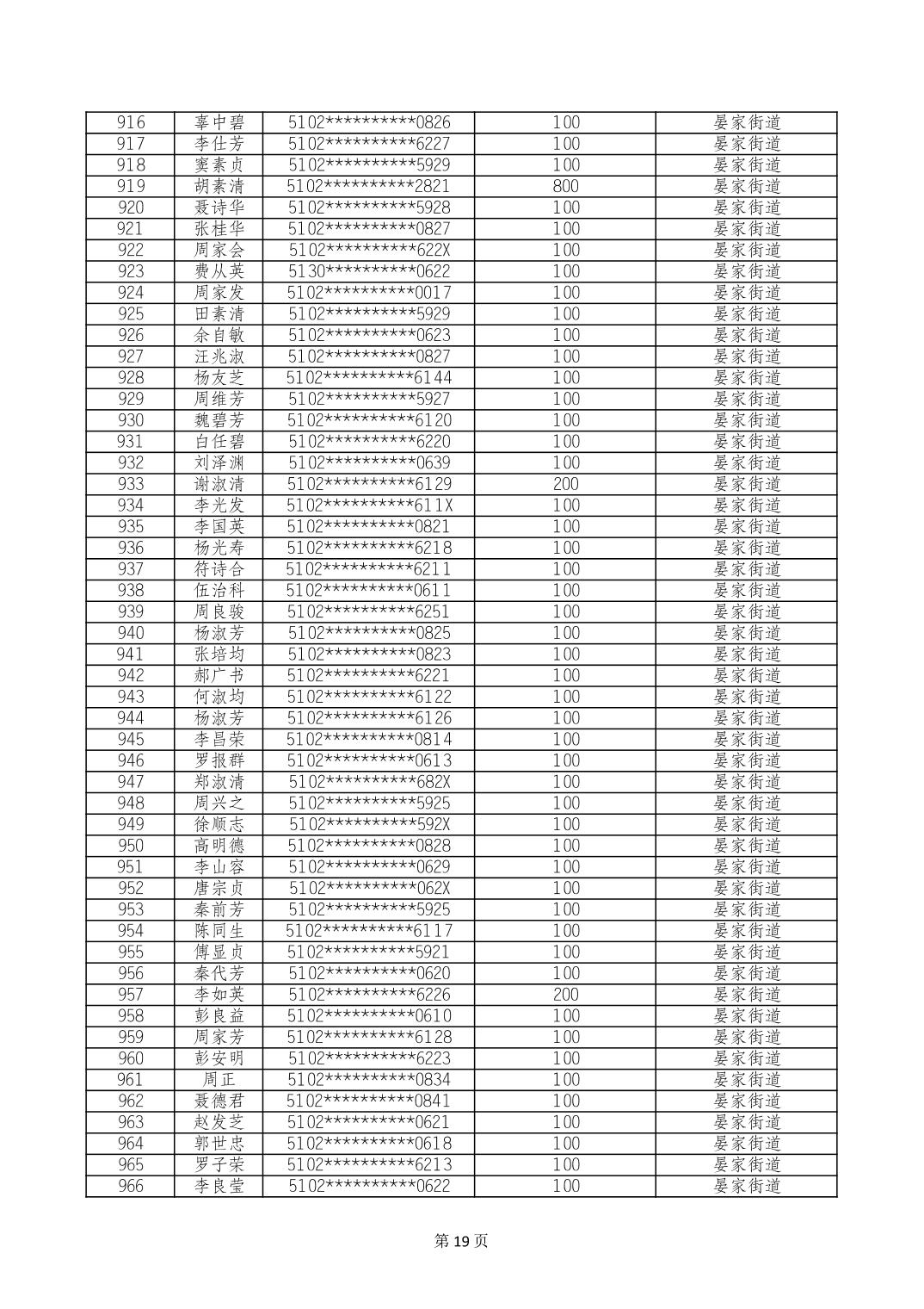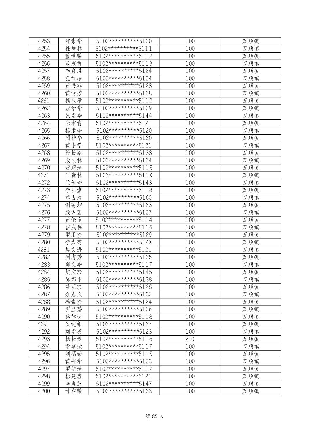 重庆市长寿区高龄老人营养补贴2024年6月发放明细