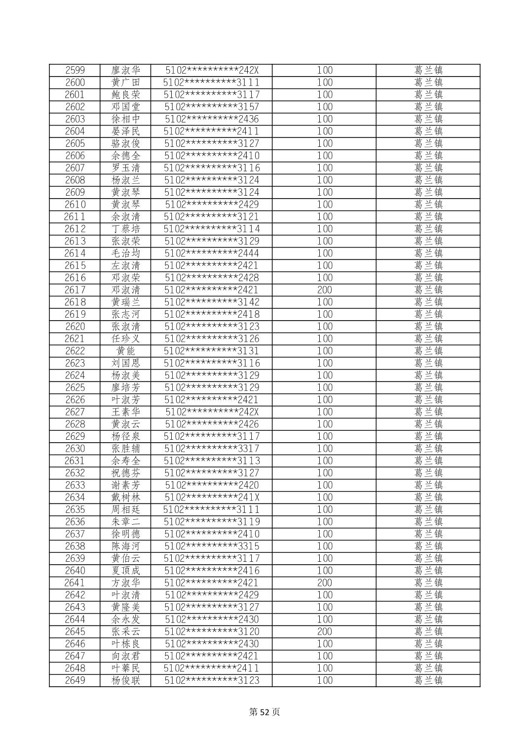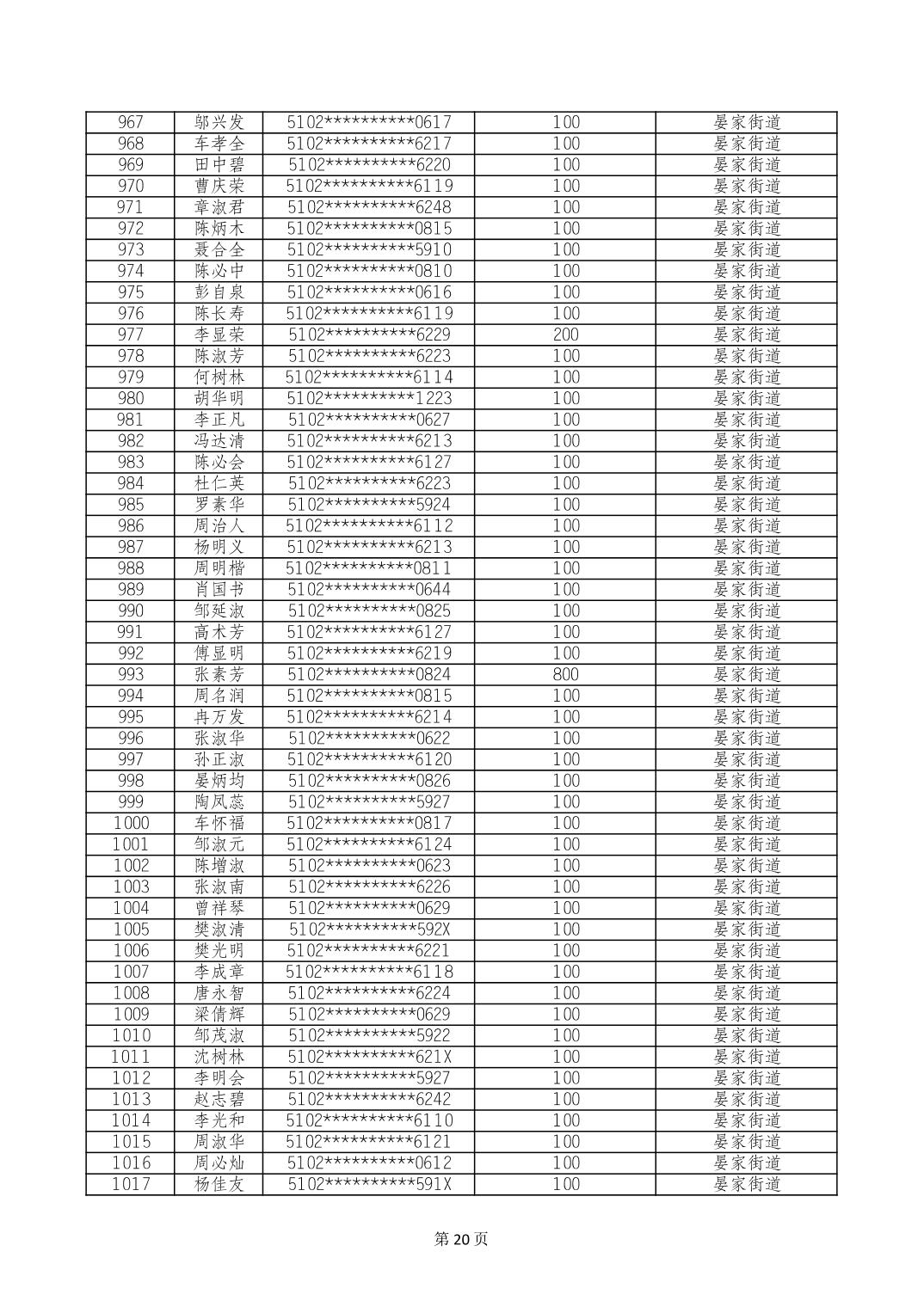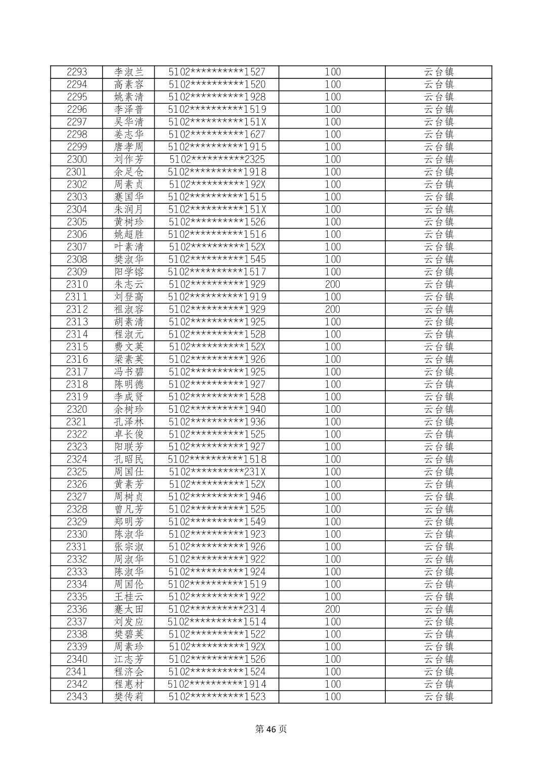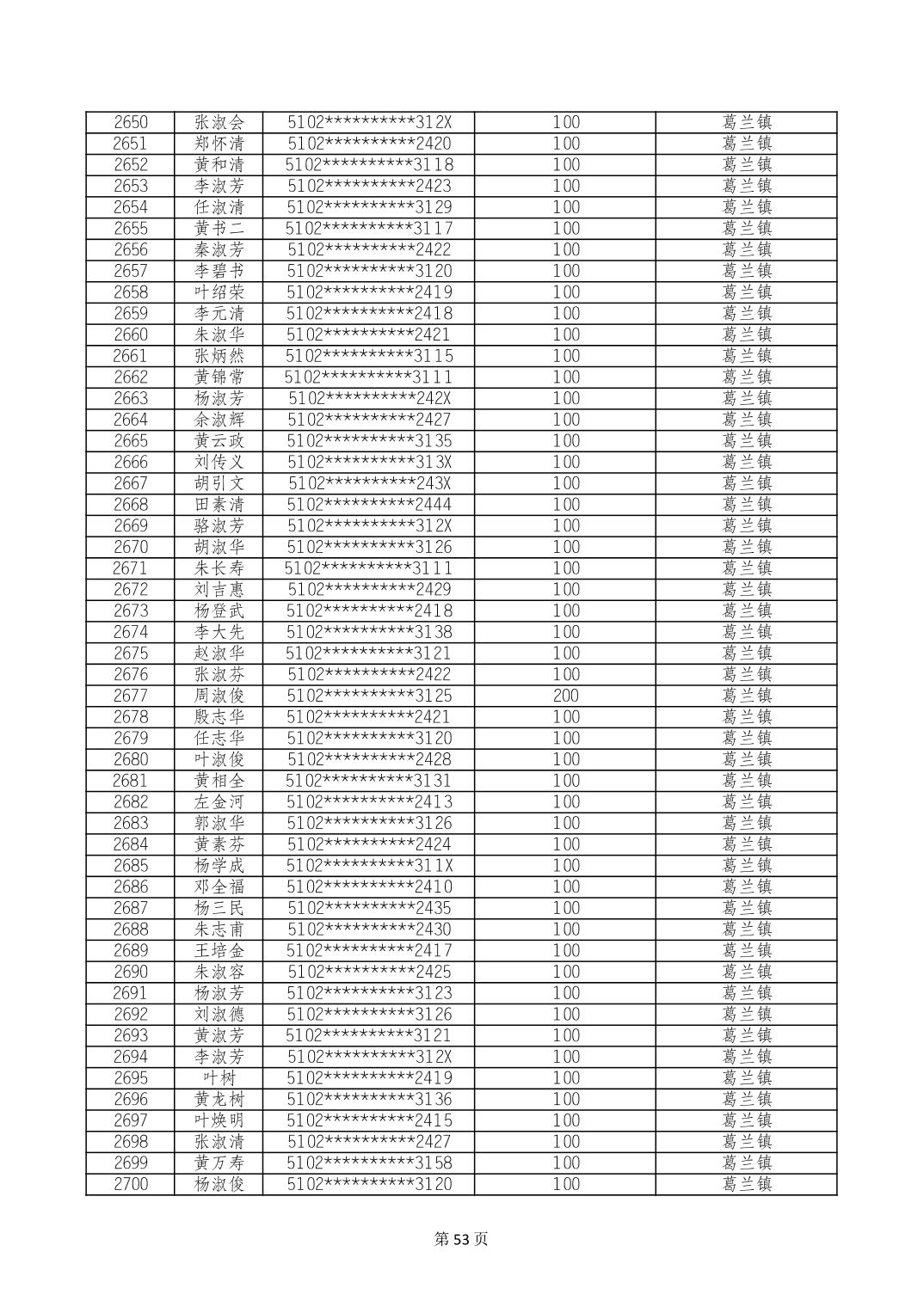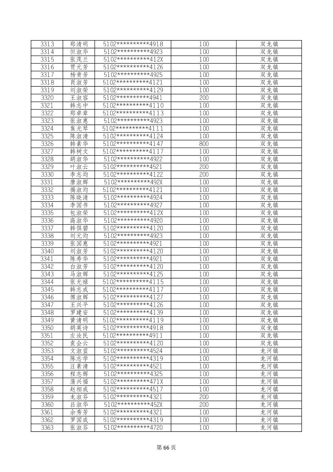 重庆市长寿区高龄老人营养补贴2024年6月发放明细
