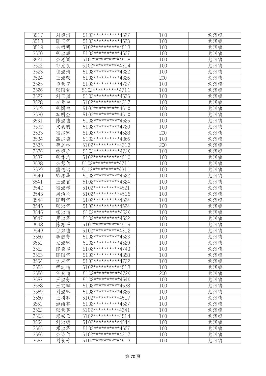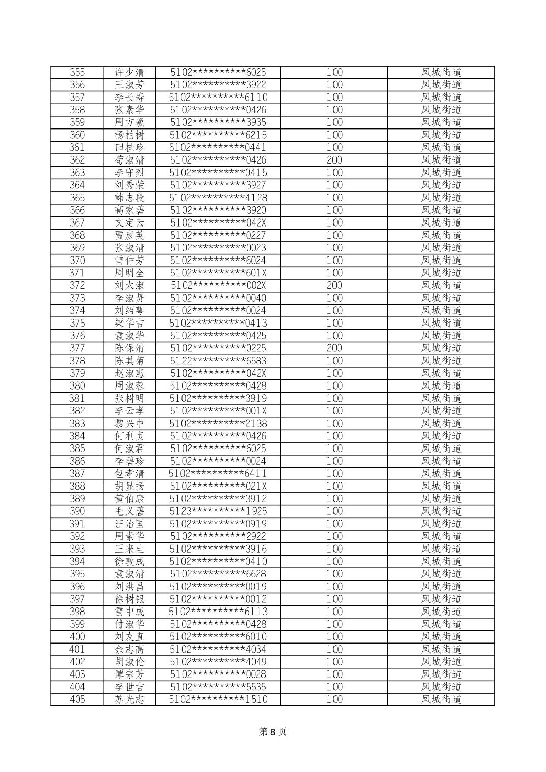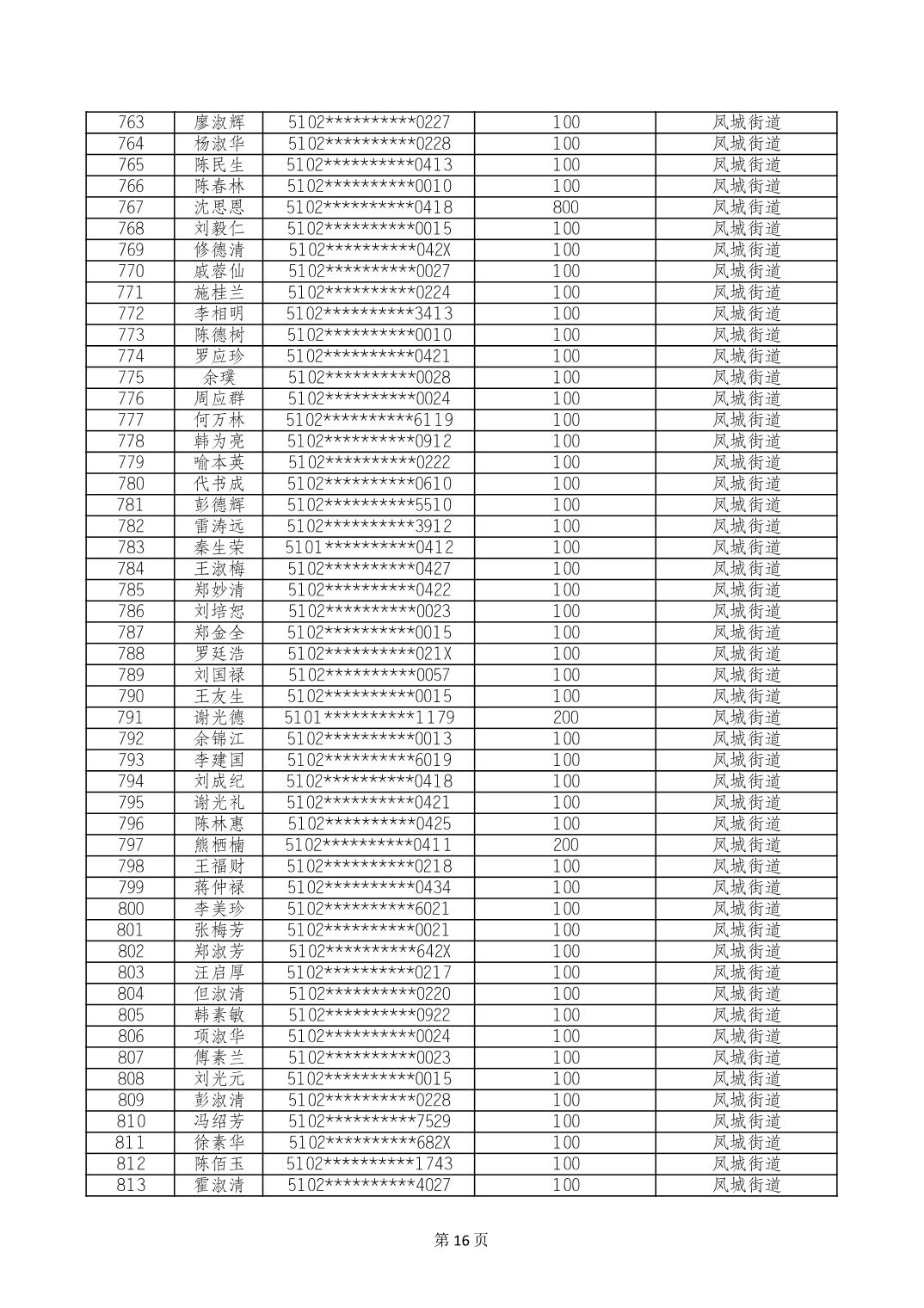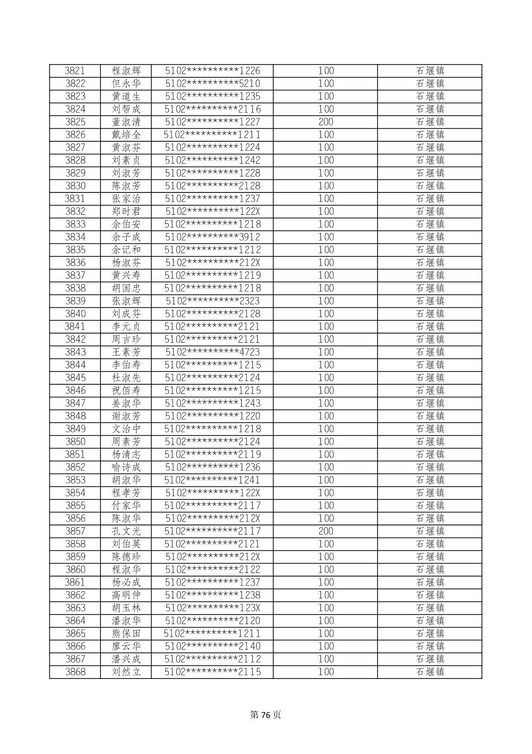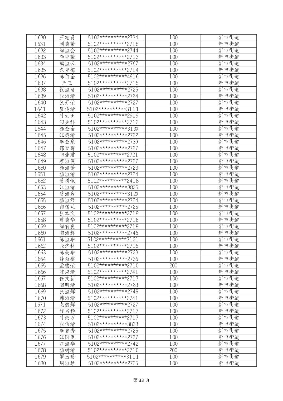 重庆市长寿区高龄老人营养补贴2024年6月发放明细