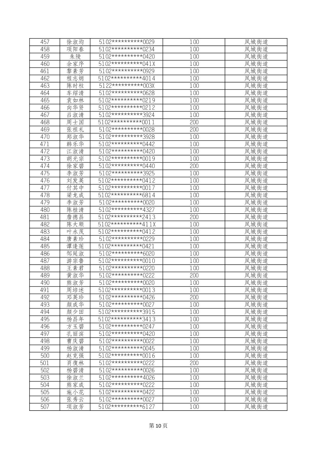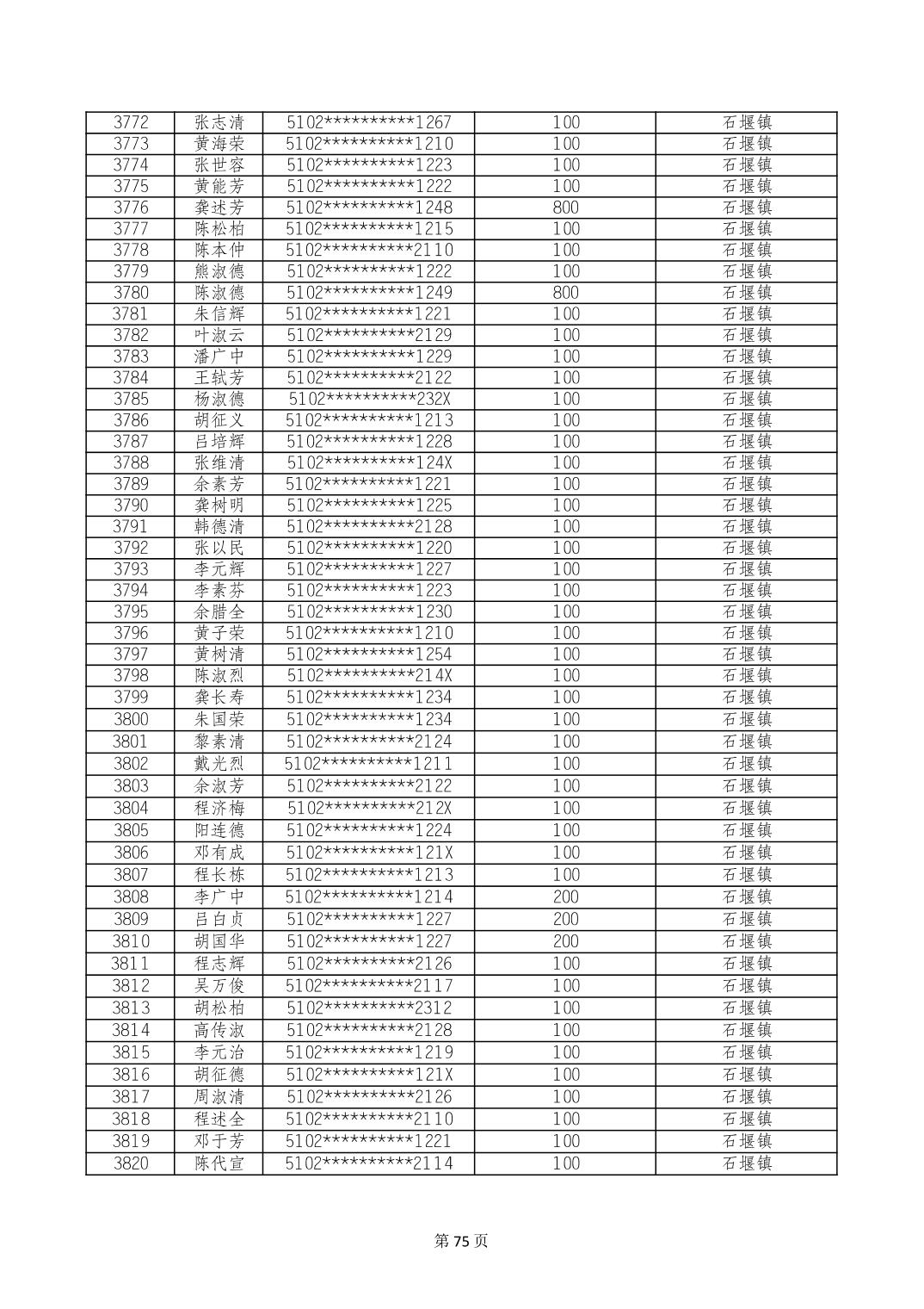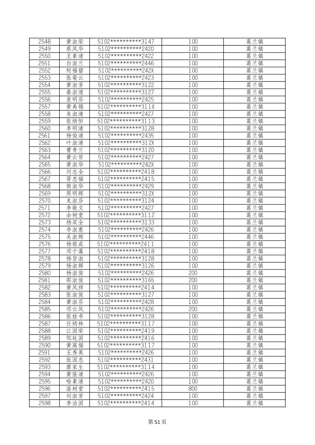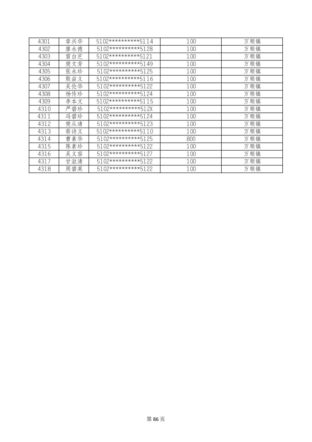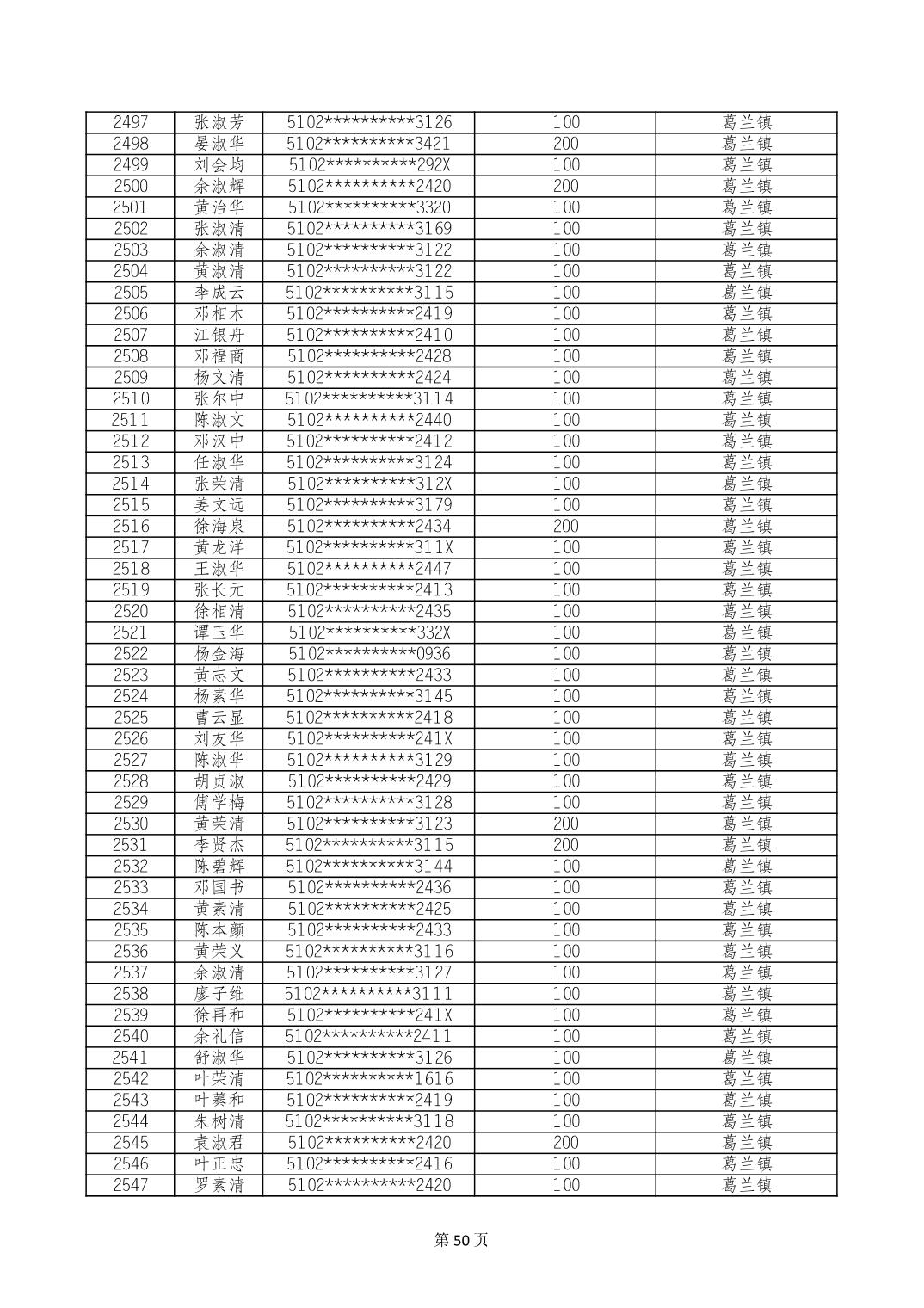 重庆市长寿区高龄老人营养补贴2024年6月发放明细