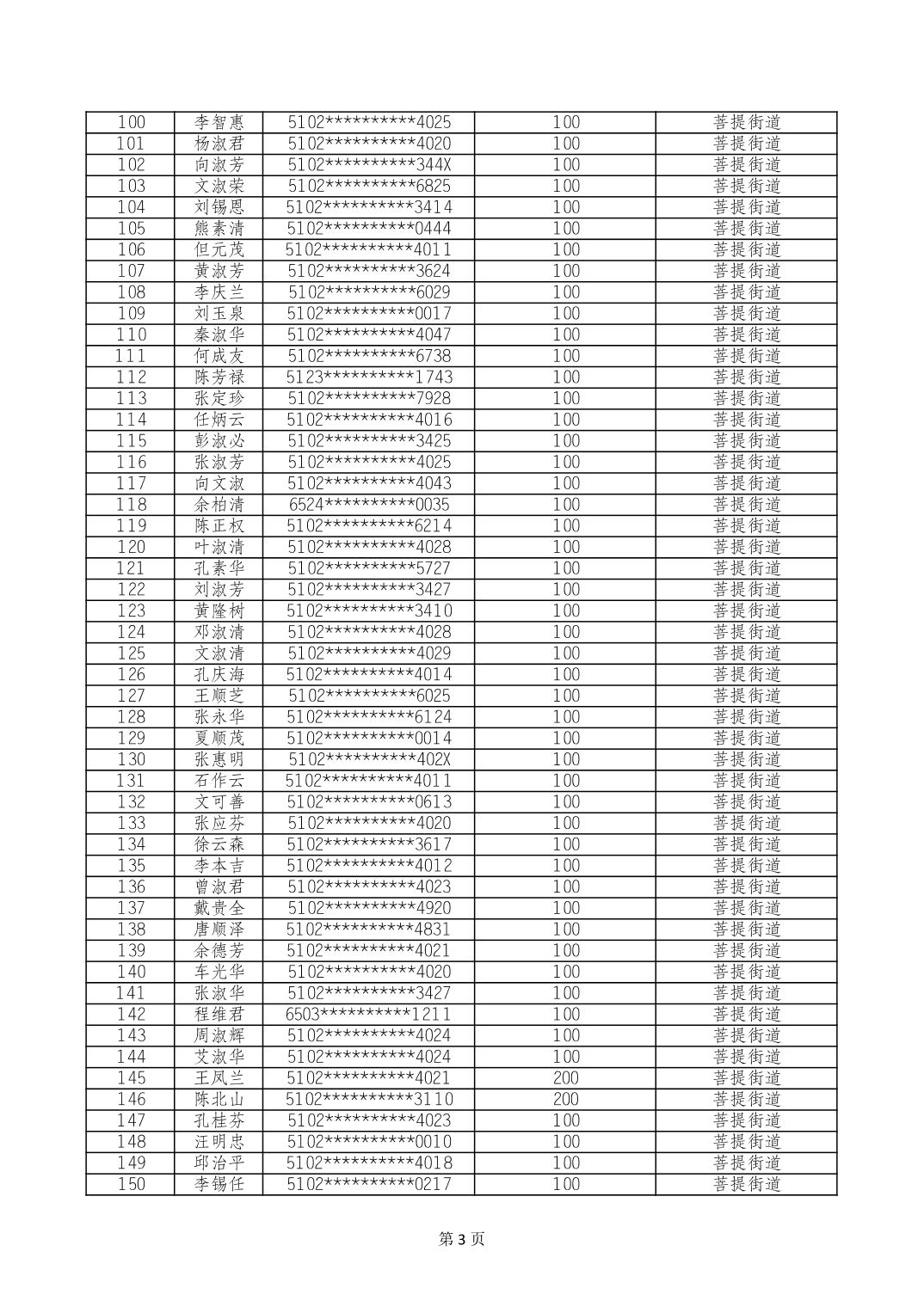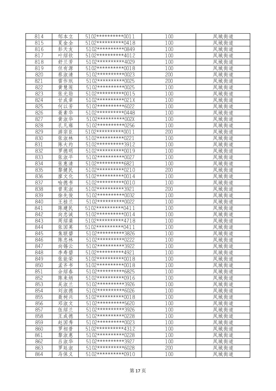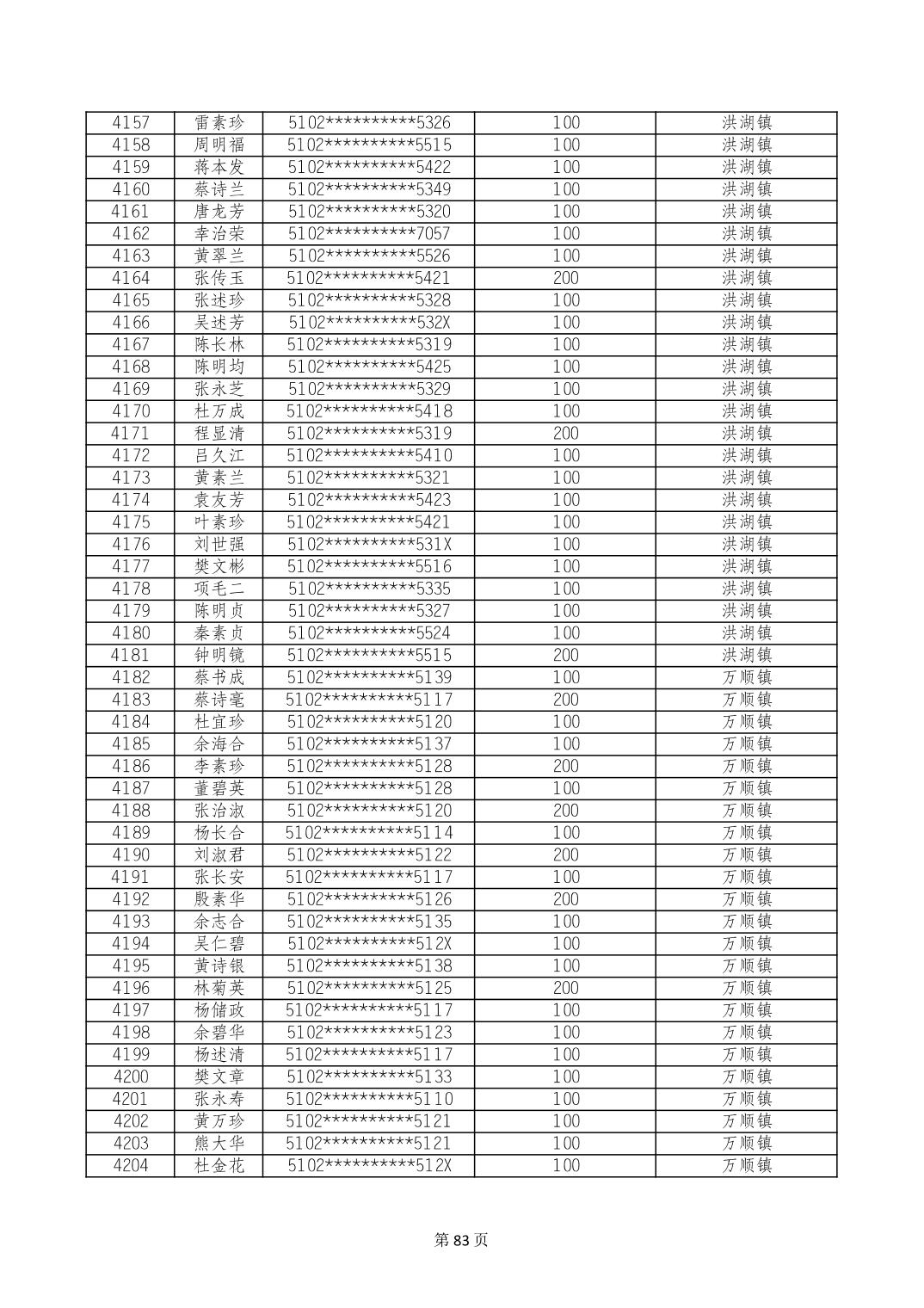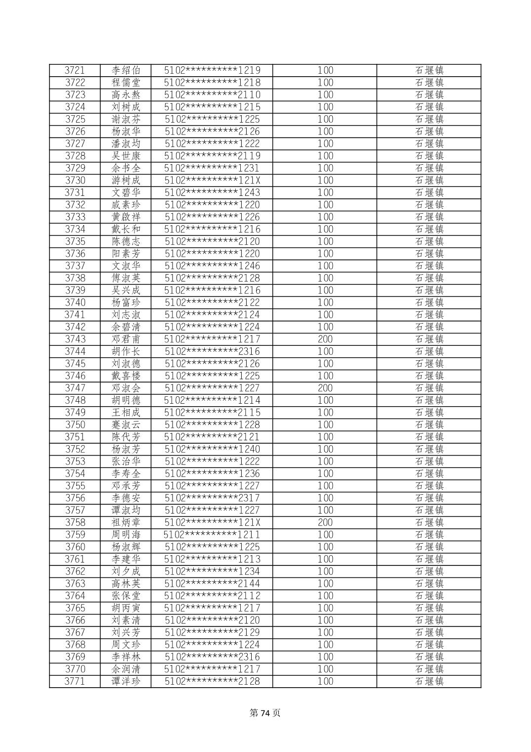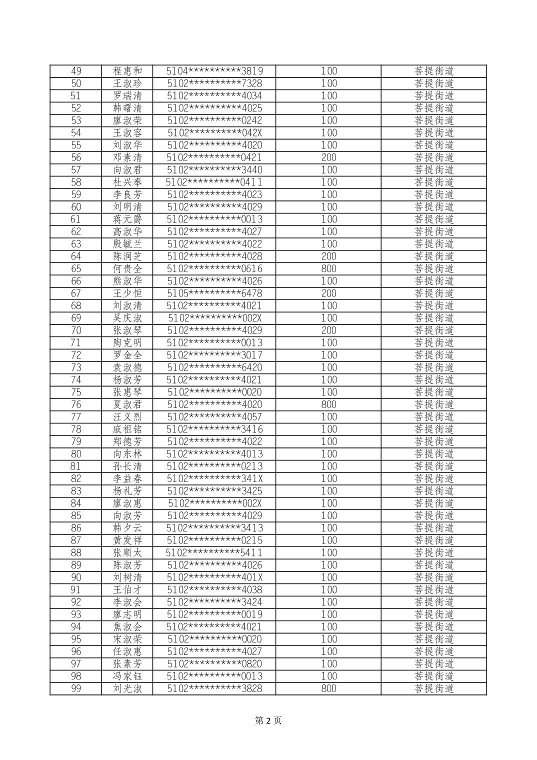 重庆市长寿区高龄老人营养补贴2024年6月发放明细