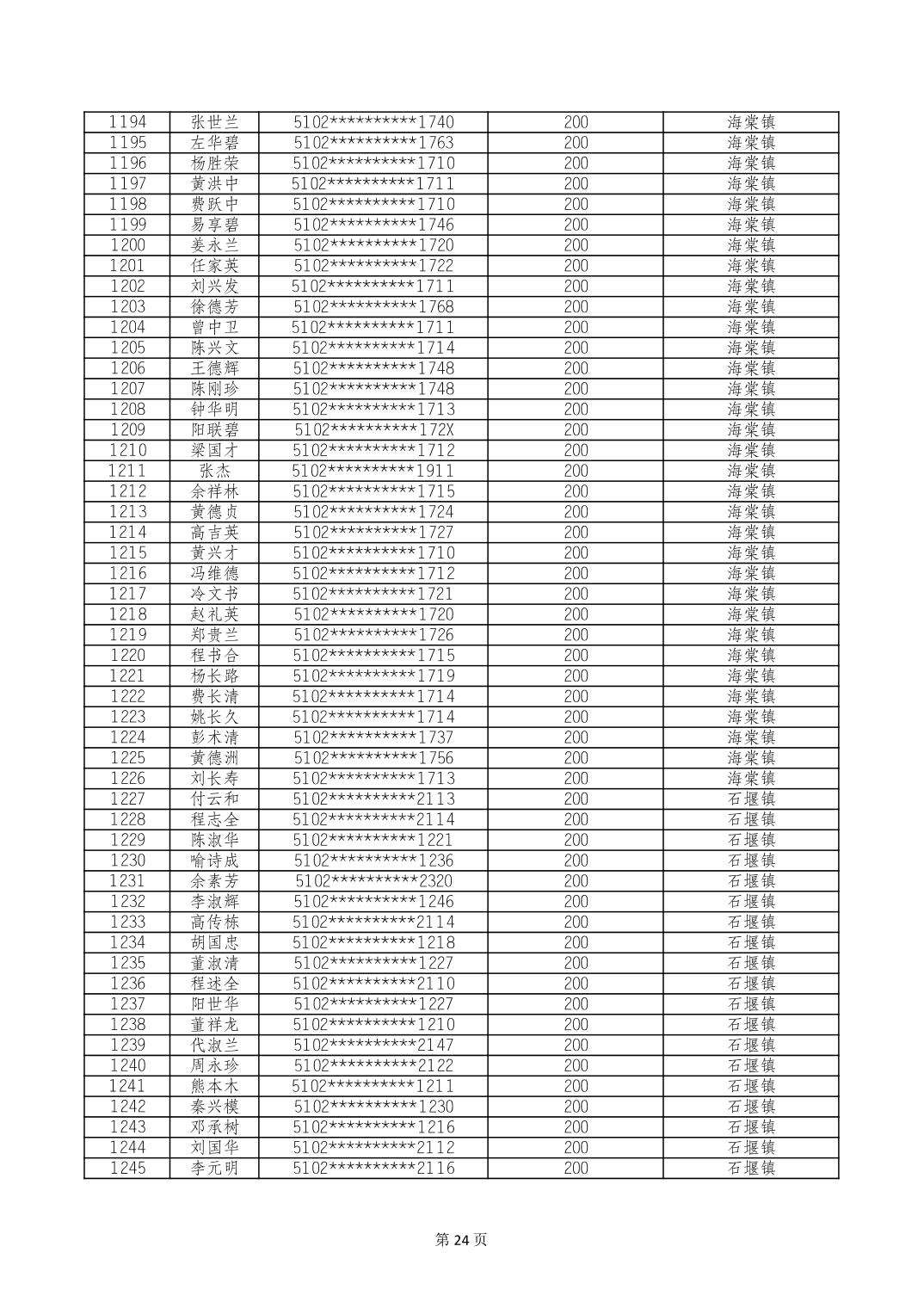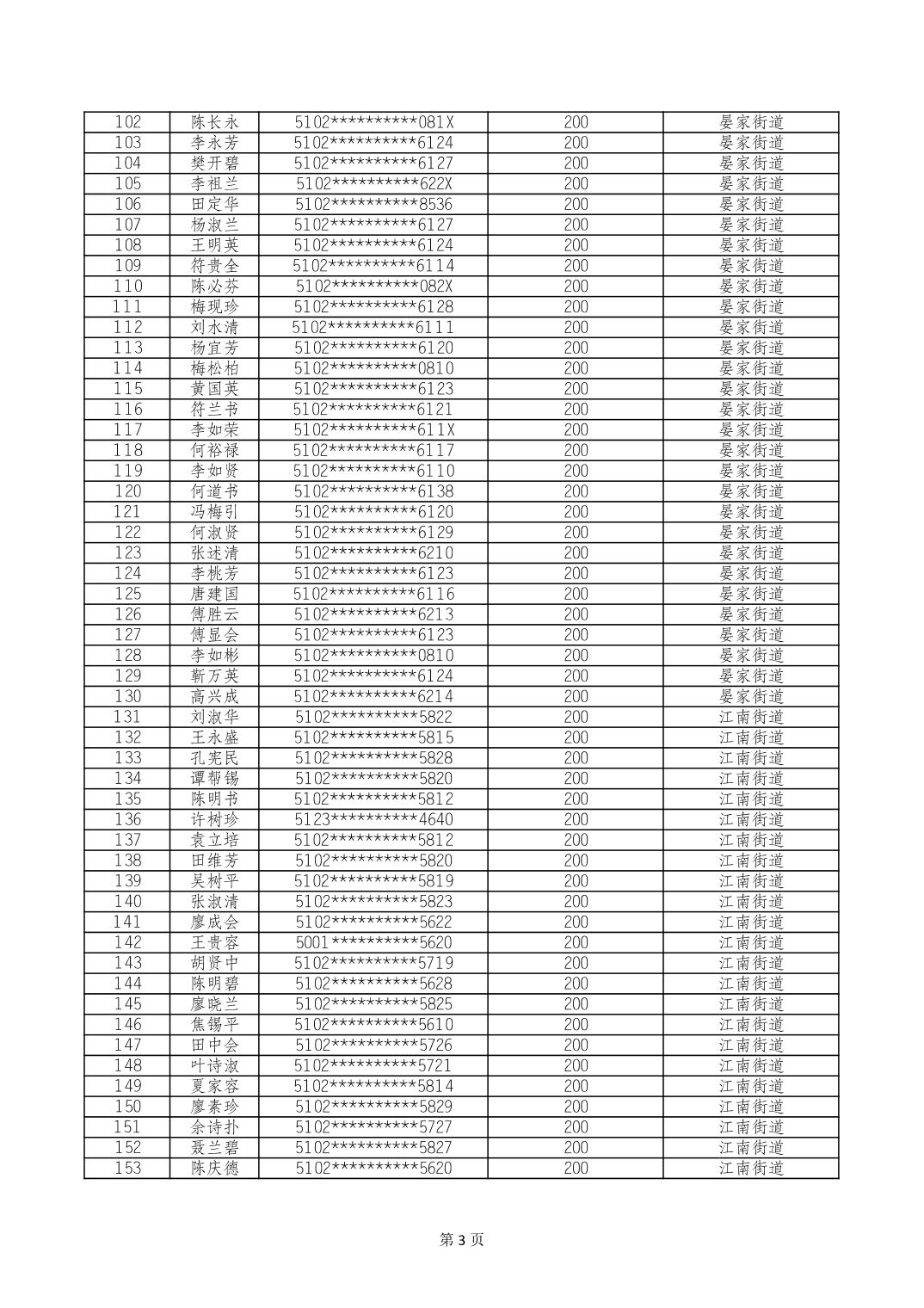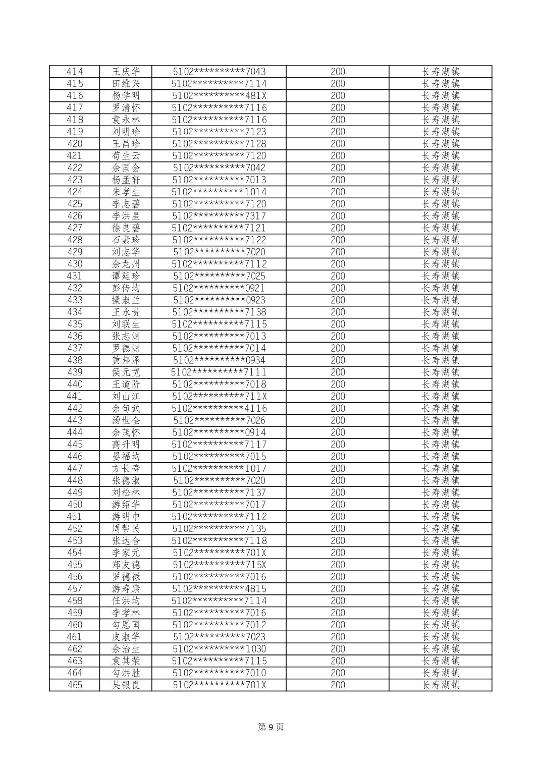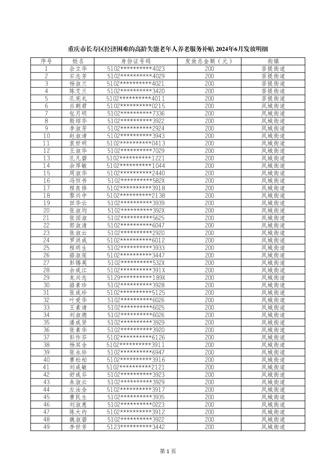 重庆市长寿区经济困难的高龄失能老年人养老服务补贴 2024年6月发放明细