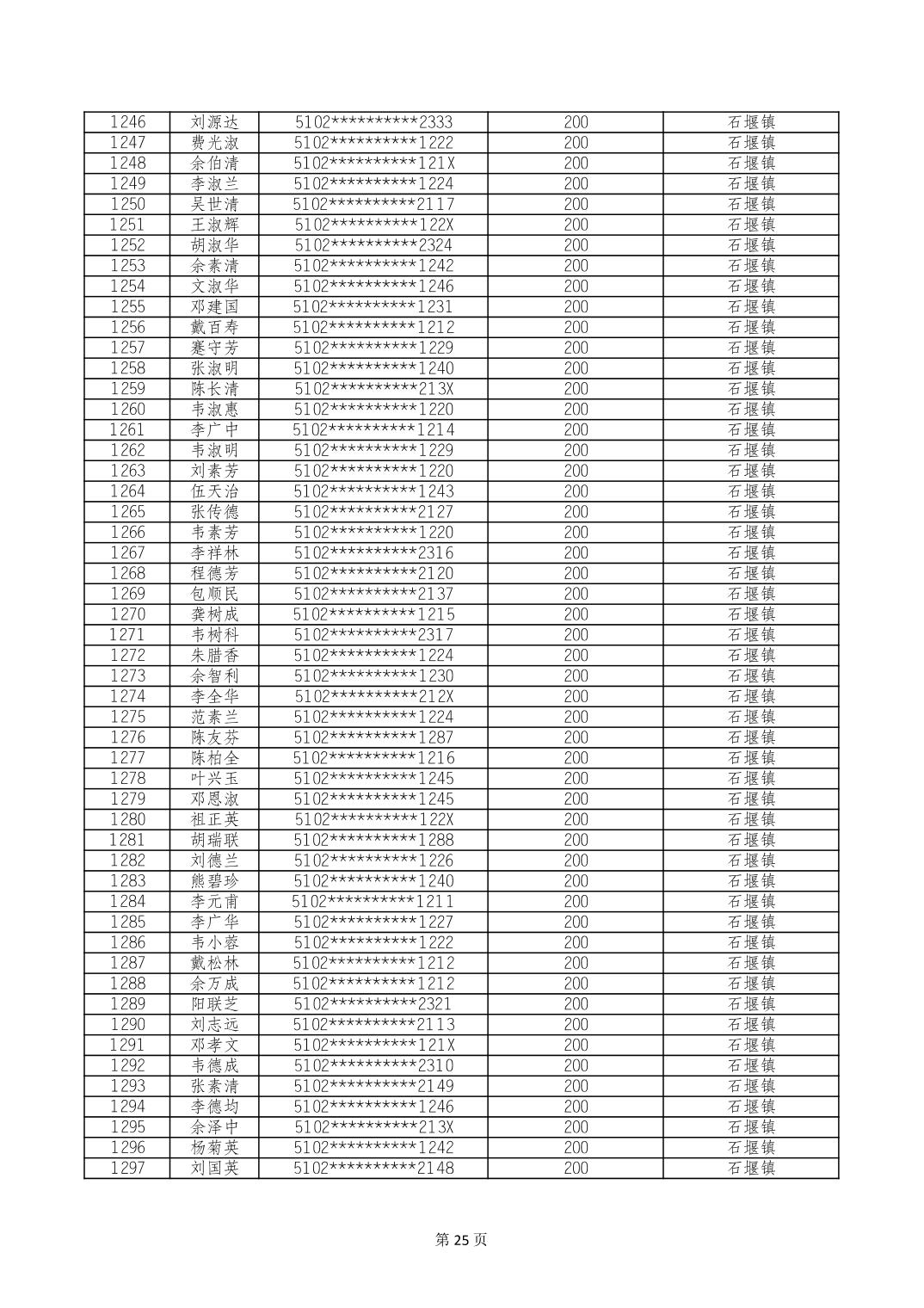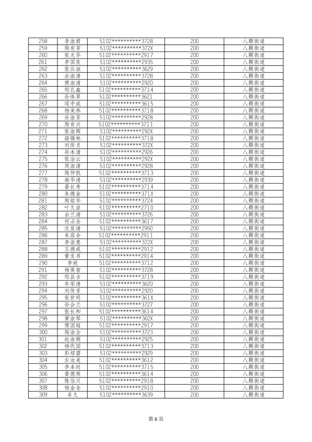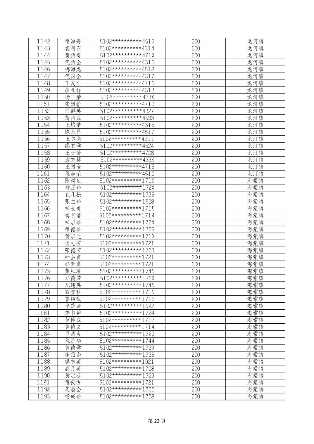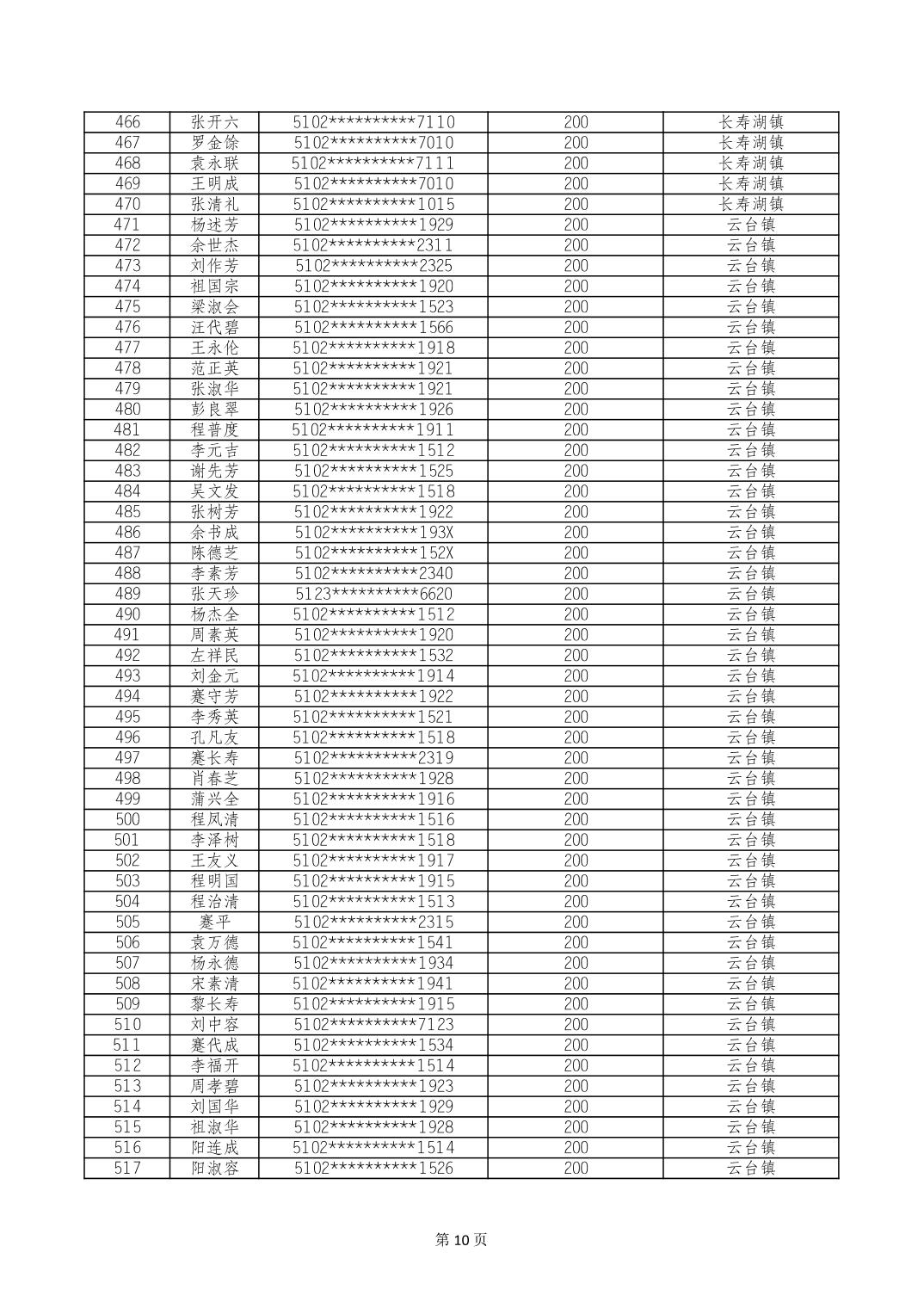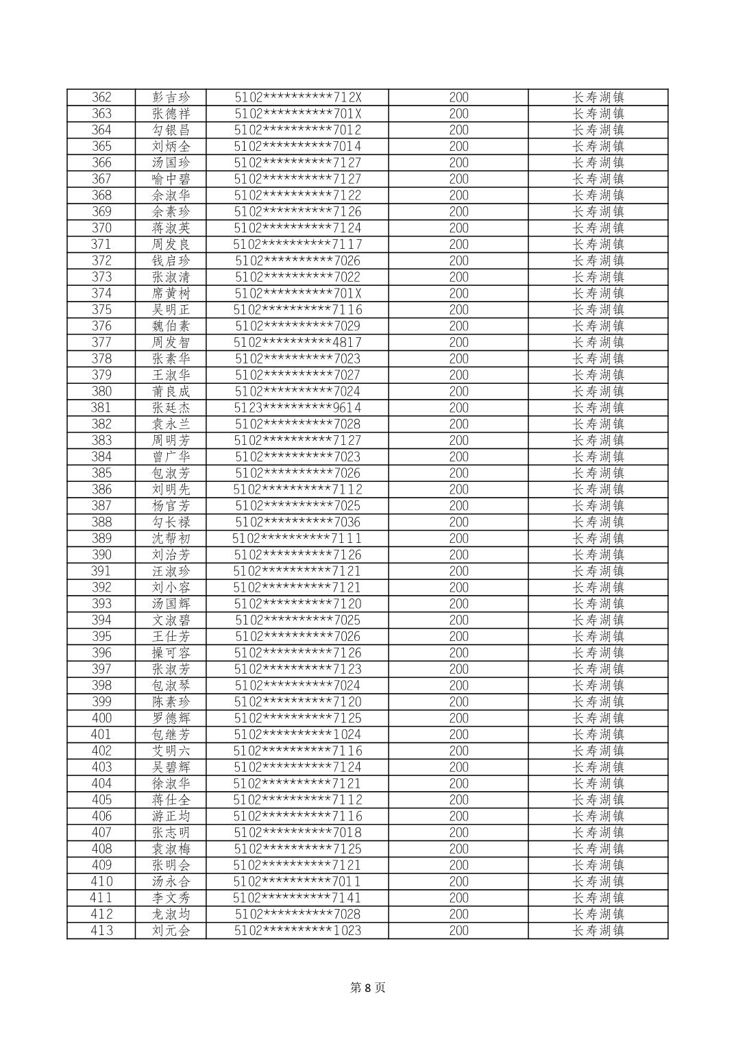 重庆市长寿区经济困难的高龄失能老年人养老服务补贴 2024年6月发放明细