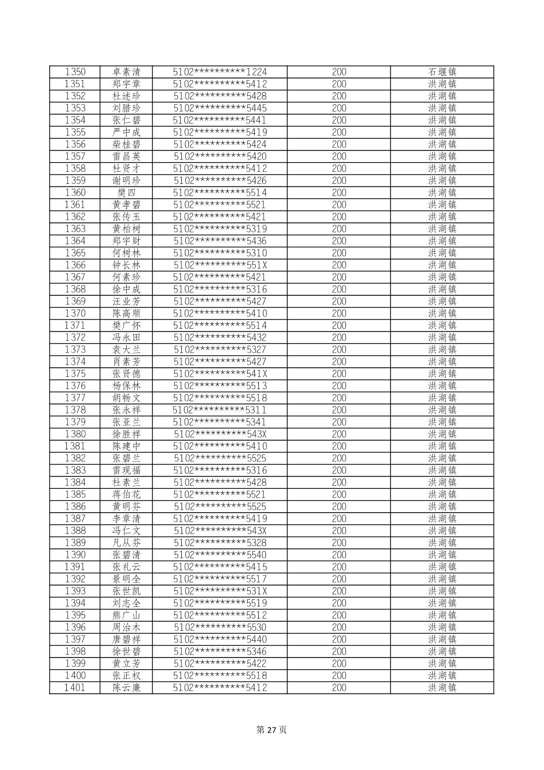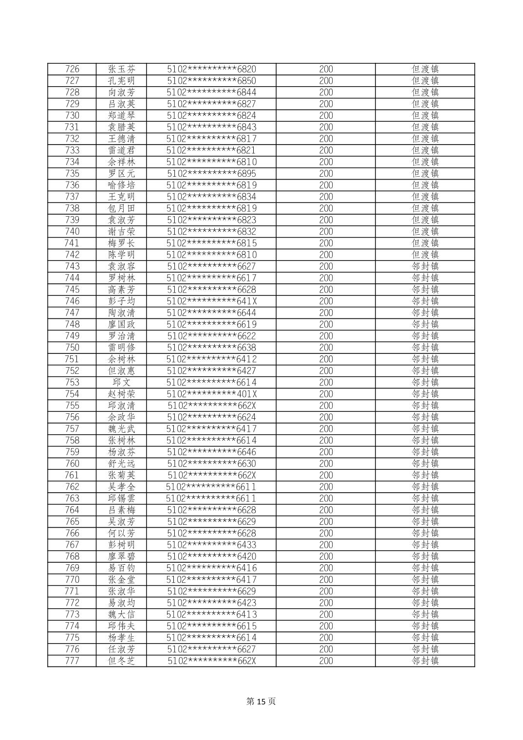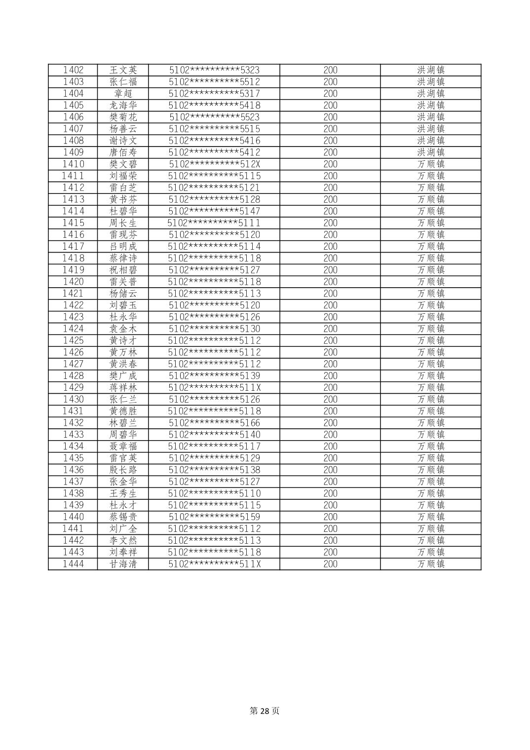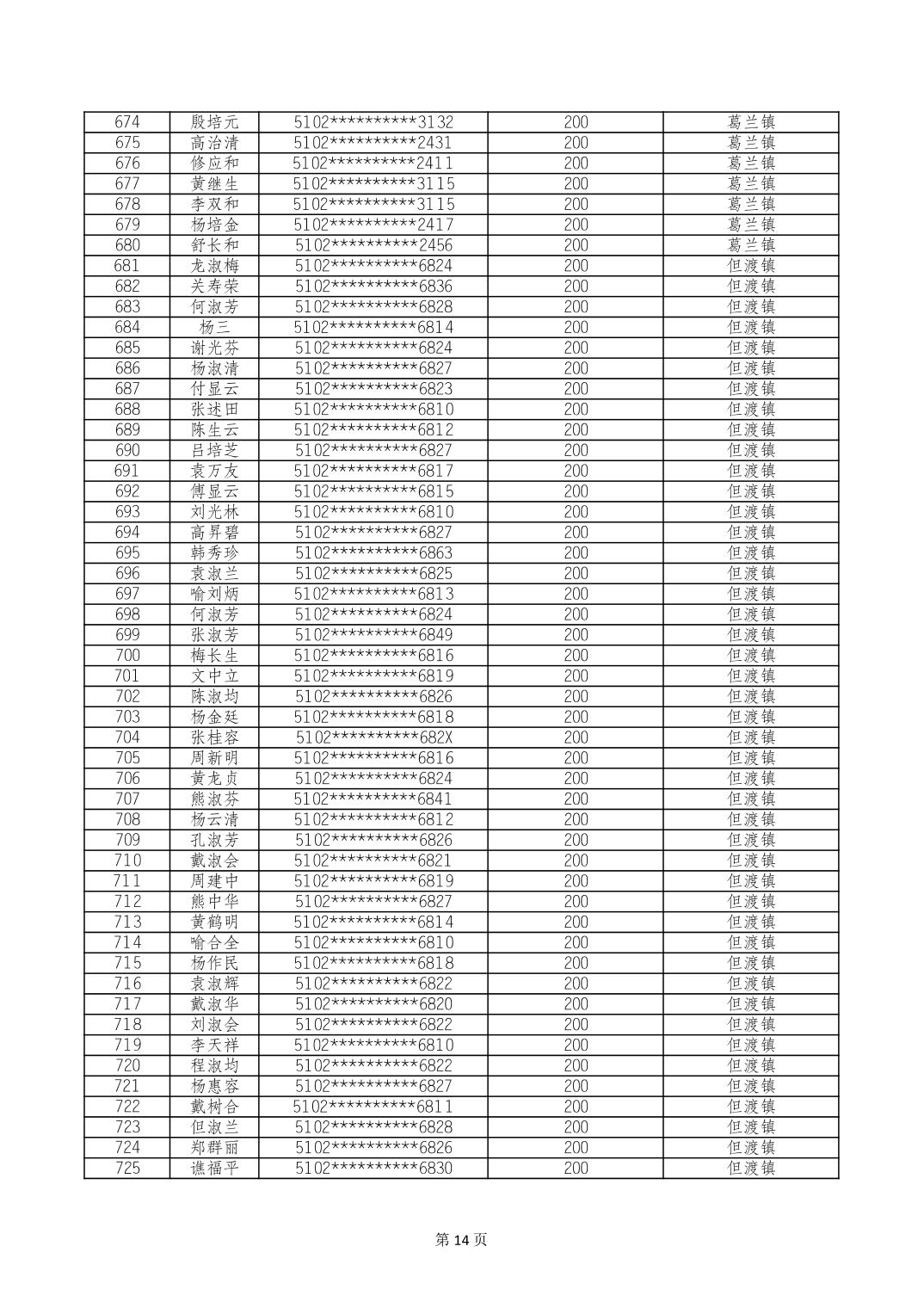 重庆市长寿区经济困难的高龄失能老年人养老服务补贴 2024年6月发放明细