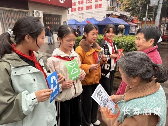 活动现场,孩子们手持可回收物、厨余垃圾、有害垃圾、其他垃圾四类标识牌,在老师的带领下有序分组。他们化身“小小垃圾分类宣传员”,主动走近商户与居民,讲解垃圾四分类标准与日常投放要点,现场演示如何正确区分和投放菜叶果皮、塑料袋、废电池等常见生活垃圾。不少摊主与市民停下脚步认真聆听,纷纷为这群“小雷锋”点赞。
