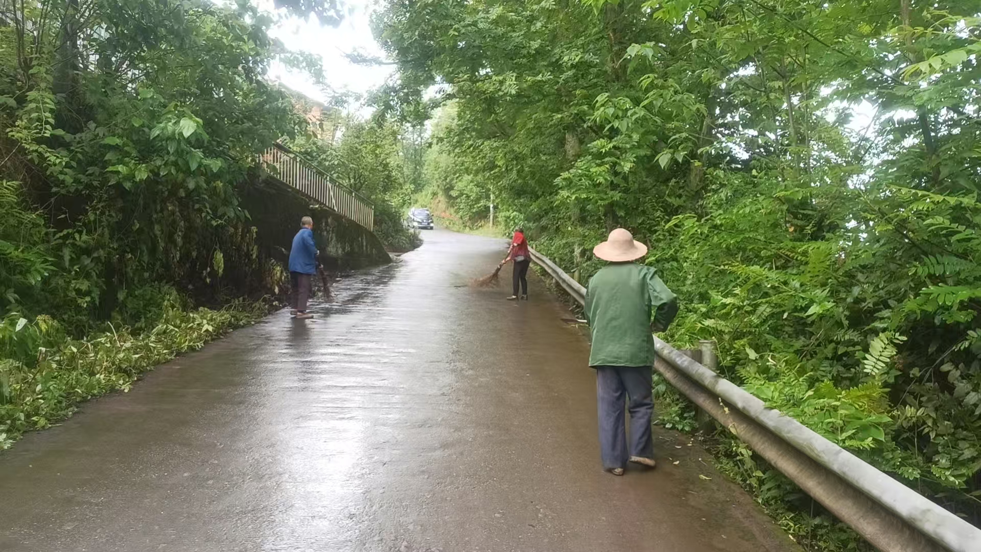 云集镇雨后开展路面清扫工作,组织一批志愿者对大古凼到平桥公路进行清扫,清除公路周边障碍物。