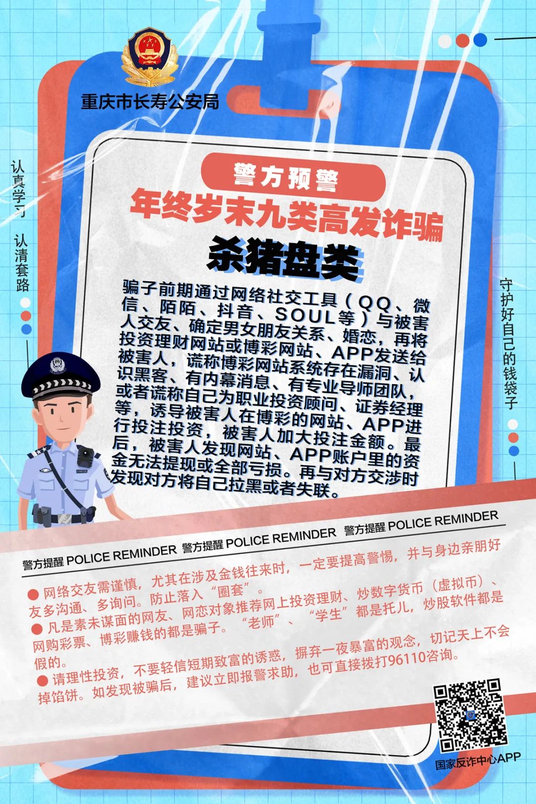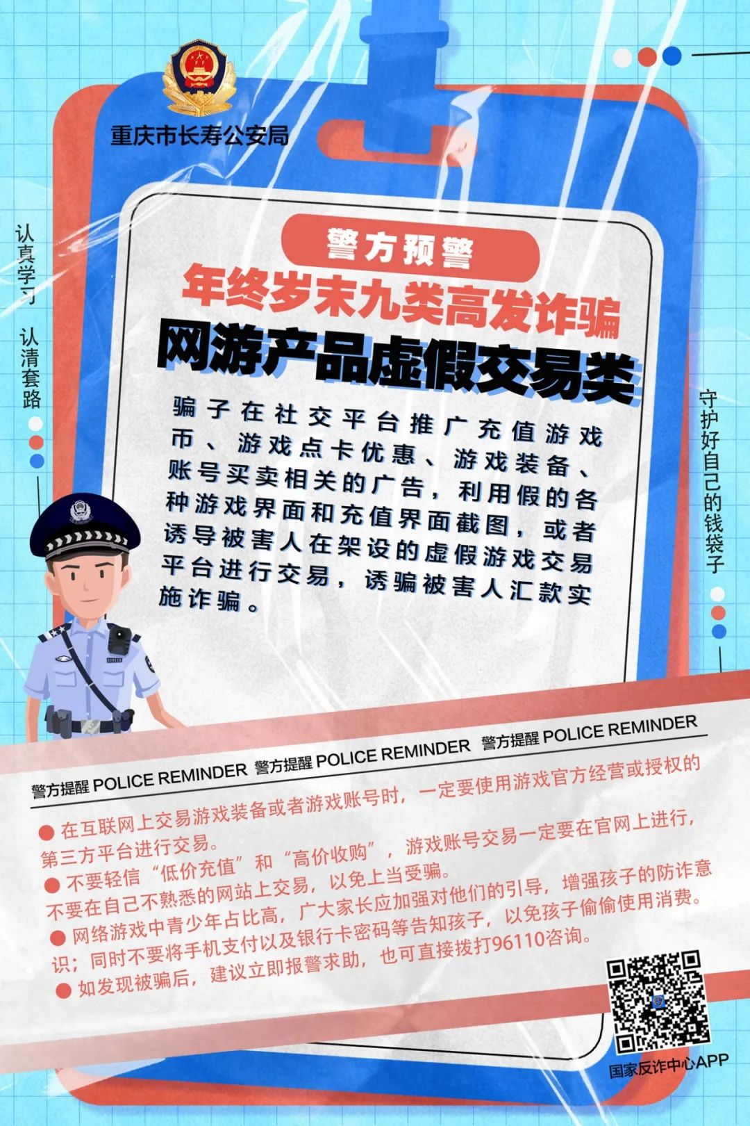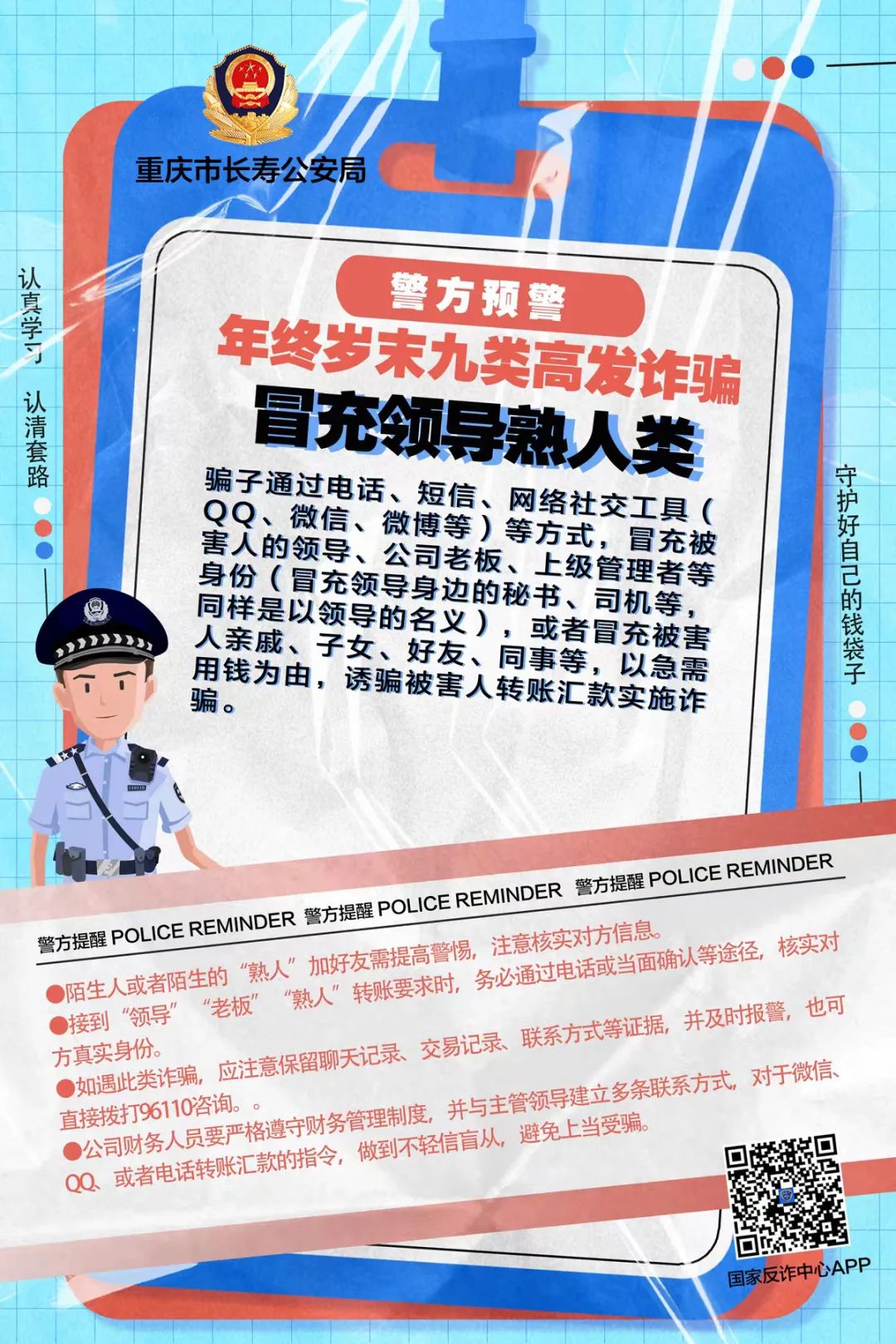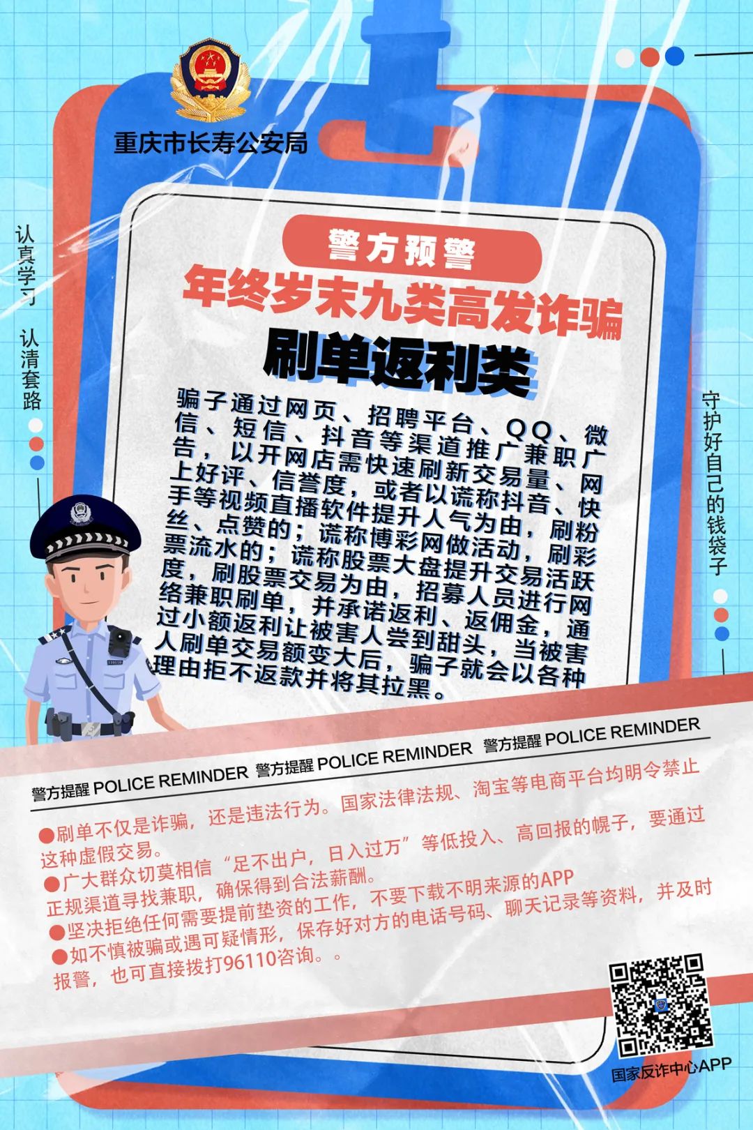 【全民反诈 你我同行】长寿公安预警:年终岁末九类高发诈骗 提高警惕切莫受骗!