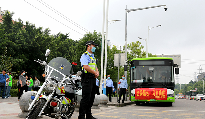 “七点钟不到我们就上岗了,在考点周边设立禁鸣标志,并对考点周边影响通行的交通障碍予以清理,提升考点附近道路的通行效率,确保车辆、行人安全有序通行。”6月7日,记者在实验中学考场外看到,交巡警支队提前部署、靠前指挥、科学管控,在城区考点周边保证“三见”,即见警车、见警灯、见警察,全力为考生营造安全畅通的道路交通环境。
