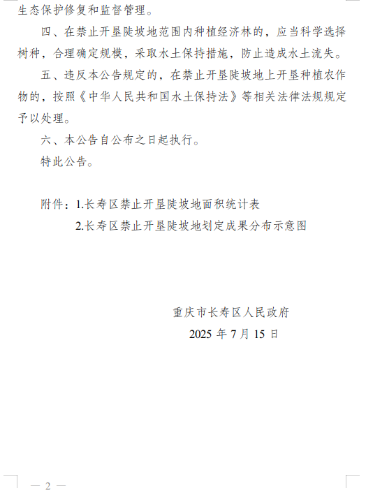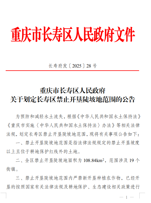 重庆市长寿区人民政府关于划定长寿区禁止开垦陡坡地范围的公告