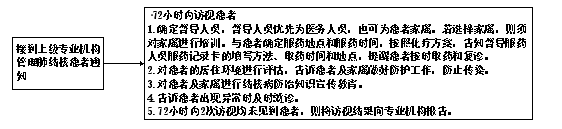当患者停止抗结核治疗后,要对其进行结案评估,包括:记录患者停止治疗的时间及原因;对其全程服药管理情况进行评估;收集和上报患者的“肺结核患者治疗记录卡”或“耐多药肺结核患者服药卡”。同时将患者转诊至结核病定点医疗机构进行治疗转归评估,2周内进行电话随访,了解是否前去就诊及确诊结果。