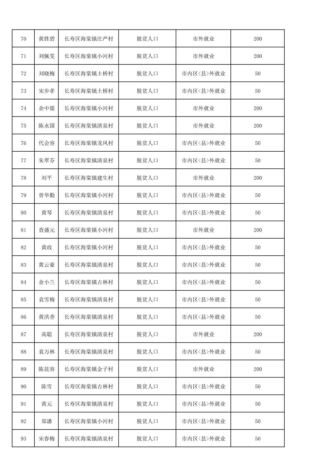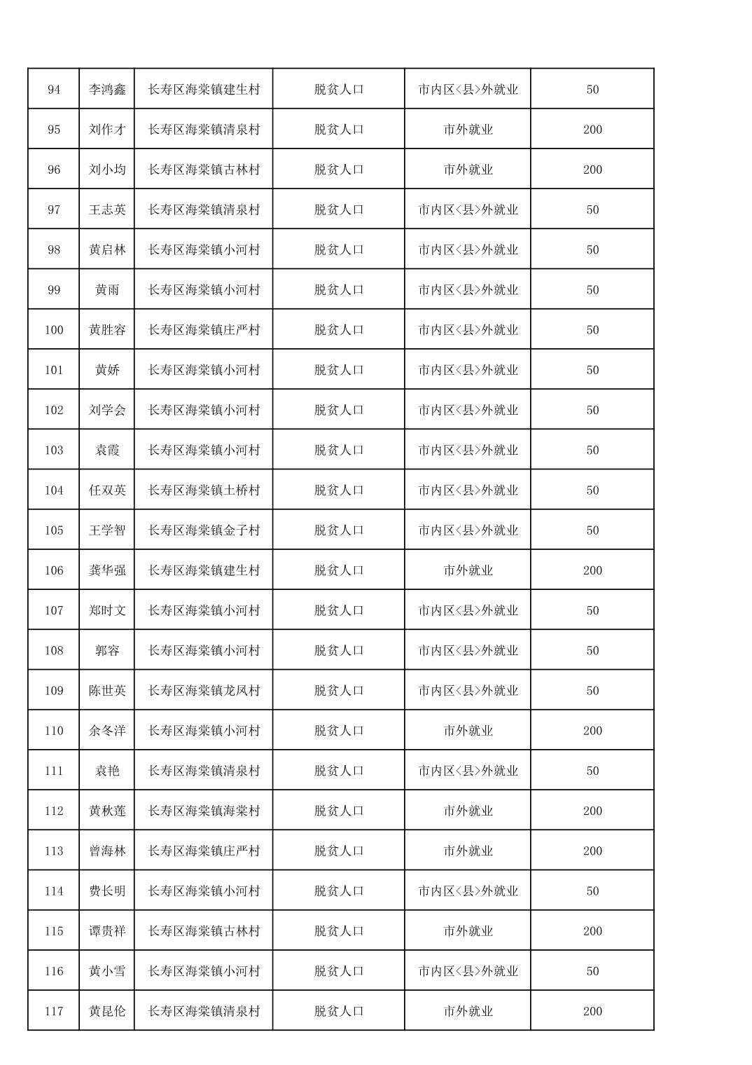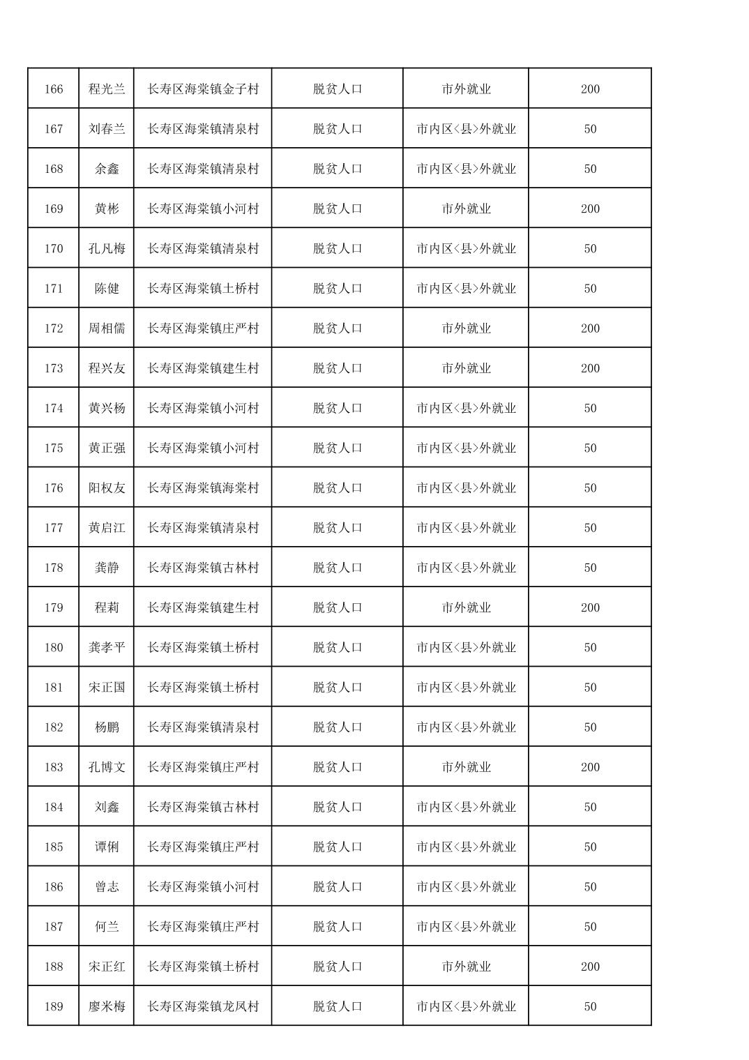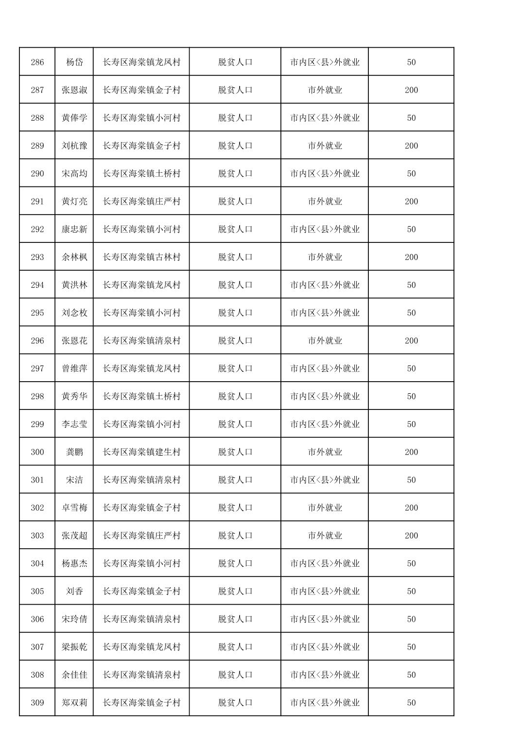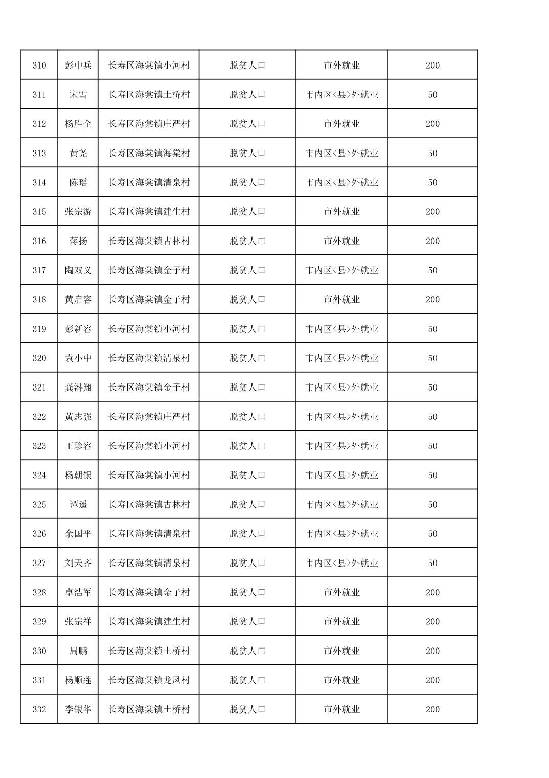 海棠镇2025年脱贫人口外出务工交通补贴公示花名册