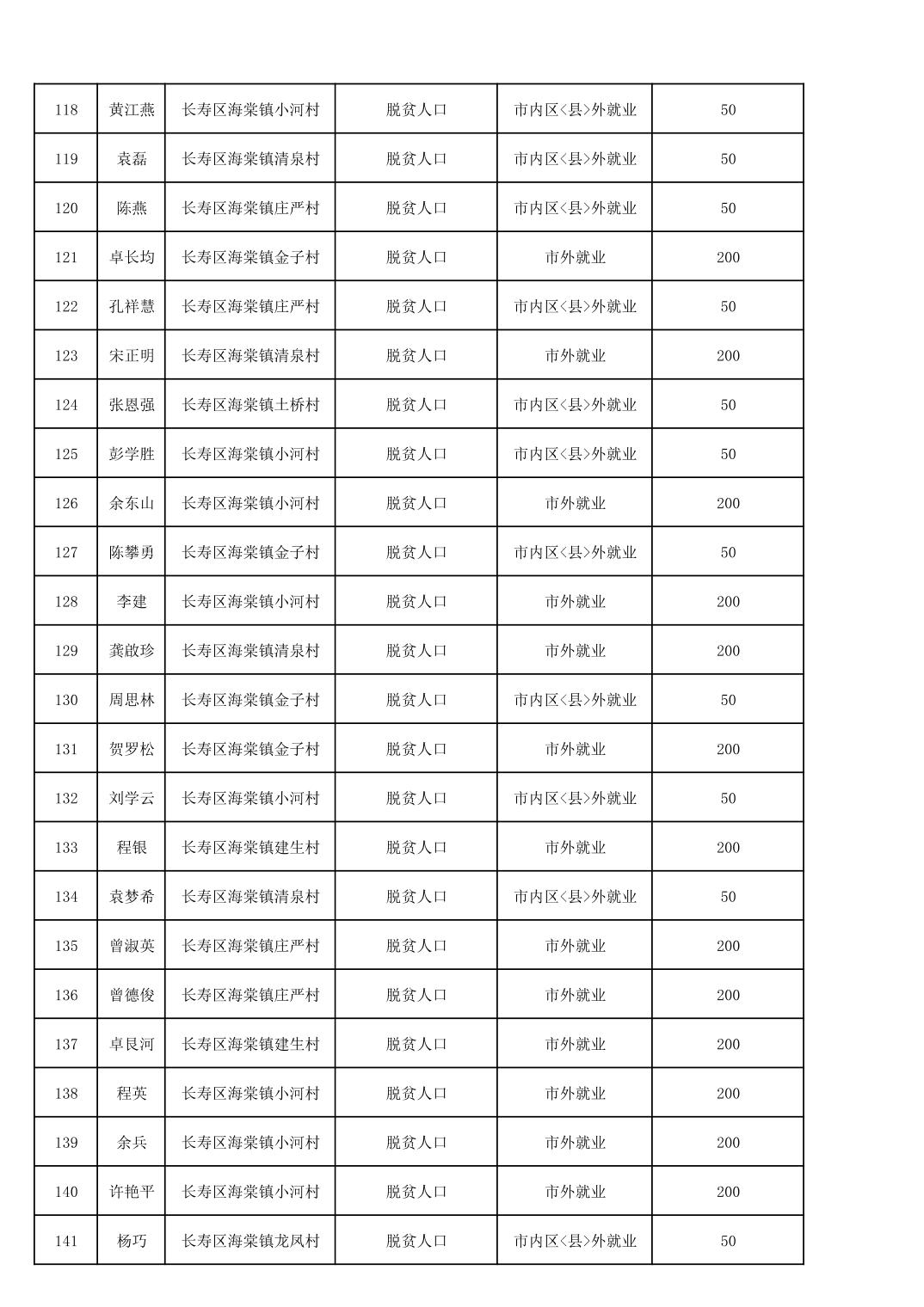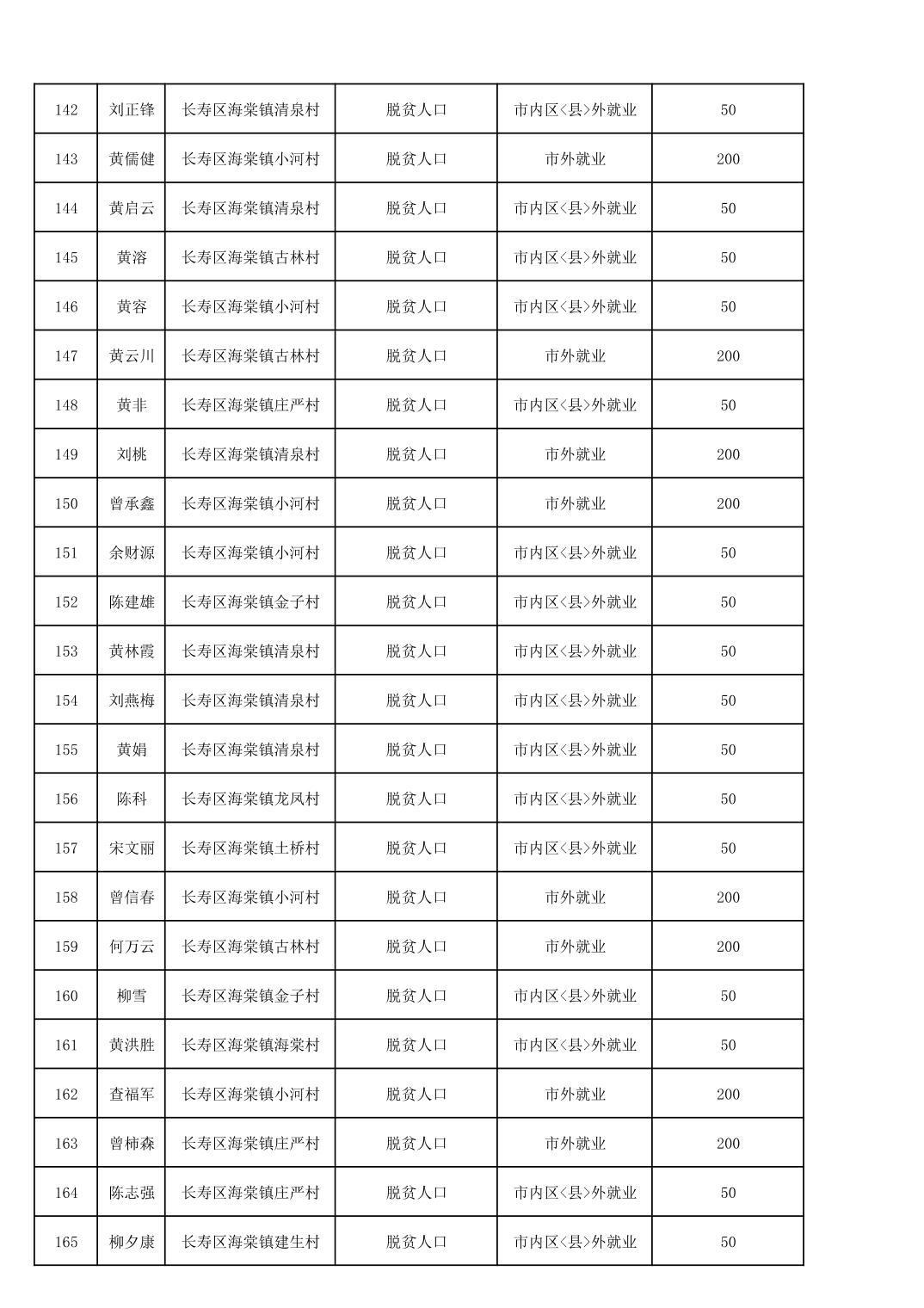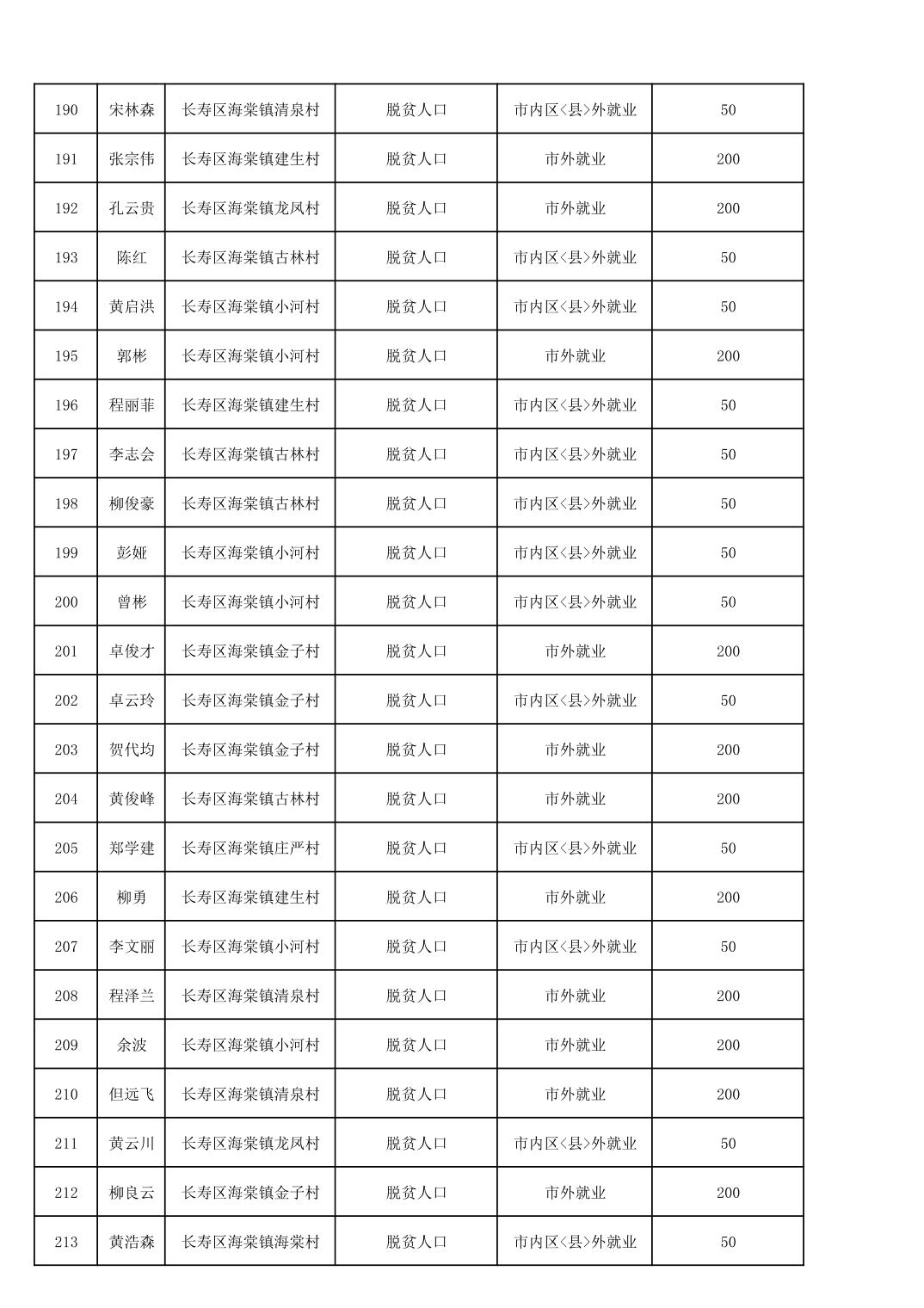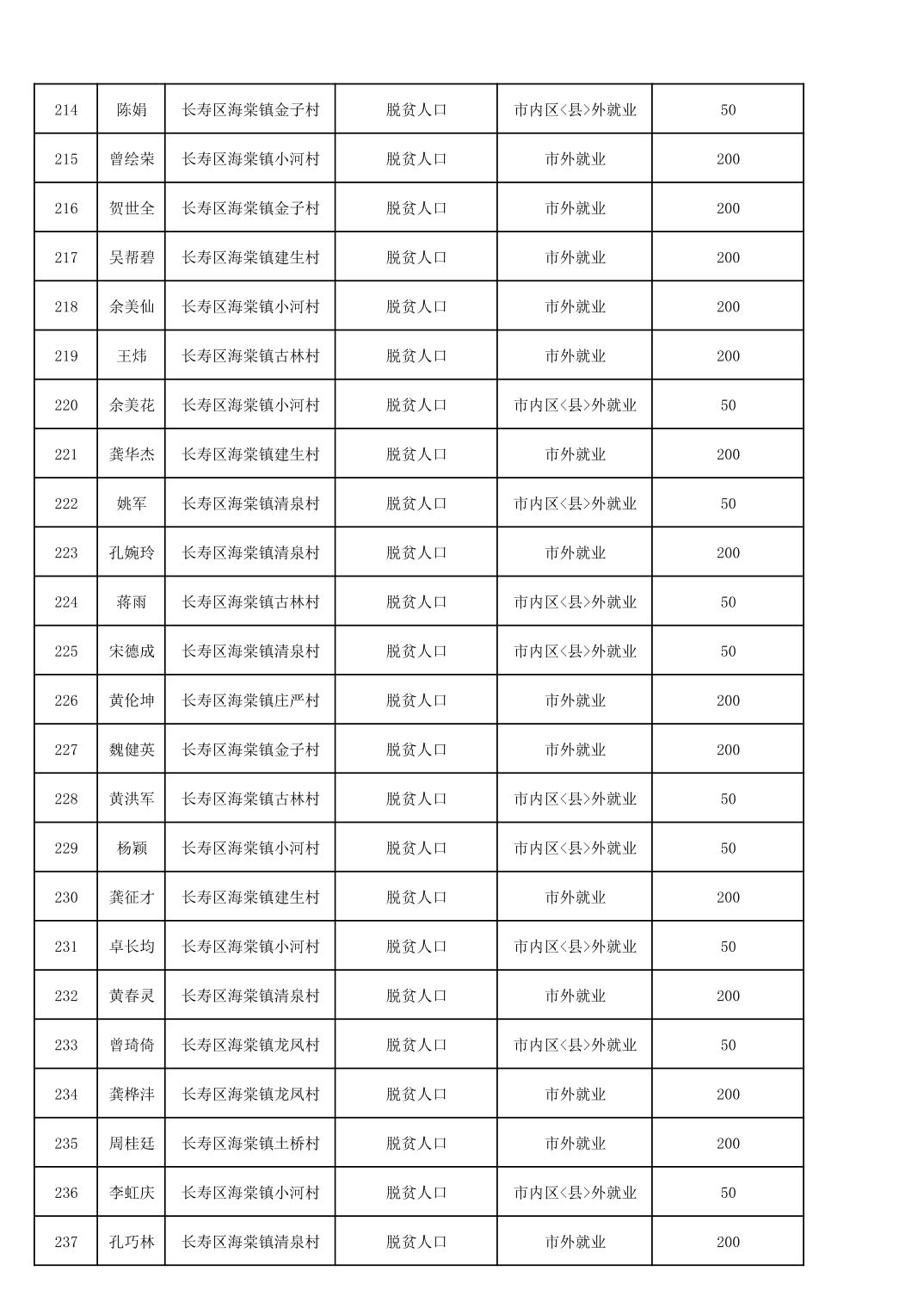 海棠镇2025年脱贫人口外出务工交通补贴公示花名册