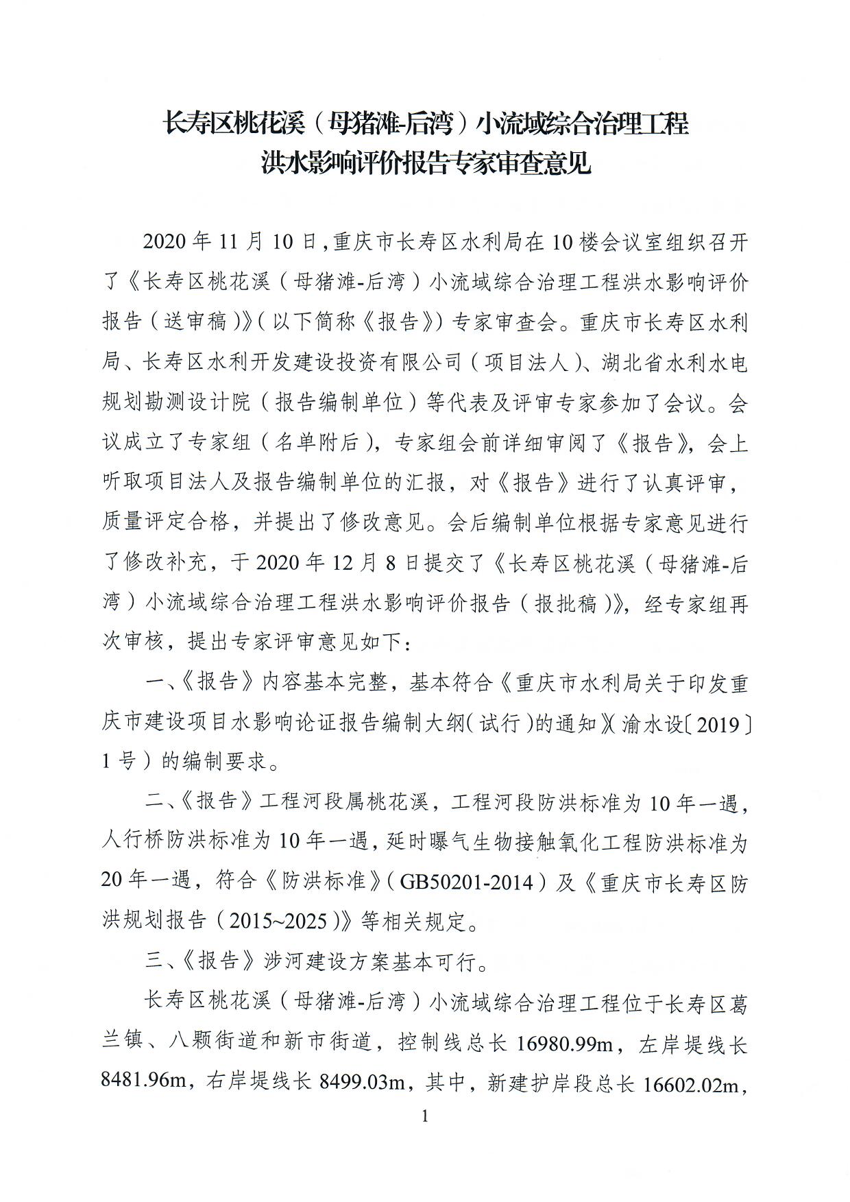 你司关于长寿区桃花溪(母猪滩-后湾)小流域综合治理工程洪水影响评价报告审批申请已收悉,我局组织专家对《长寿区桃花溪(母猪滩-后湾)小流域综合治理工程洪水影响评价报告(送审稿)》进行了审查。根据河道管理有关法律法规和专家评审意见,现批复如下: