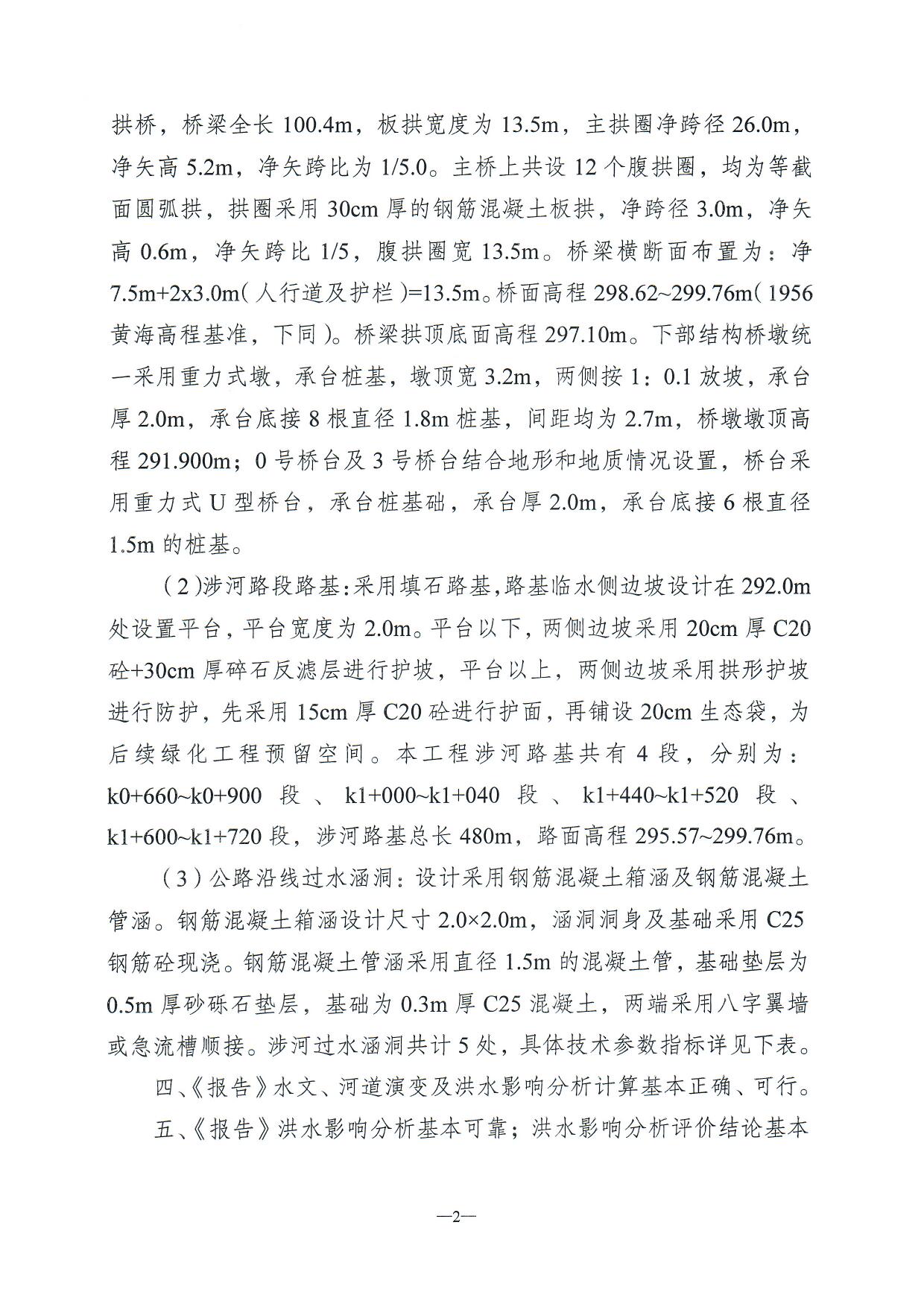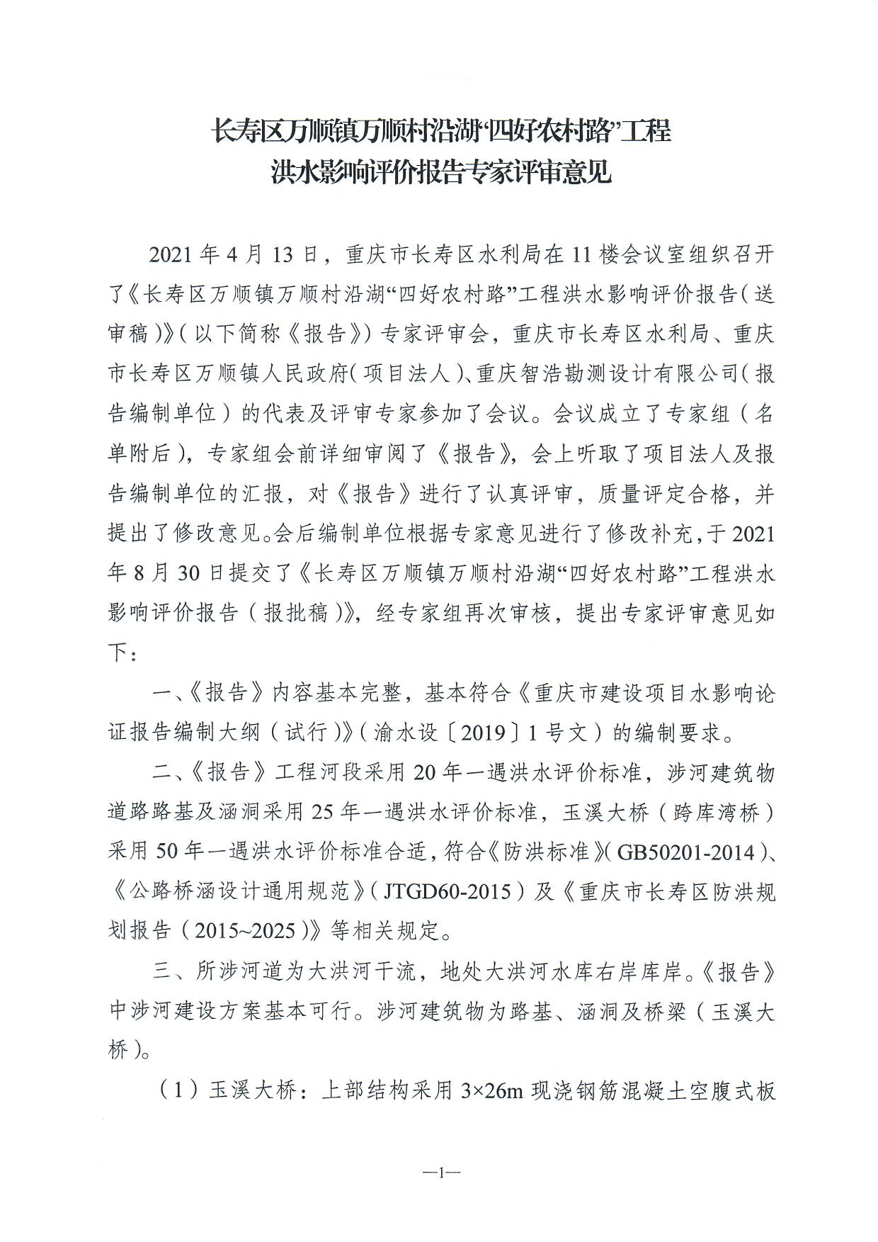 一、同意长寿区万顺镇万顺村沿湖“四好农村路”工程洪水影响评价报告的结论