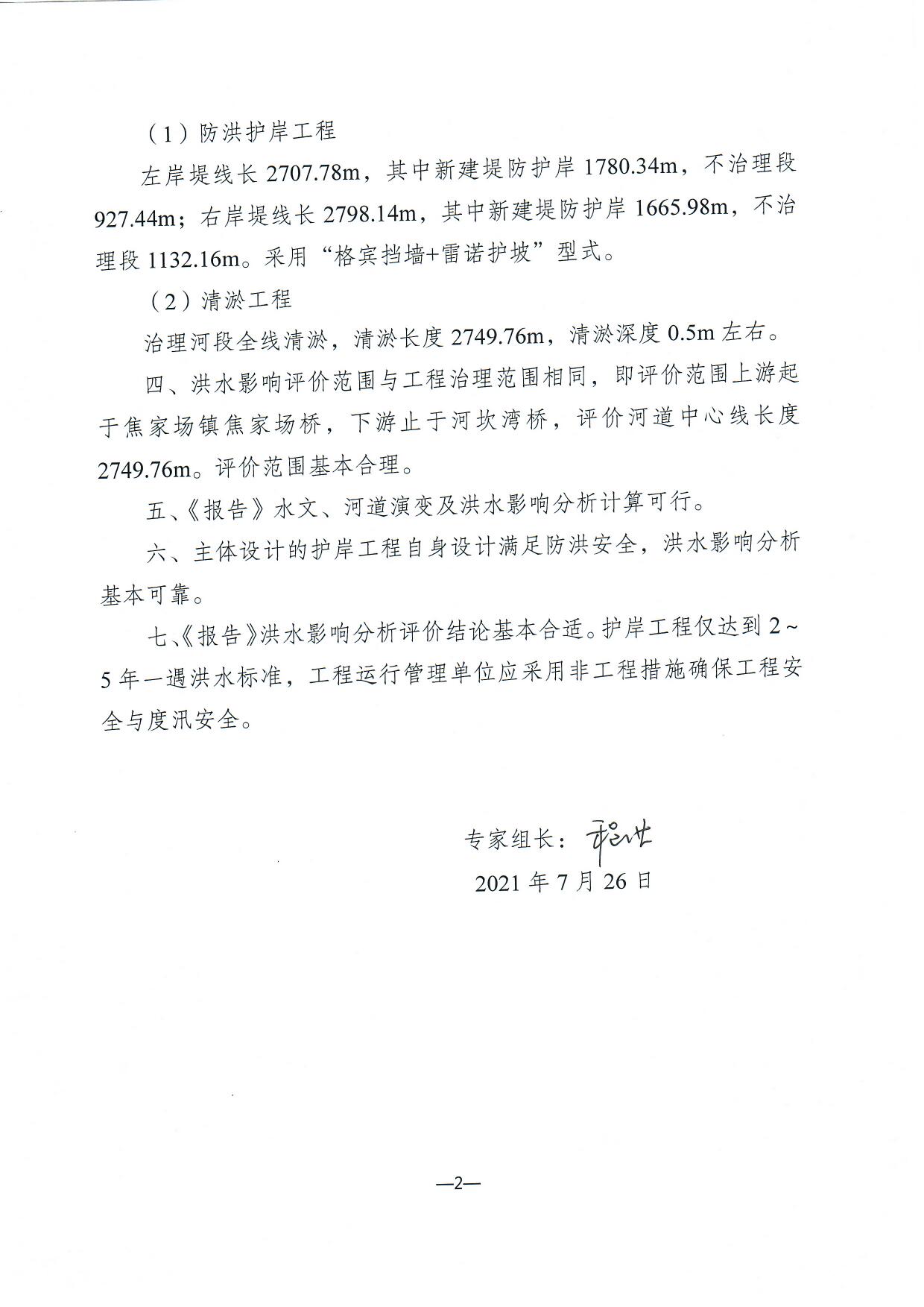 一、同意龙溪河(长寿段)环境综合整治与生态修复亚行贷款项目龙溪河支流(焦家河段)环境综合整治项目洪水影响评价报告的结论