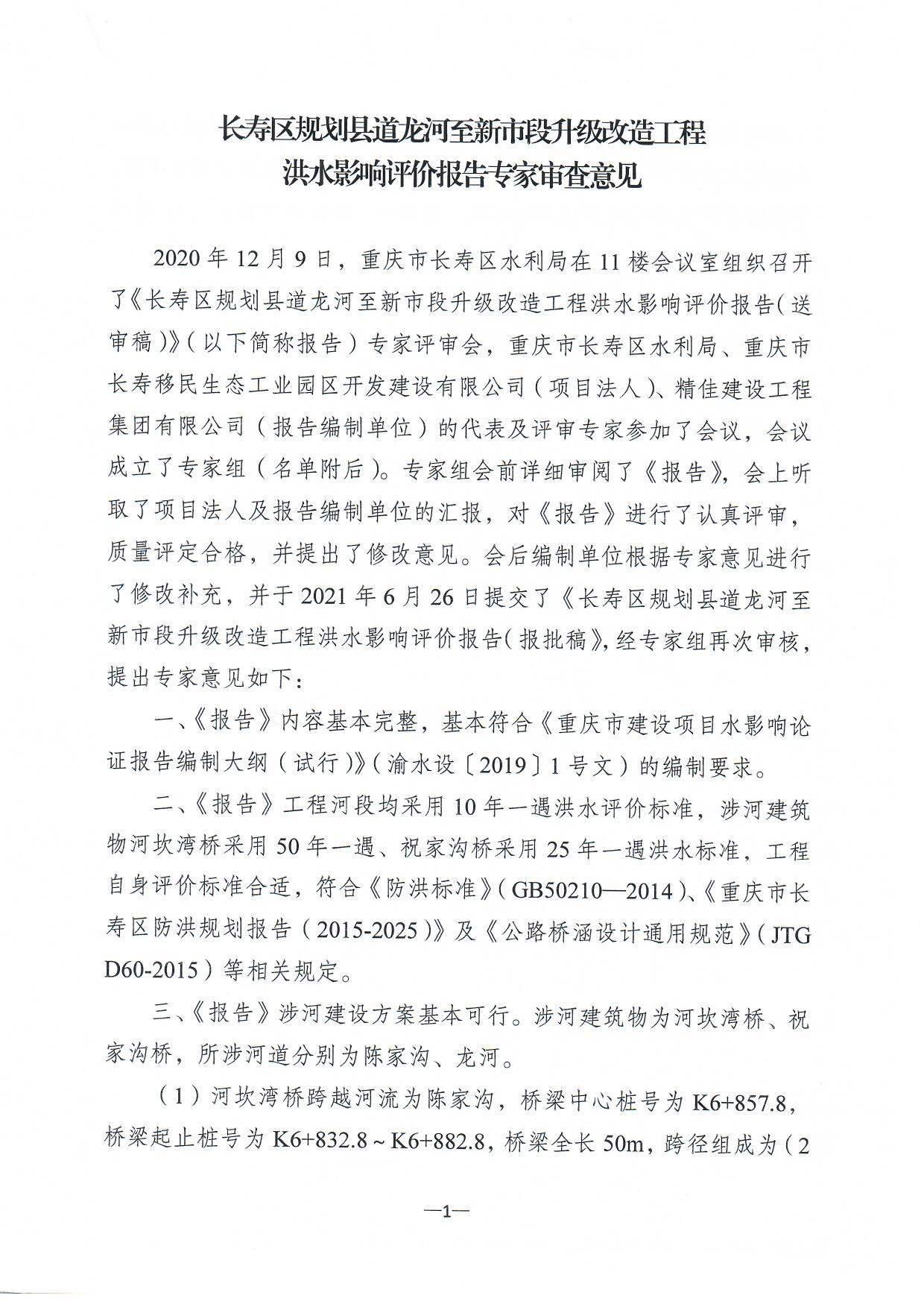 附件:长寿区规划县道龙河至新市段升级改造工程洪水影响评价报告专家评审意见